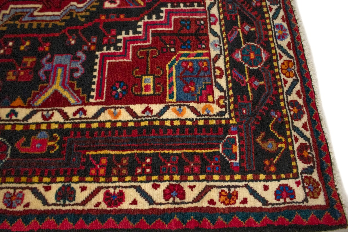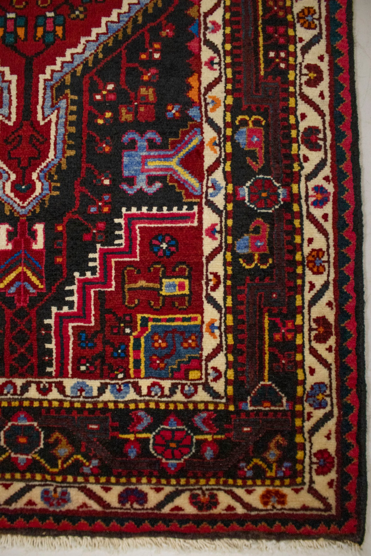 Handmade vintage 3X6 red Persian rug made with vegetable dyes (fine wool pile and cotton foundation), superior knot count, and appealing ancient designs. This Oriental rug never will go out of style and would be among your most valuable treasures.