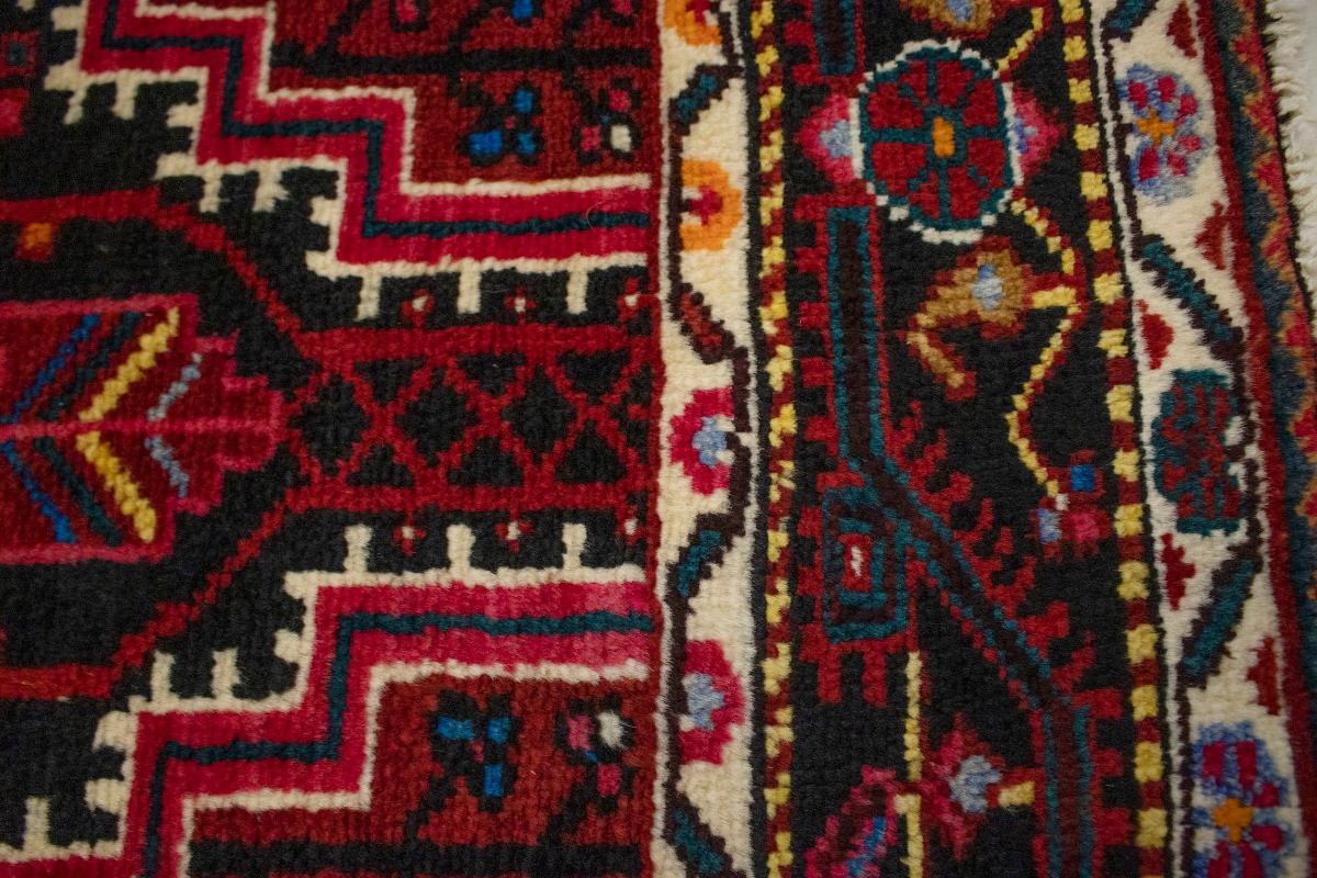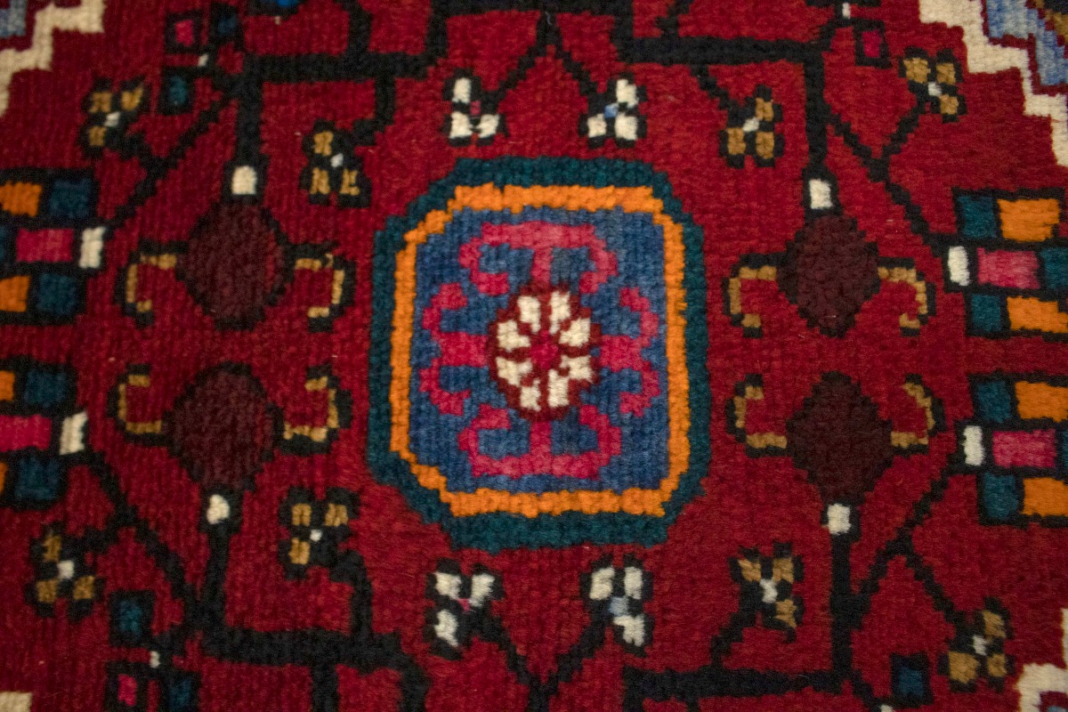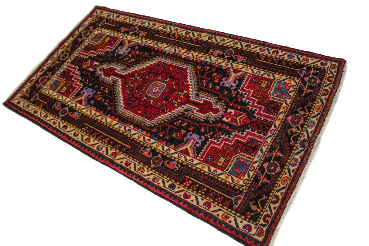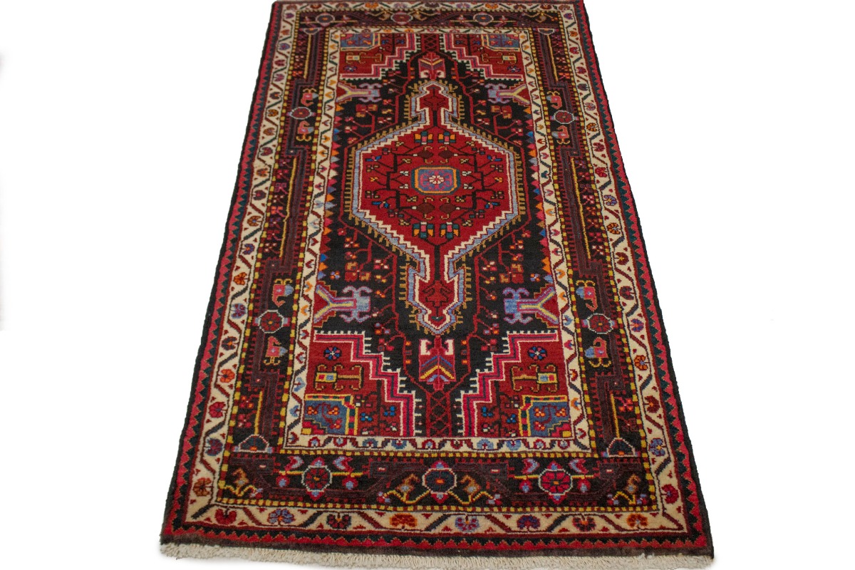 Vintage Geometric Red 3X6 Hamedan Persian Rug