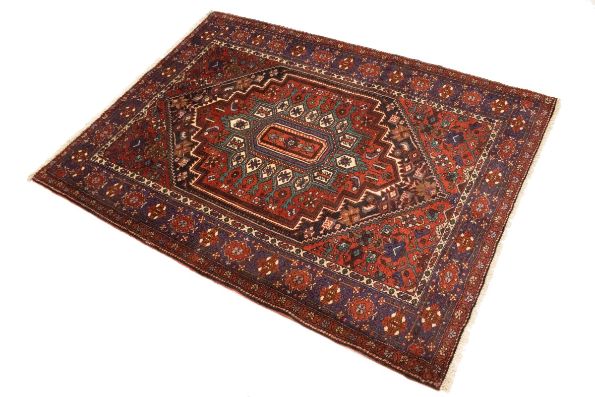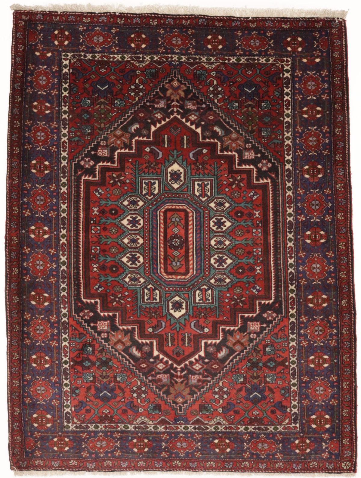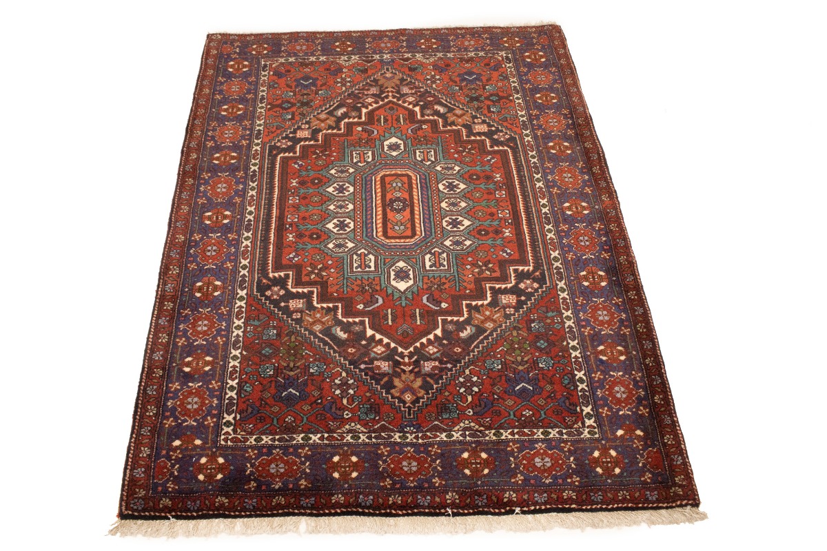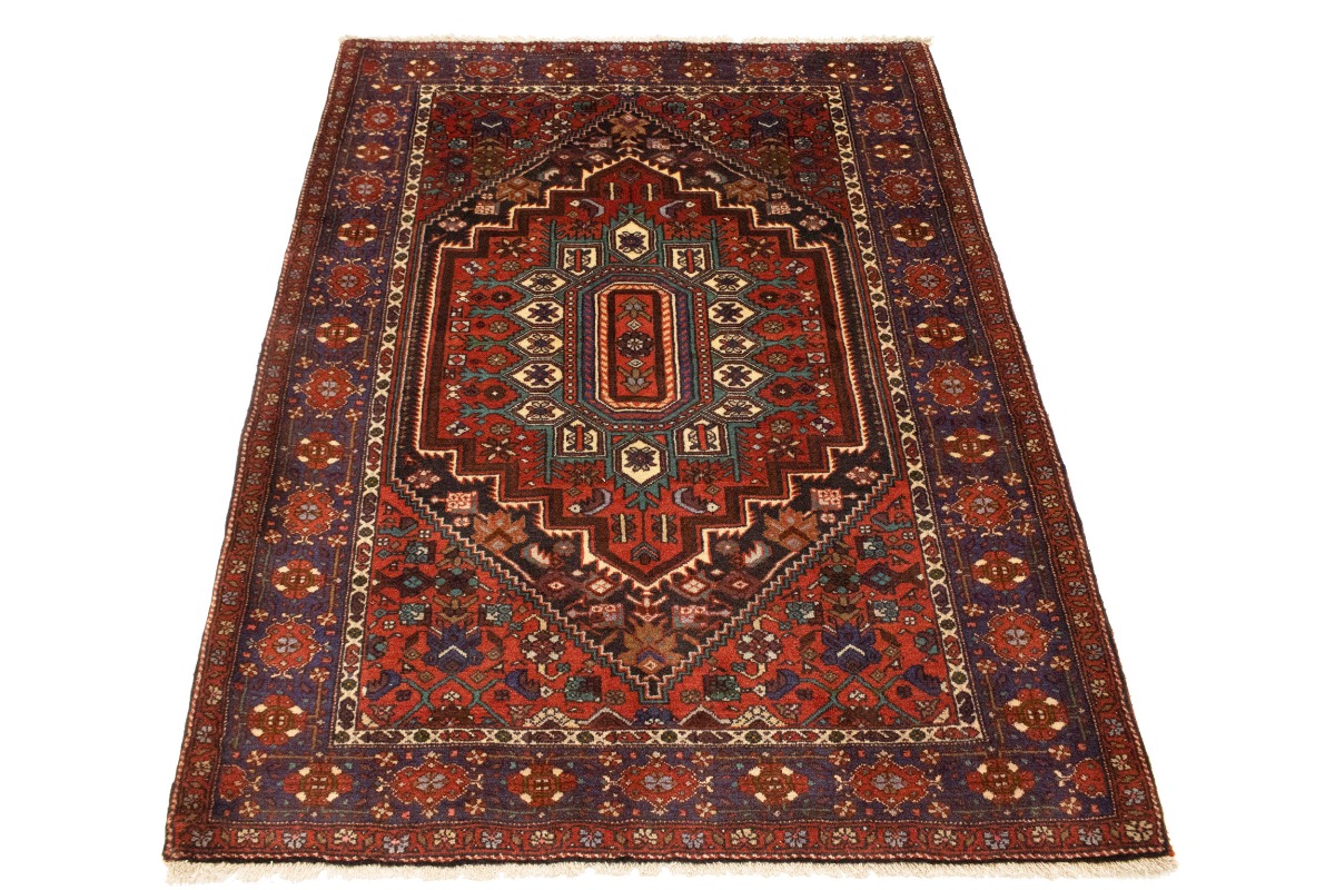 This original 4X5 red vintage Persian rug was crafted by the hands of skilled weavers enthused by a variety of lovely artistic designs, to recreate the aged look of the unique piece with a richness of color and beautifully elaborated background field. What set this tribal Oriental area rug from the others are the material and dye used (wool pile and cotton foundation), knot count, ancient designs, fantastic grades, and its regional historical connection: it has deep roots, from the story of the people who produced it to the meaning of the symbols and colors displayed across its canvas that have been praised for centuries. This home décor carpet will be completely cozy and inviting that never will go out of style! Also, this Oriental rug would be among your most valuable treasures, it is a great investment that increase in value over time, and it will last for generations because was woven with high-quality, all-natural wool; it won’t rip, tear, or shed. Environmentally friendly, opulent yet affordable; this Persian rug will give you a thorough amount of character to help define your living space with sophistication and warmth that will capture the eyes and attention of your audience (homeowners, designers, decorators, family and friends). RT-1965
