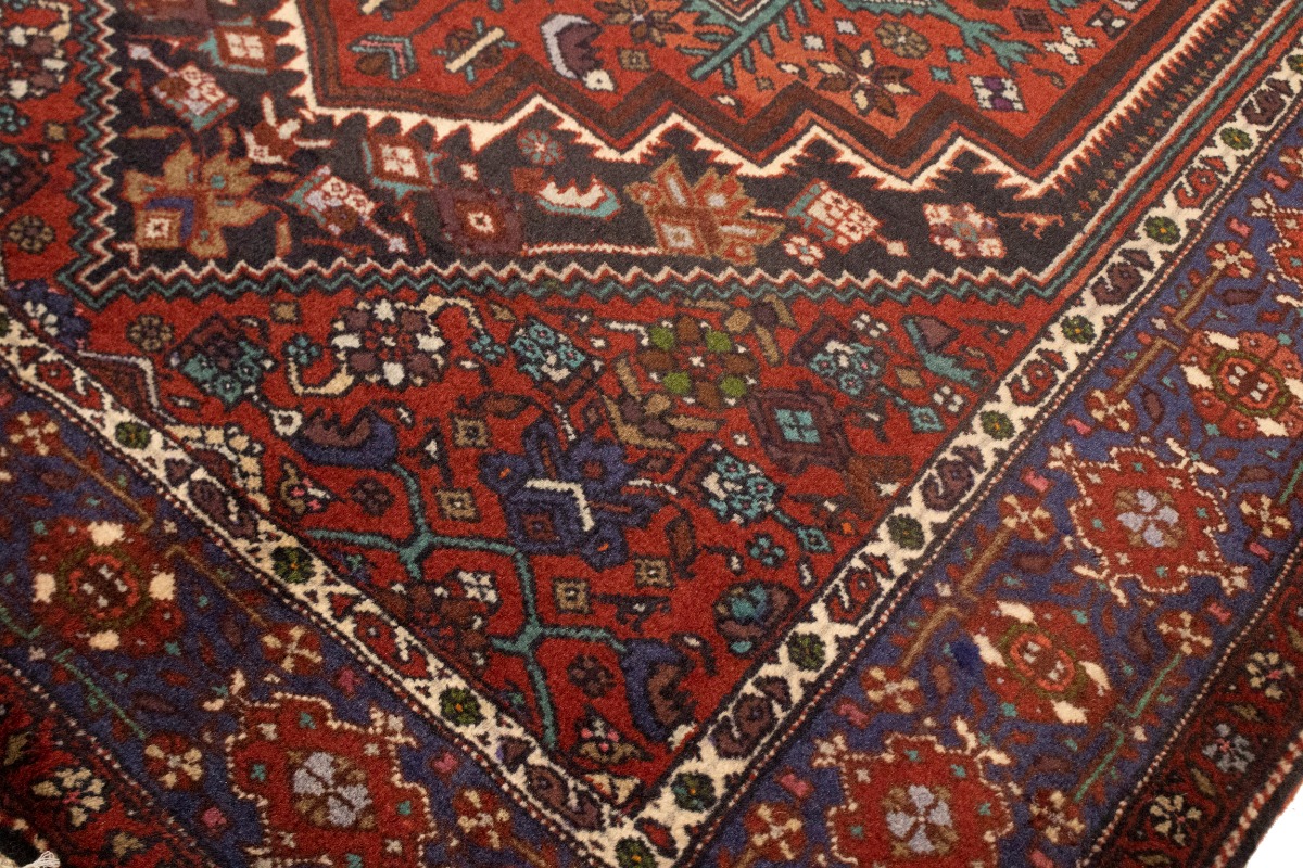 Vintage Geometric Scarlet Red 4X5 Bidjar Persian Rug