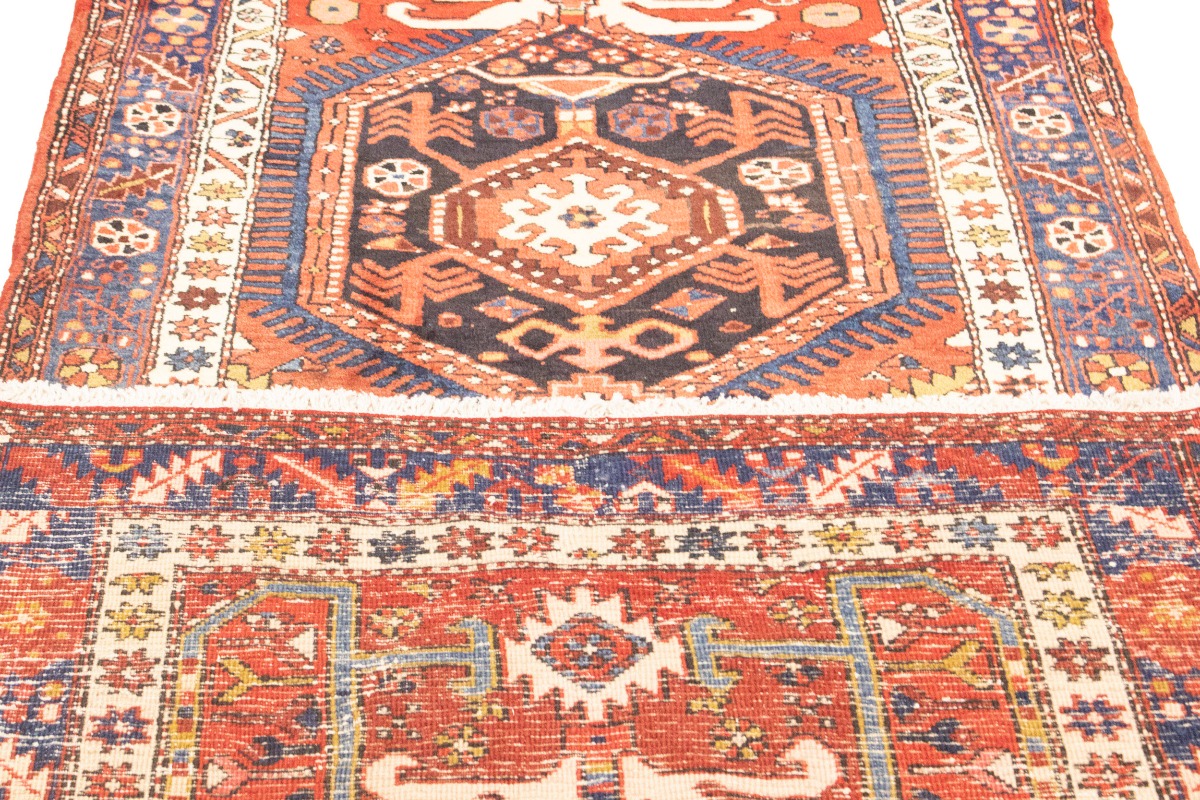 Vintage Geometric Tribal 4X14 Heriz Karajeh Persian Runner Rug