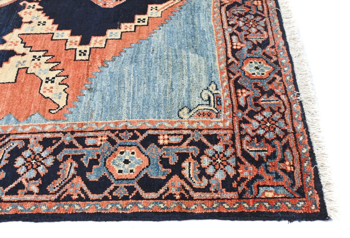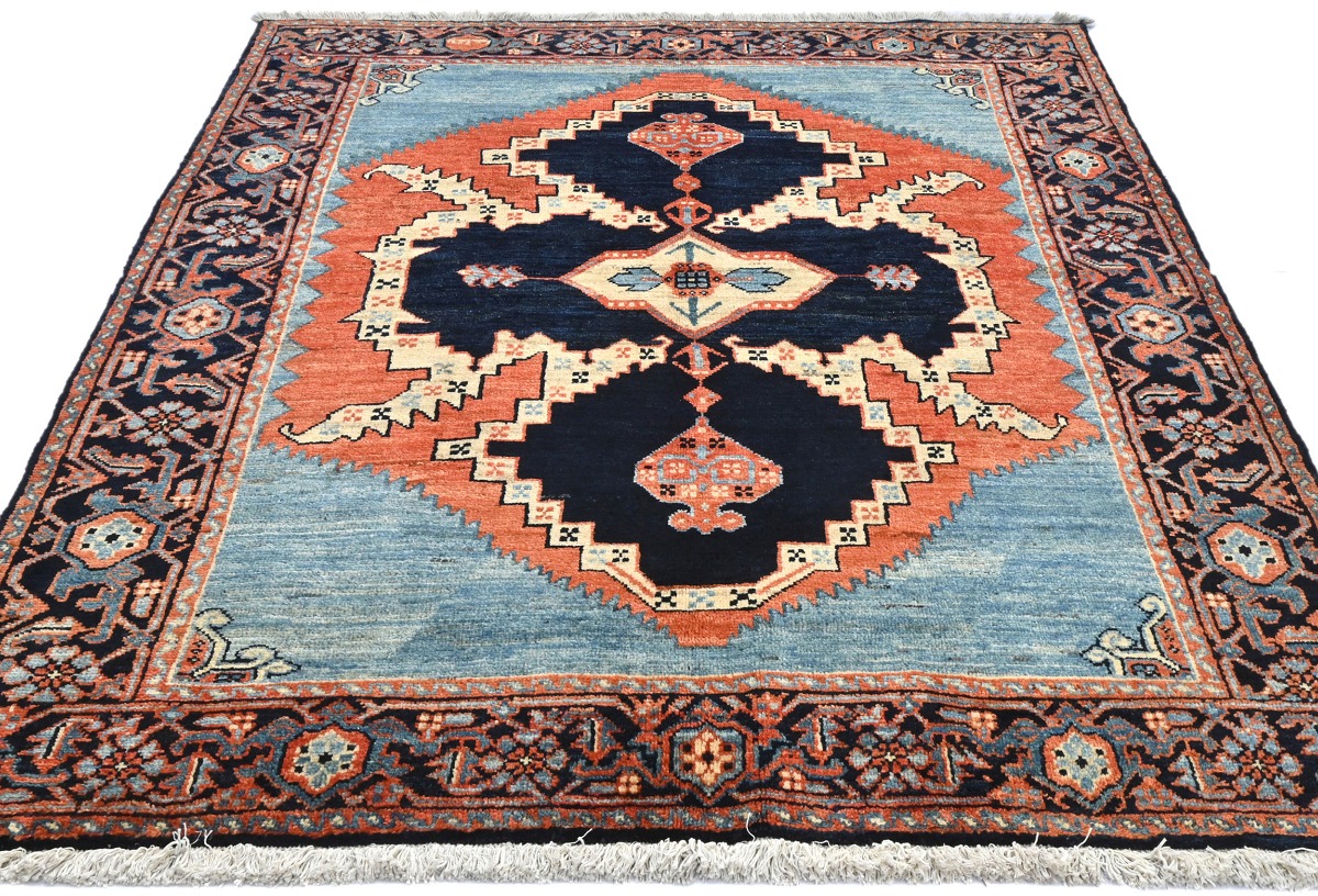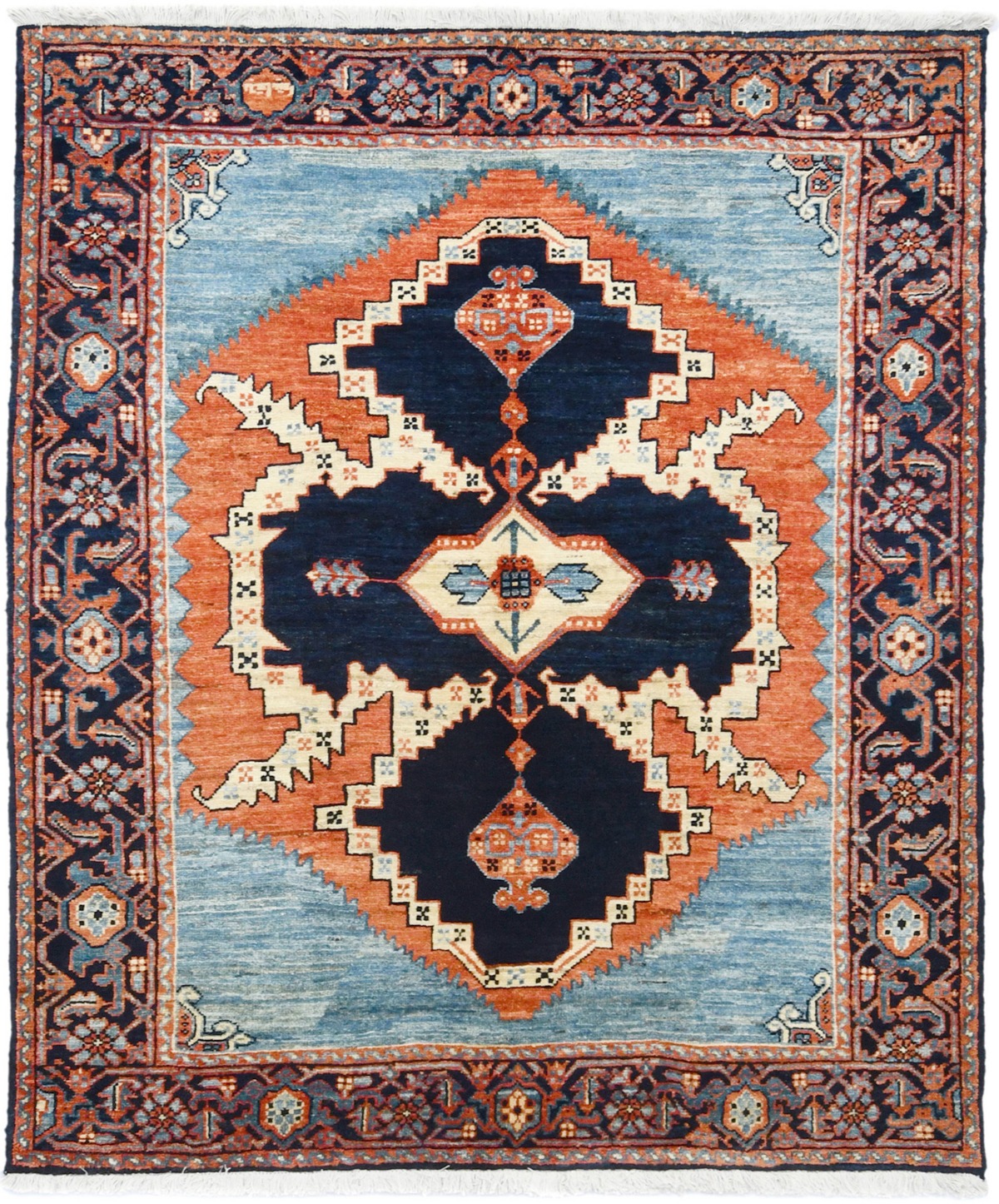 Handmade vintage 5X6 blue Persian rug made with vegetable dyes (fine wool pile and cotton foundation), superior knot count, and alluring ancient designs. This Oriental rug never will go out of style and would be among your most valuable treasures.