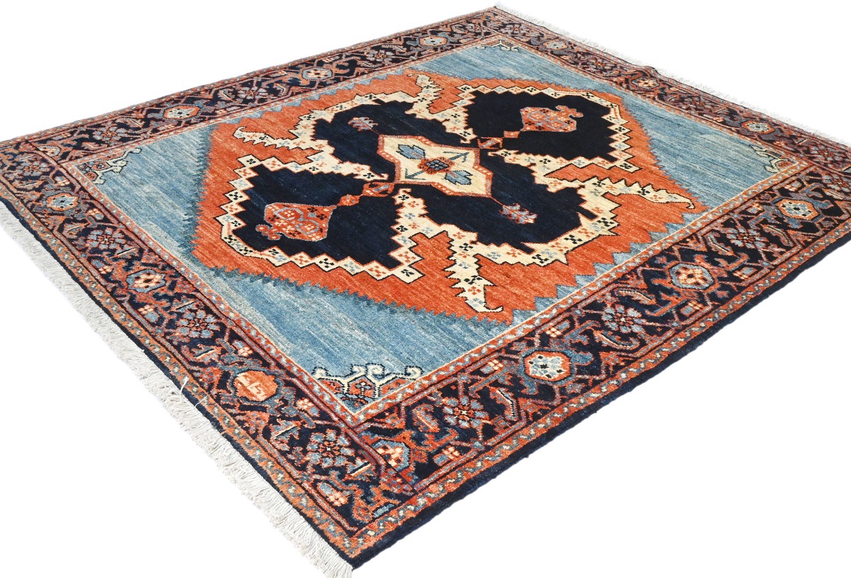 This authentic 5X6 blue vintage Persian rug was finely knotted by the hands of weavers influenced by a variety of amazing artistic designs, to recreate the aged look of the exceptional piece with a richness of color and embellished floral background field. What set this traditional Oriental area rug from the others are the material and dye used (wool pile and cotton foundation), knot count, antique designs, fantastic grades, and its regional historical connection: it has deep roots, from the story of the people who produced it to the meaning of the symbols and colors displayed across its canvas that have been praised for centuries. This classic home décor carpet will be completely cozy and inviting that never will go out of style! Also, this Oriental rug would be among your most valuable treasures, it is a great investment that increase in value over time, and it will last a lifetime because was woven with high-quality, all-natural wool; it won’t rip, tear, or shed. Eco-friendly, opulent yet affordable; this Persian rug will give you an extra pop of character to help define your home environment with luxury and warmth that will capture the eyes and attention of your audience (homeowners, designers, decorators, family and friends). RT-5661