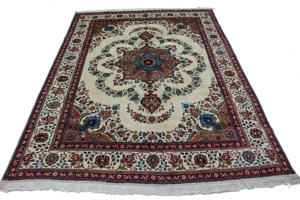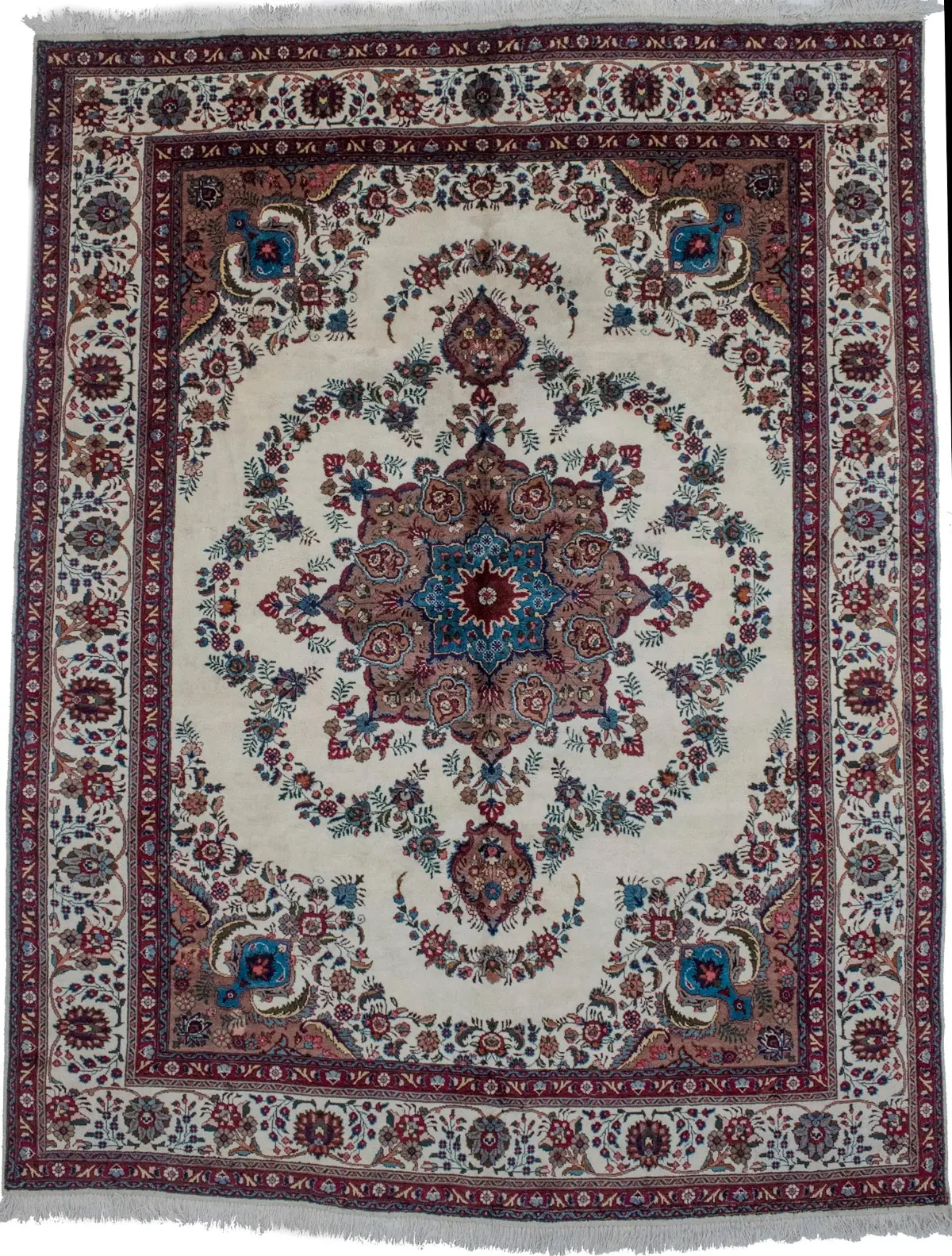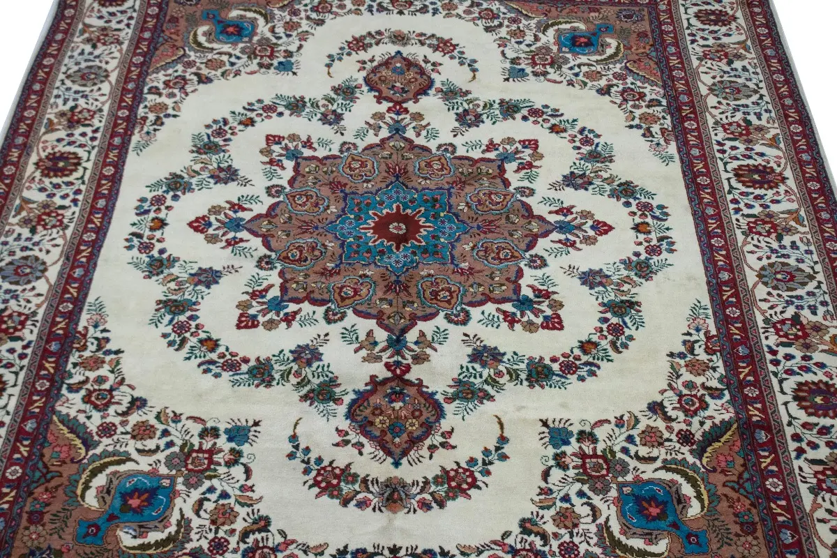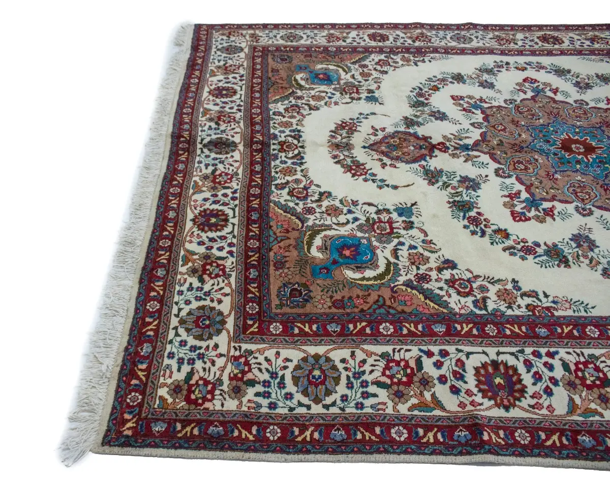 Vintage Ivory Traditional 10X13 Tabriz Persian Rug