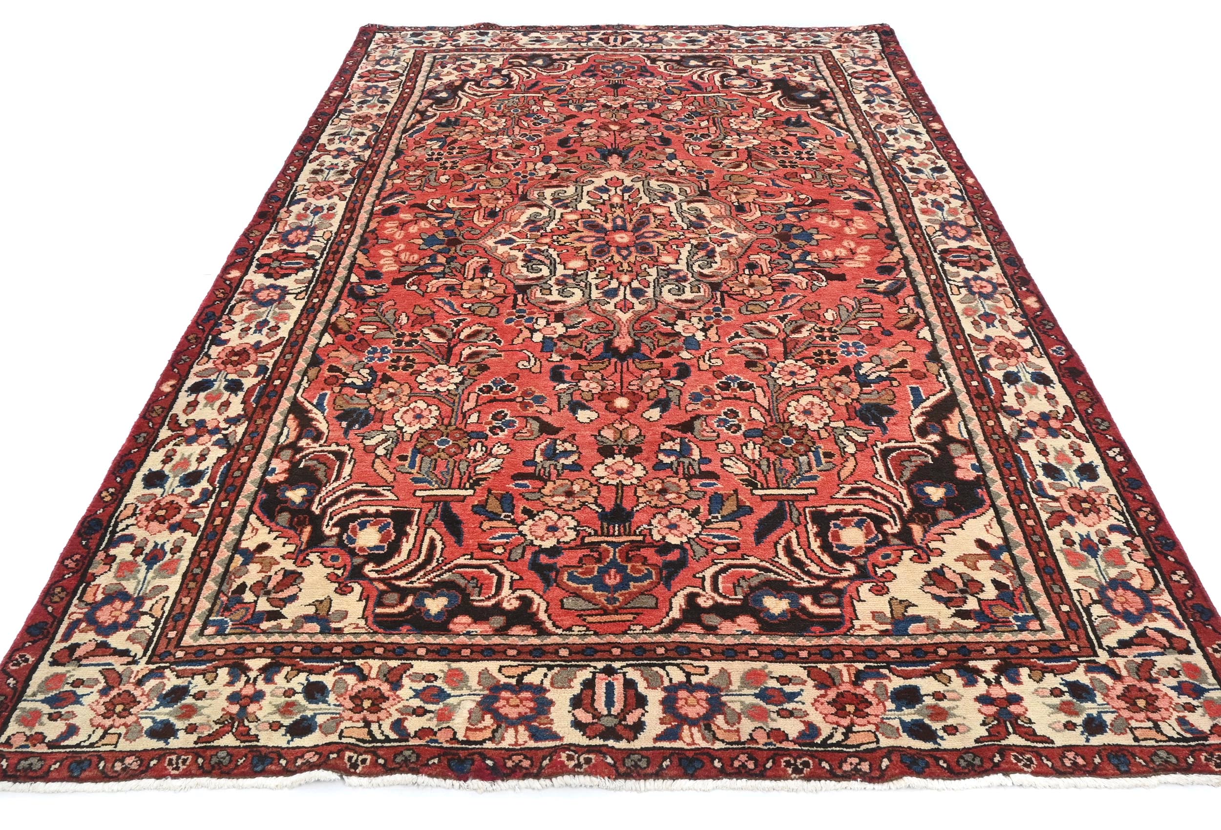 Vintage Light Red Floral Tribal 6X9 Hamedan Persian Rug
