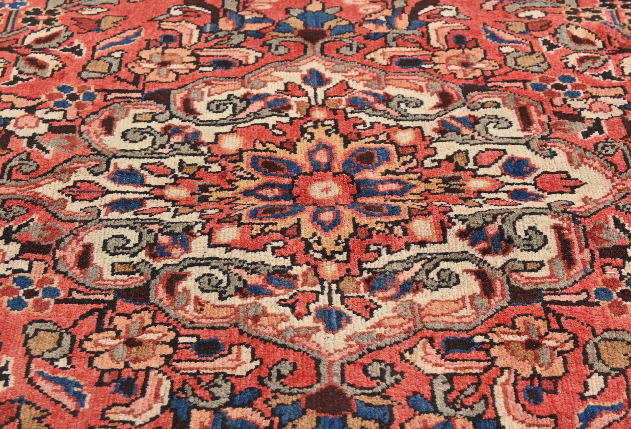 This original 6X9 light red vintage Persian rug was crafted by the hands of skilled weavers enthused by a variety of lovely artistic designs, to recreate the aged look of the unique piece with a richness of color and beautifully elaborated background field. What set this tribal Oriental area rug from the others are the material and dye used (wool pile and cotton foundation), knot count, ancient designs, fantastic grades, and its regional historical connection: it has deep roots, from the story of the people who produced it to the meaning of the symbols and colors displayed across its canvas that have been praised for centuries. This home décor carpet will be completely cozy and inviting that never will go out of style! Also, this Oriental rug would be among your most valuable treasures, it is a great investment that increase in value over time, and it will last for generations because was woven with high-quality, all-natural wool; it won’t rip, tear, or shed. Environmentally friendly, opulent yet affordable; this Persian rug will give you a thorough amount of character to help define your living space with sophistication and warmth that will capture the eyes and attention of your audience (homeowners, designers, decorators, family and friends). RT-7194