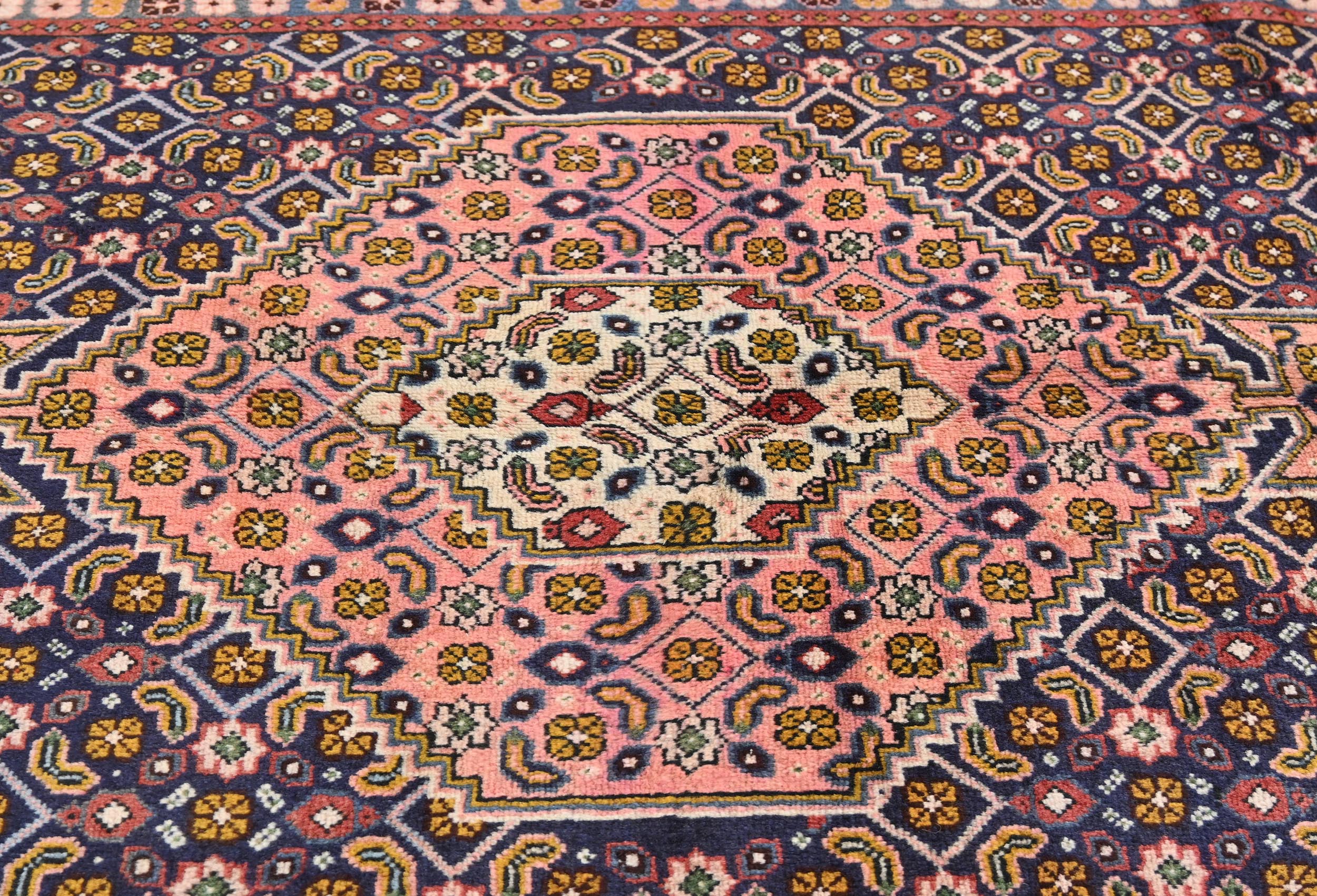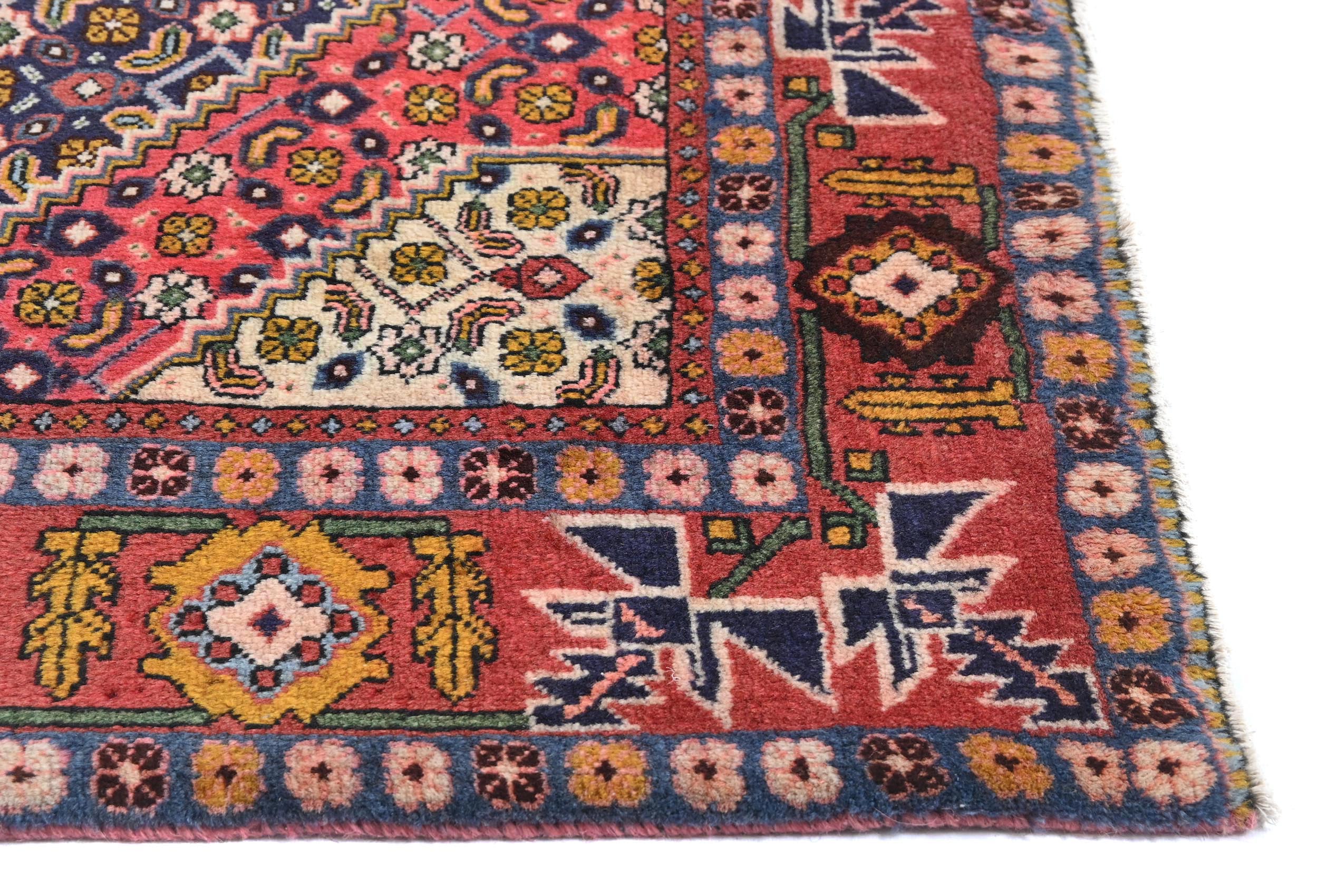This genuine 5X9 light red vintage Persian rug was made by the hands of gifted weavers inspired by a variety of spectacular artistic designs, to recreate the aged look of the original piece with a richness of color and ornately patterned background field. What set this geometric Oriental area rug from the others are the material and dye used (wool pile and cotton foundation), knot count, ancient designs, fantastic grades, and its regional historical connection: it has deep roots, from the story of the people who produced it to the meaning of the symbols and colors displayed across its canvas that have been praised for centuries. This home decor carpet will be completely cozy and inviting that never will go out of style! Also, this Oriental rug would be among your most valuable treasures, it is a great investment that accrues value over time, and it will last for generations because was woven with high-quality, all-natural wool; it won’t rip, tear, or shed. Environmentally friendly, opulent yet affordable; this Persian rug will give you a thorough amount of character to help define your living space with elegance and warmth that will capture the eyes and attention of your audience (homeowners, designers, decorators, family and friends). RT-7195