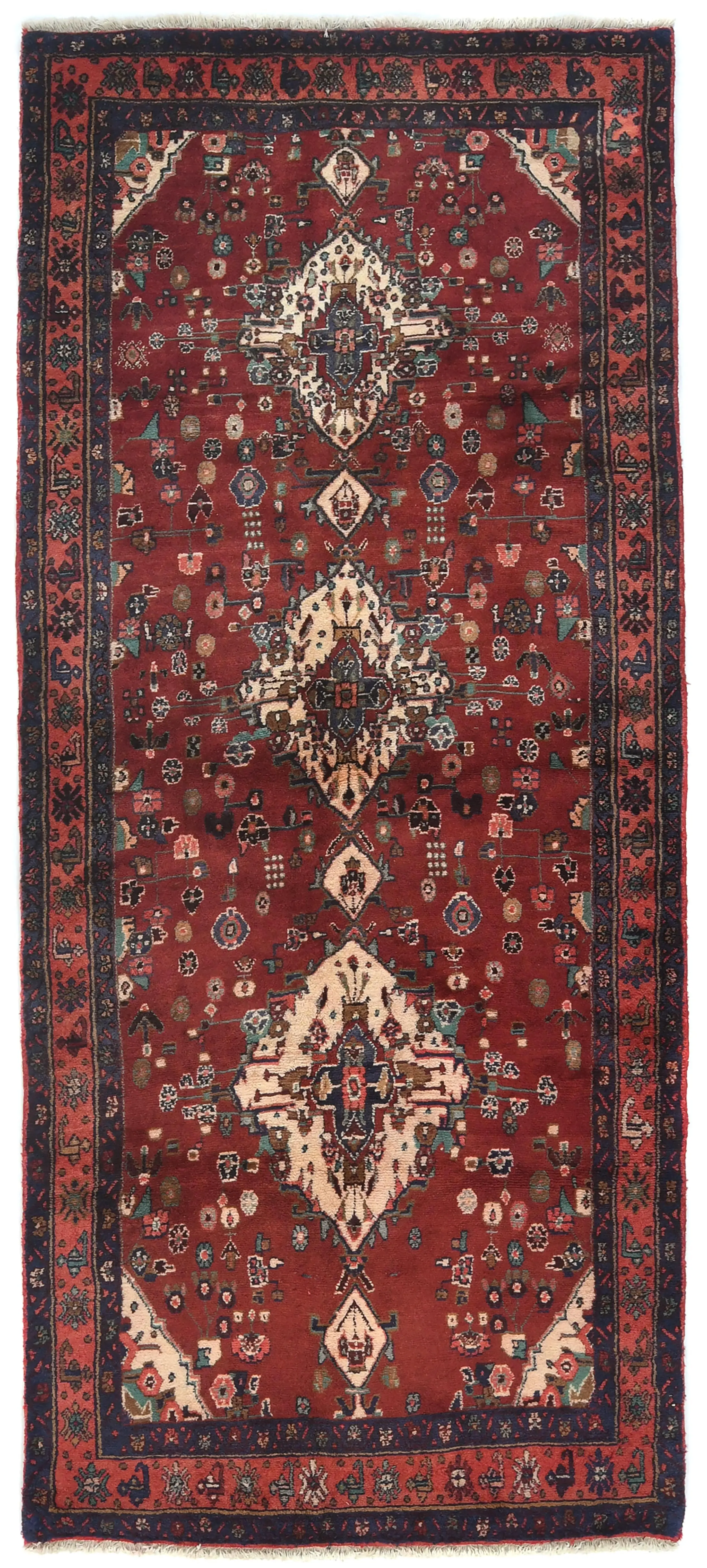 Vintage Maroon Red Floral Tribal 4X10 Hamedan Persian Runner Rug