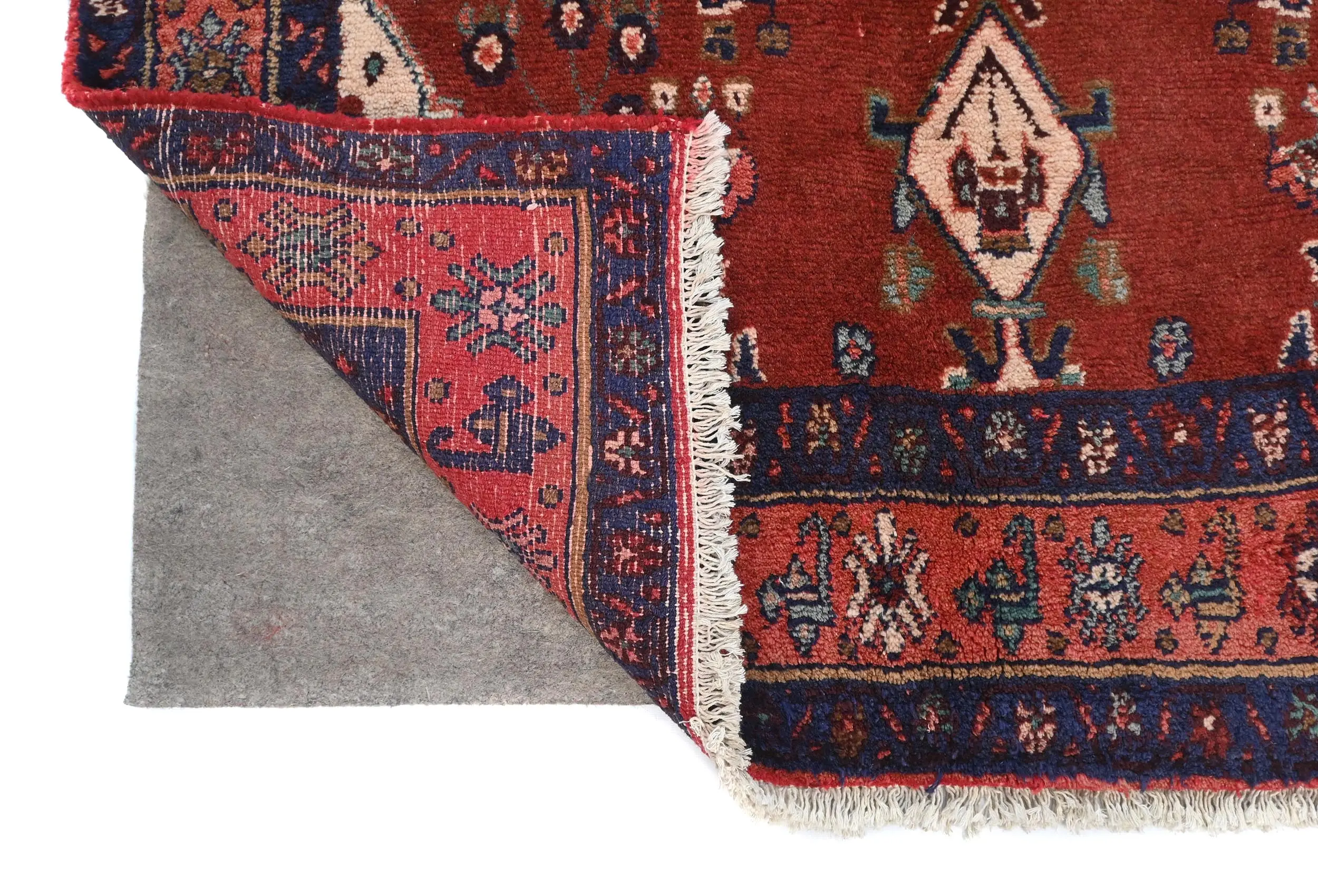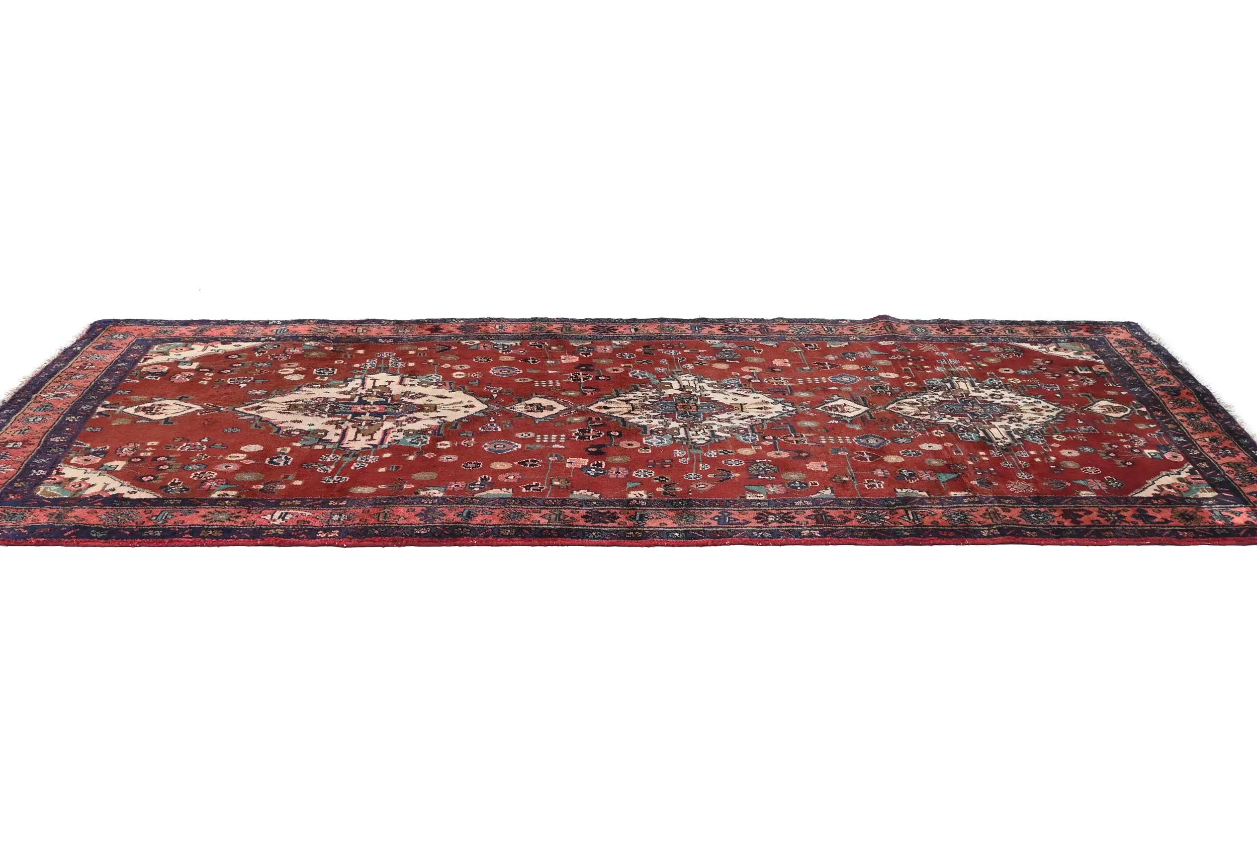 This original 4X10 Maroon red vintage Persian runner was crafted by the hands of skilled weavers enthused by a variety of lovely artistic designs, to recreate the aged look of the unique piece with a richness of color and beautifully elaborated background field. What set this tribal Oriental area runner from the others are the material and dye used (wool pile and cotton foundation), knot count, ancient designs, fantastic grades, and its regional historical connection: it has deep roots, from the story of the people who produced it to the meaning of the symbols and colors displayed across its canvas that have been praised for centuries. This home décor carpet will be completely cozy and inviting that never will go out of style! Also, this Oriental runner would be among your most valuable treasures, it is a great investment that increase in value over time, and it will last for generations because was woven with high-quality, all-natural wool; it won’t rip, tear, or shed. Environmentally friendly, opulent yet affordable; this Persian rug will give you a thorough amount of character to help define your living space with sophistication and warmth that will capture the eyes and attention of your audience (homeowners, designers, decorators, family and friends). RT-7240