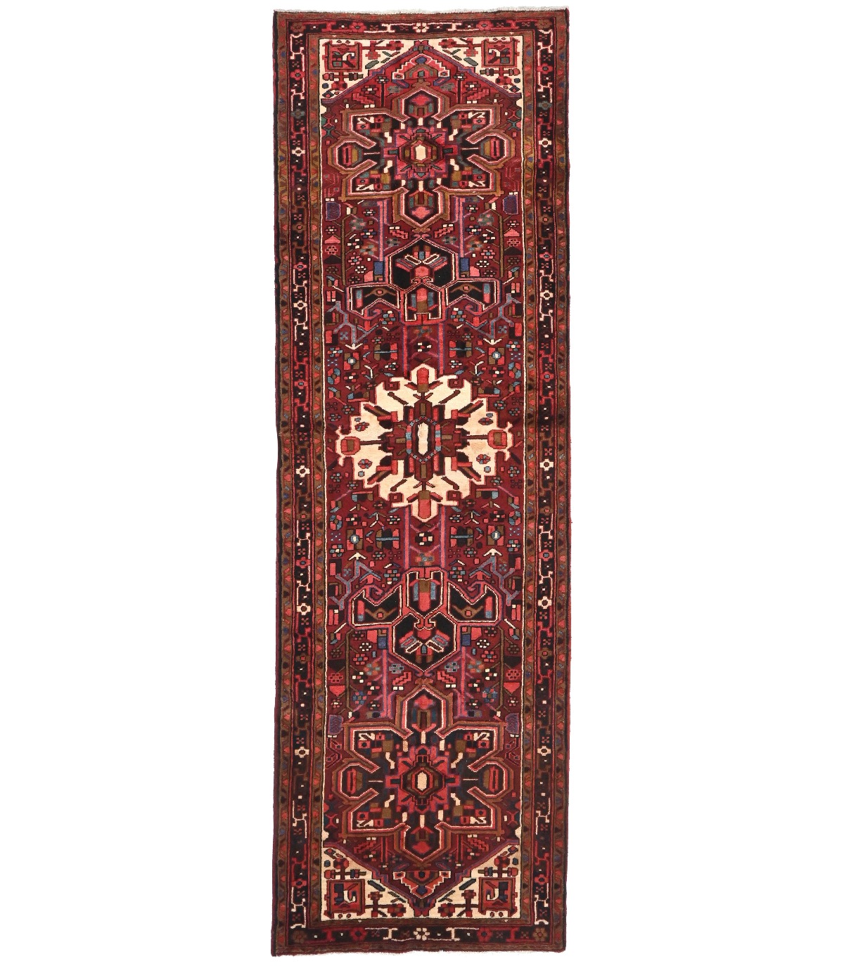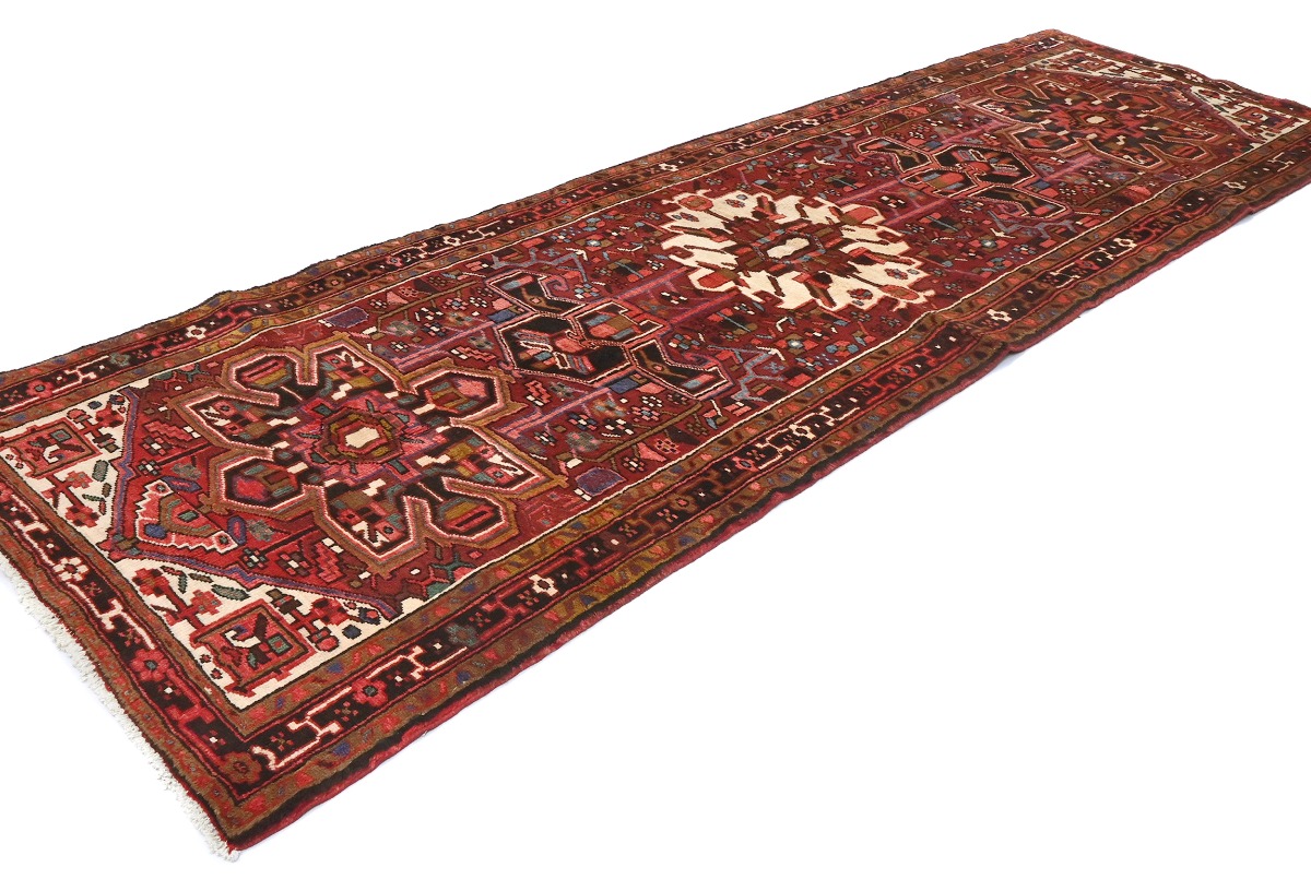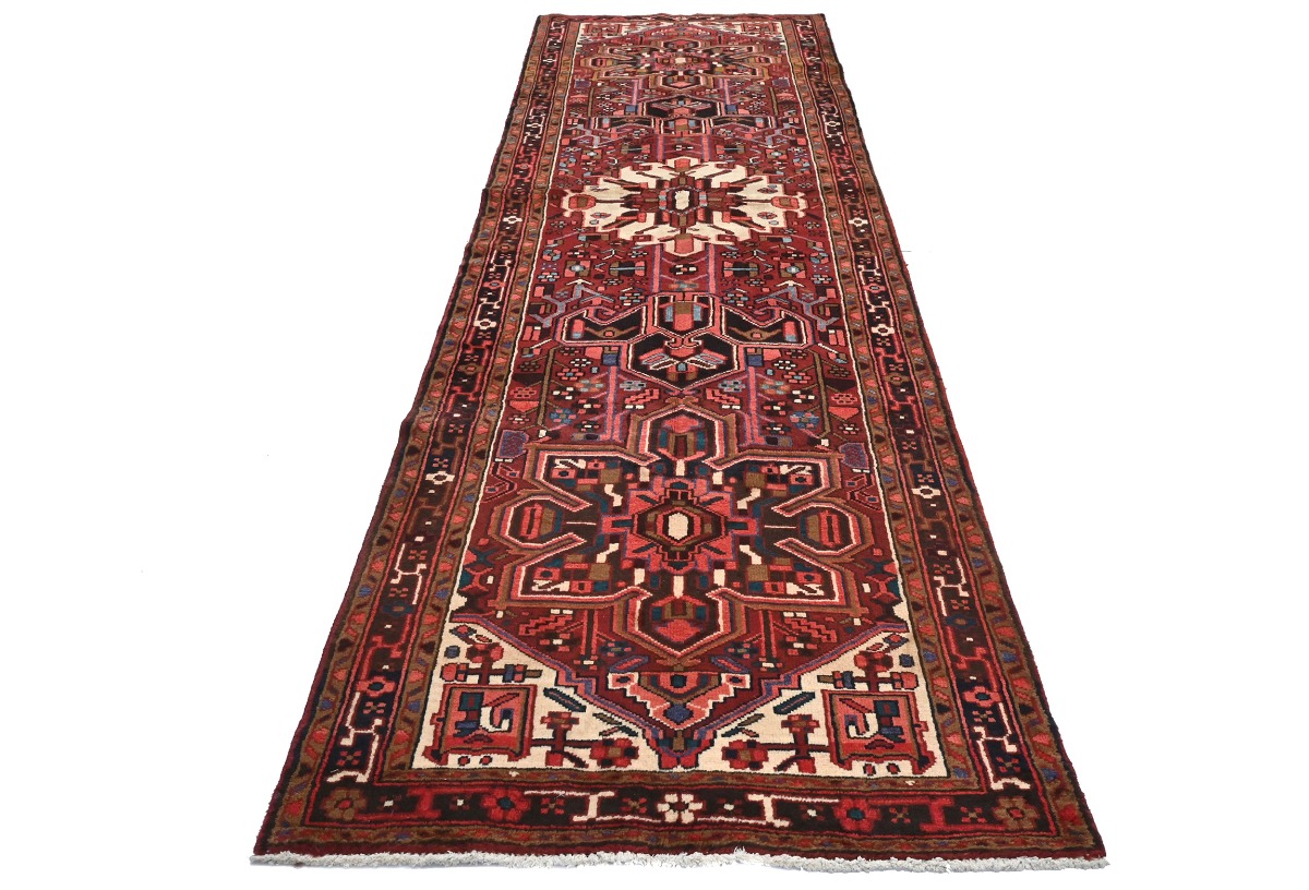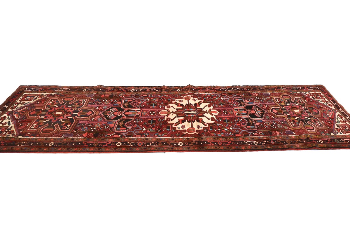 Handmade vintage 3'6X11'3 maroon red Persian runner made with vegetable dyes (fine wool pile and cotton foundation), superior knot count, and alluring ancient designs. This Oriental runner never will go out of style and would be among your most valuable treasures.