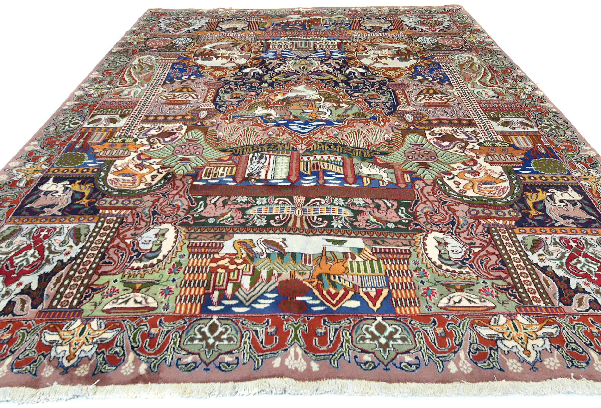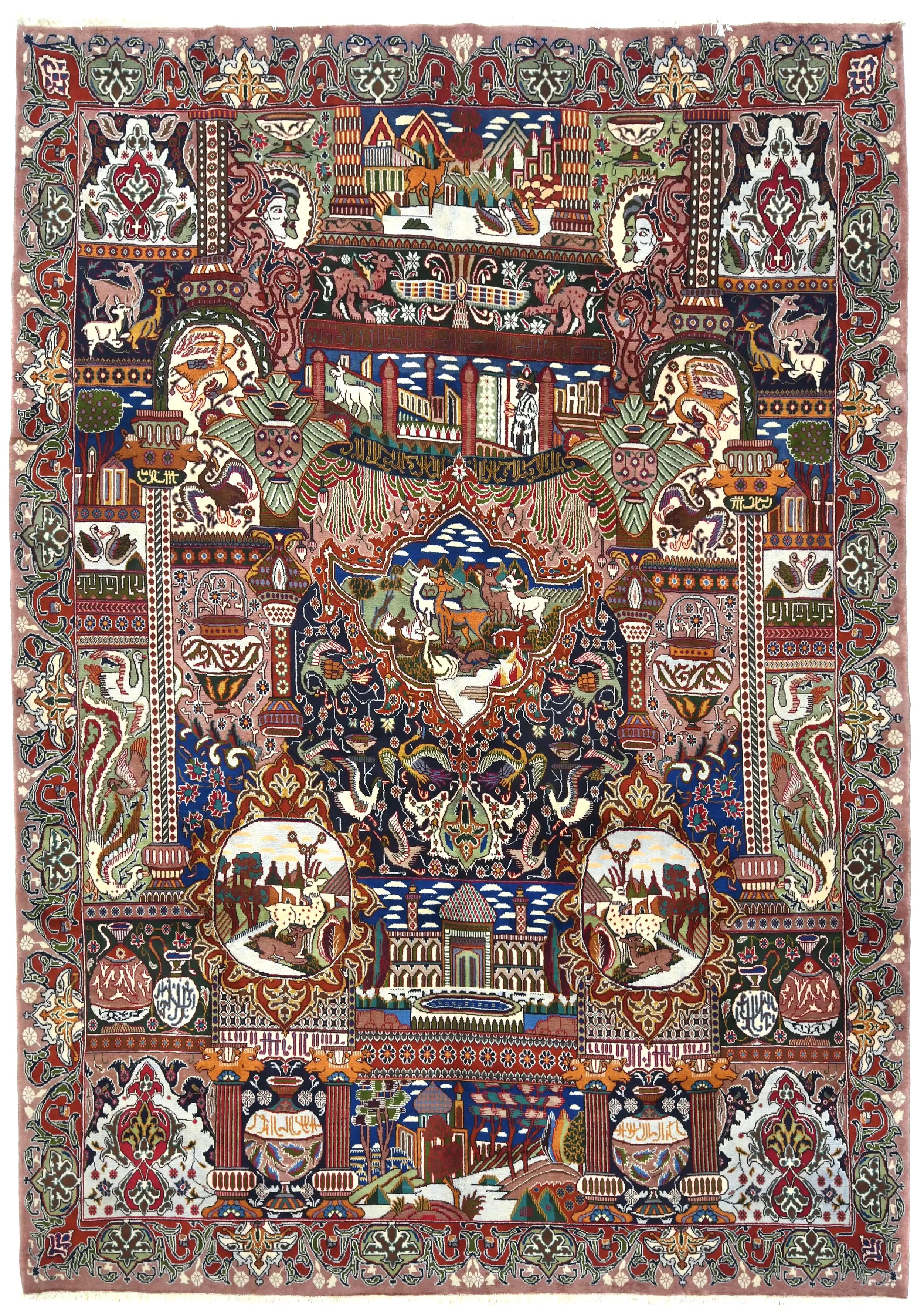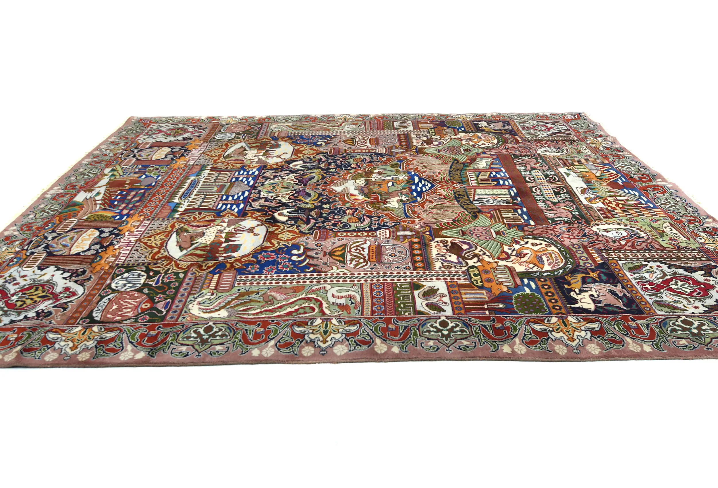 Vintage Mauve Pictorial 10X13 Kashmar Persian Rug