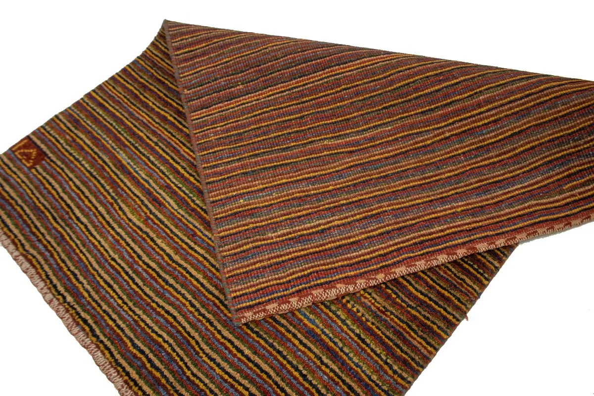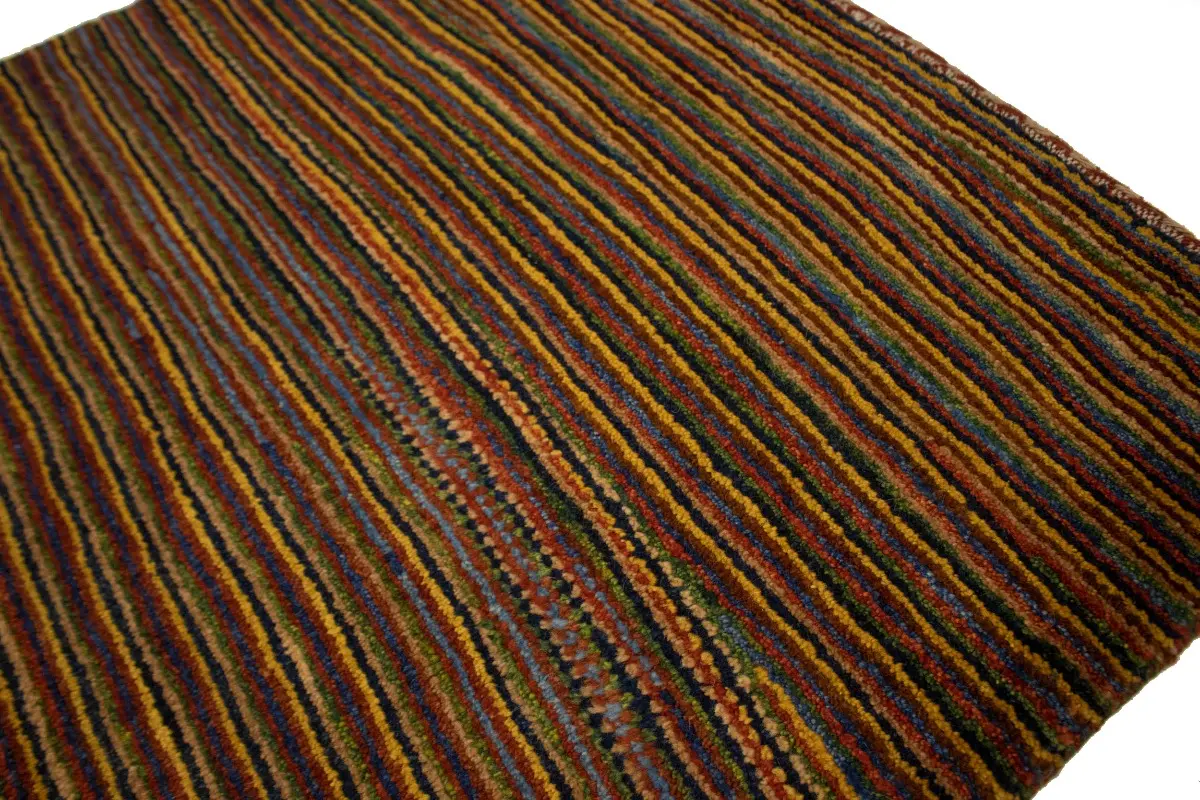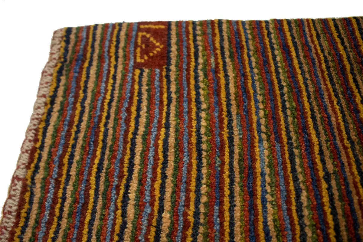 Vintage Multicolored Stripes Tribal 3X4 Gabbeh Persian Rug
