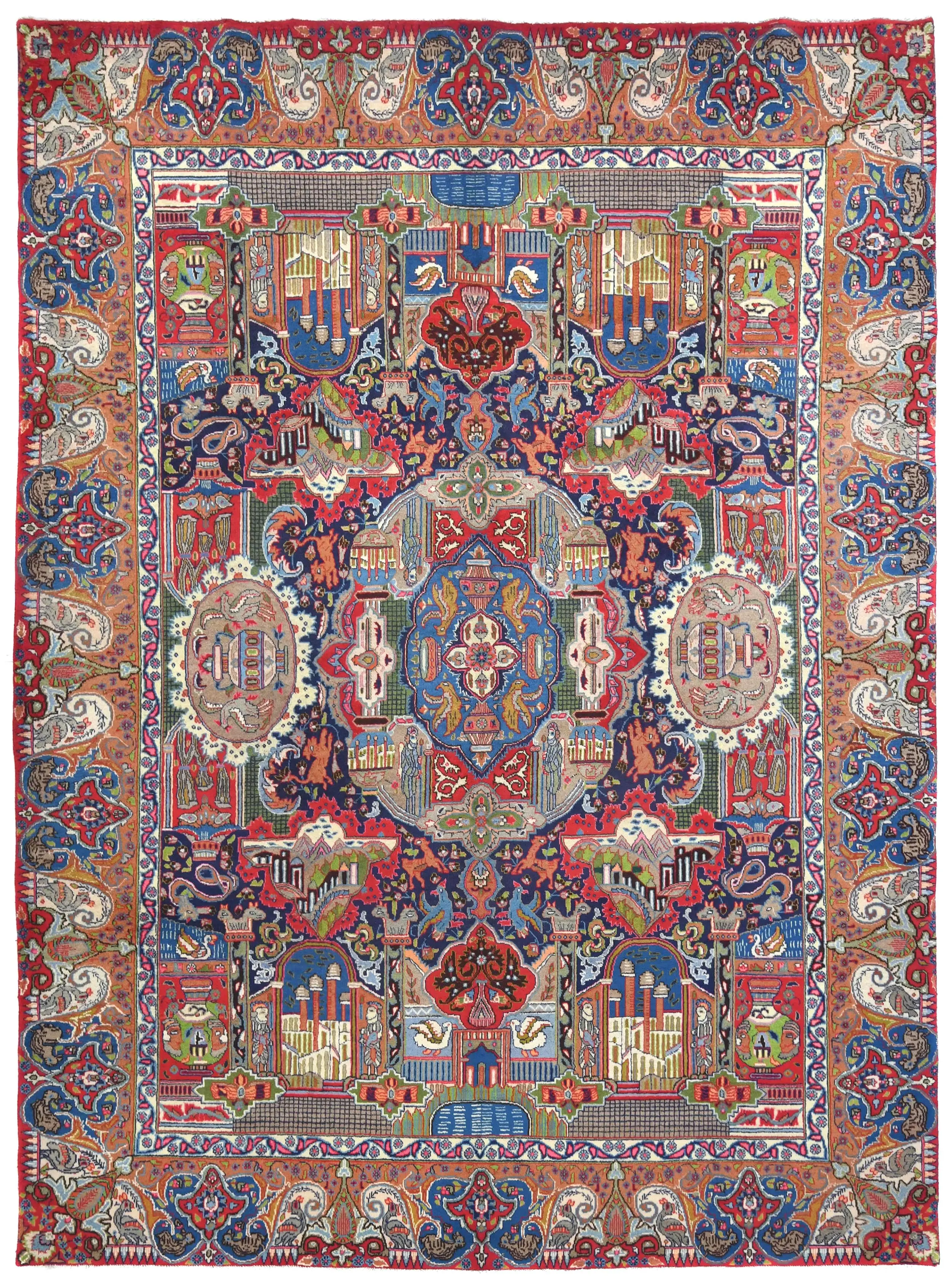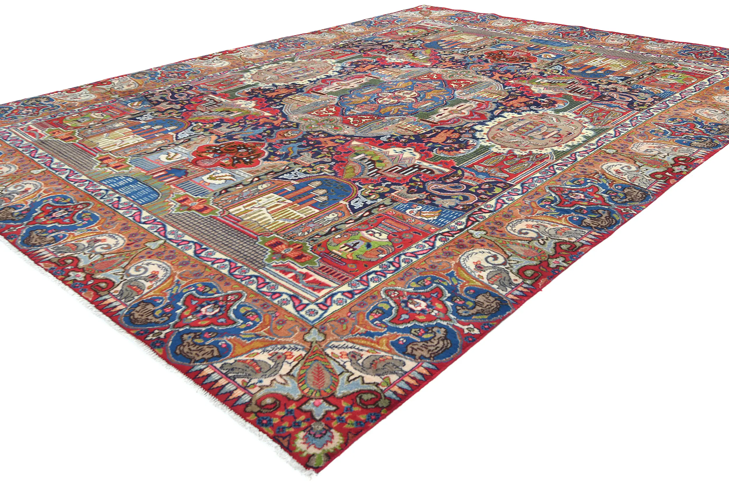 Vintage Multicolored Traditional 10X13 Kashmar Persian Rug