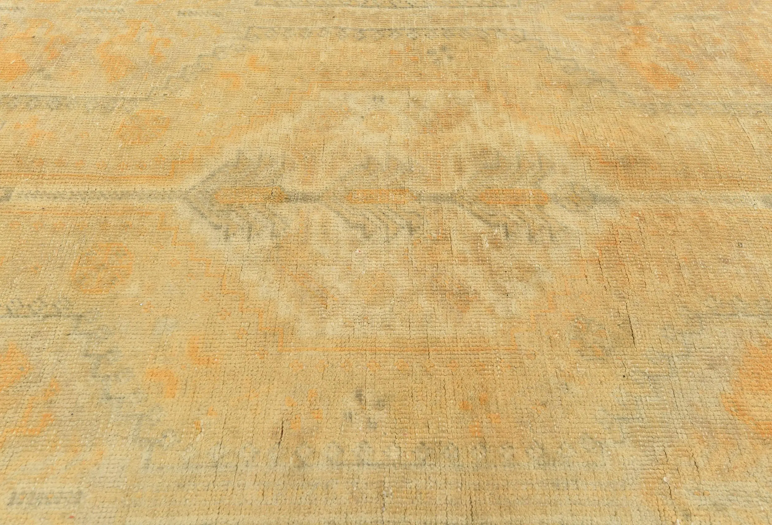 This original 5X9 Beige vintage Persian rug was well-constructed by the hands of master weavers motivated by a variety of stunning artistic designs, to recreate the aged look of the exceptional piece with a richness of color and developed decorative background field. What set this tribal Oriental area rug from the others are the material and dye used (wool pile and cotton foundation), knot count, ancient designs, fantastic grades, and its regional historical connection: it has deep roots, from the story of the people who produced it to the meaning of the symbols and colors displayed across its canvas that have been praised for centuries. This home décor carpet will be completely cozy and inviting that never will go out of style! Also, this Oriental rug would be among your most valuable treasures, it is a great investment that increase in value over time, and it will last a lifetime because was woven with high-quality, all-natural wool; it won’t rip, tear, or shed. Eco-friendly, opulent yet affordable; this Persian rug will give you an extra pop of character to help define your home environment with elegance and warmth that will capture the eyes and attention of your audience (homeowners, designers, decorators, family and friends). RT-6942