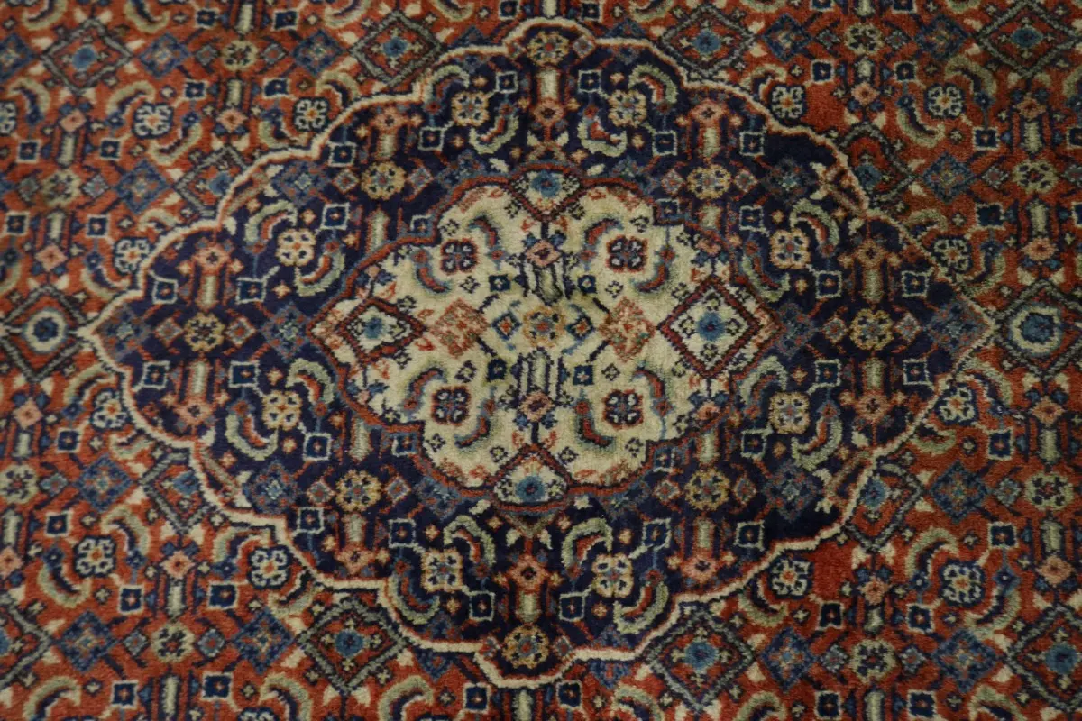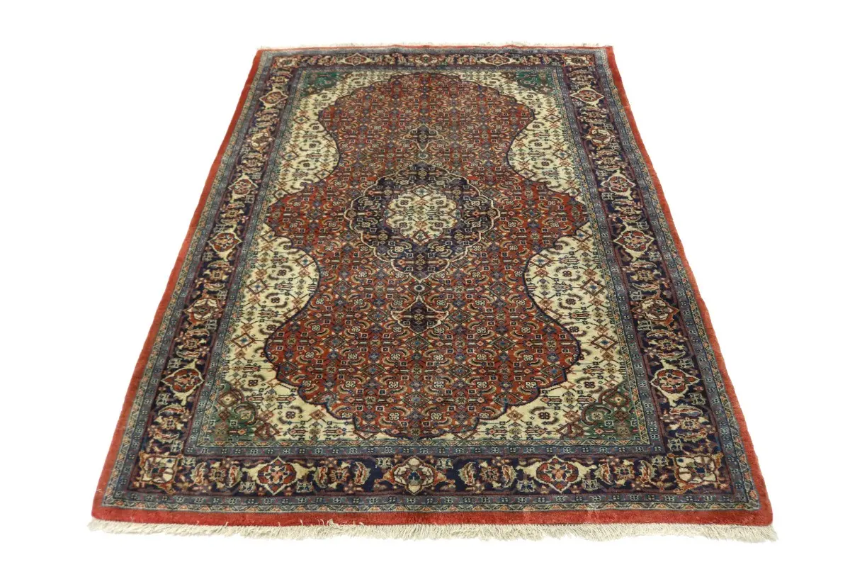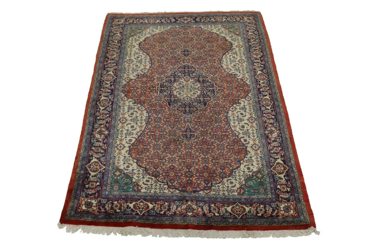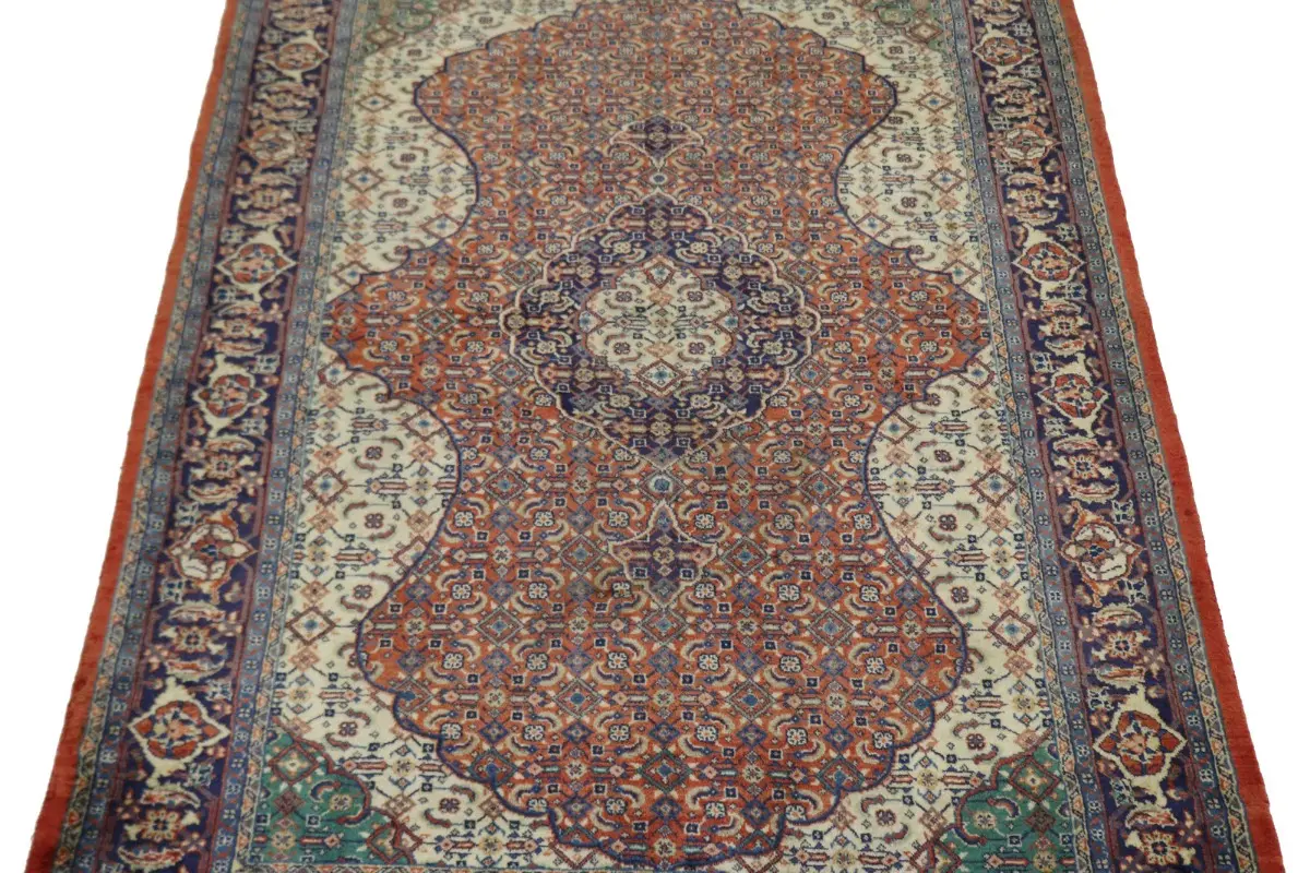This authentic 4'5X6'7 orange vintage Persian rug was made by the hands of gifted weavers inspired by a variety of spectacular artistic designs, to recreate the aged look of the original piece with a richness of color and ornately patterned background field. What set this geometric Oriental area rug from the others are the material and dye used (wool pile and cotton foundation), knot count, ancient designs, fantastic grades, and its regional historical connection: it has deep roots, from the story of the people who produced it to the meaning of the symbols and colors displayed across its canvas that have been praised for centuries. This home decor carpet will be completely cozy and inviting that never will go out of style! Also, this Oriental rug would be among your most valuable treasures, it is a great investment that accrues value over time, and it will last for generations because was woven with high-quality, all-natural wool; it won’t rip, tear, or shed. Environmentally friendly, opulent yet affordable; this Persian rug will give you a thorough amount of character to help define your living space with elegance and warmth that will capture the eyes and attention of your audience (homeowners, designers, decorators, family and friends). RT-2747