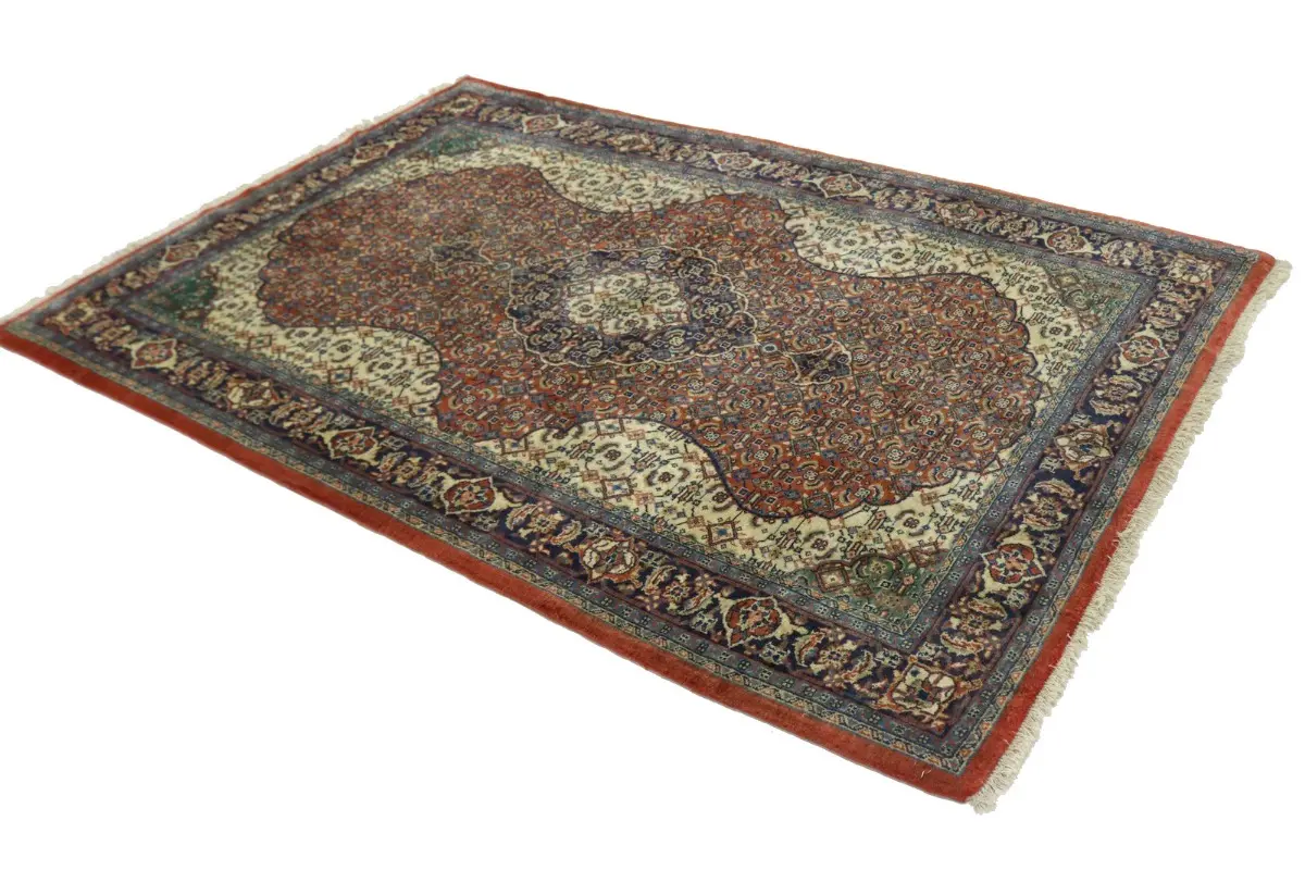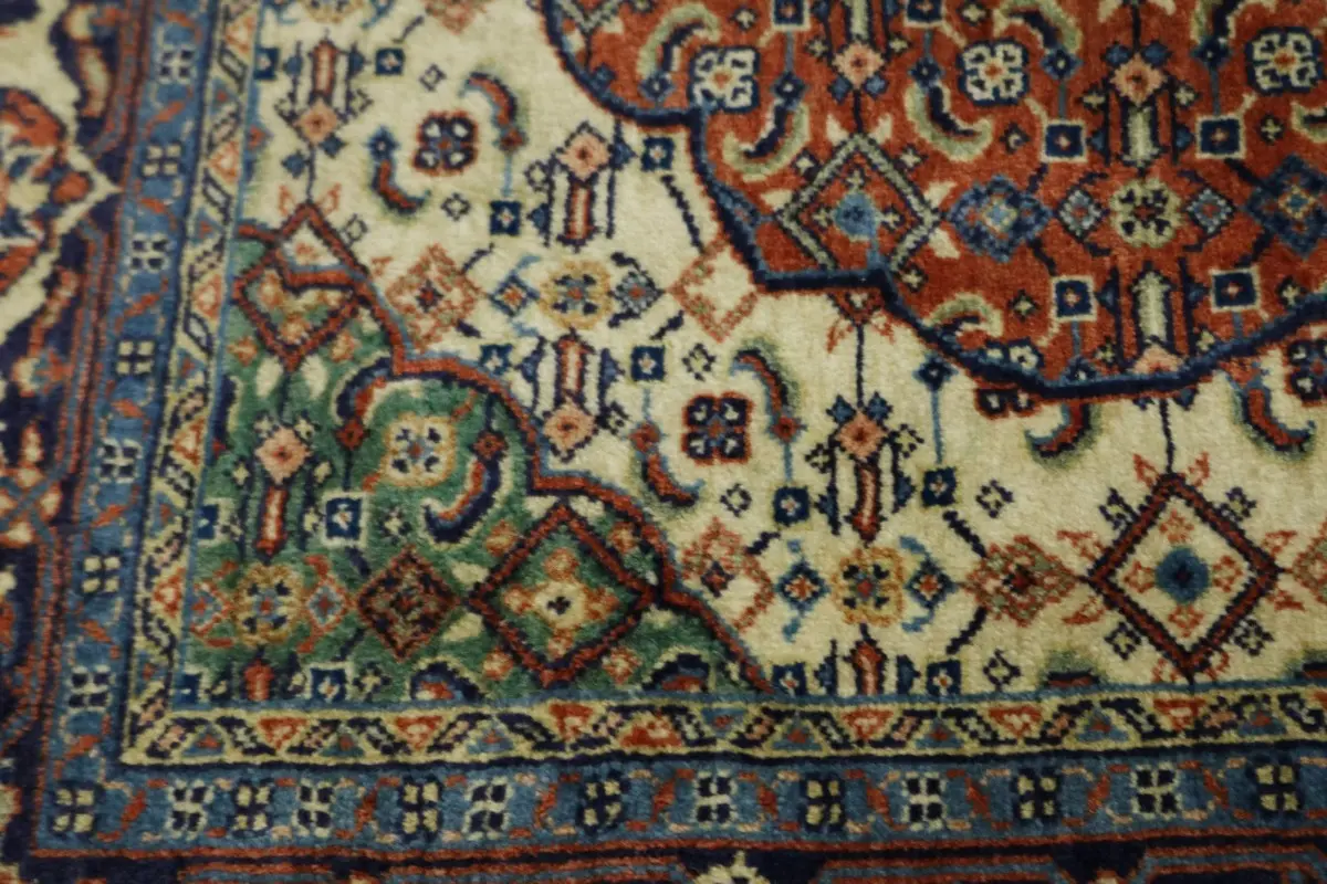 Handmade vintage Persian rug made with vegetable dyes (fine wool pile and cotton foundation), superior knot count, and appealing ancient designs. This Oriental rug never will go out of style and would be among your most valuable treasures.