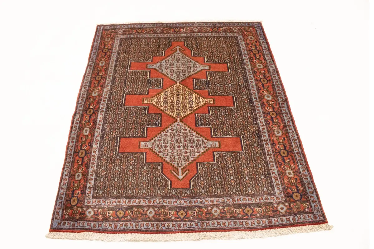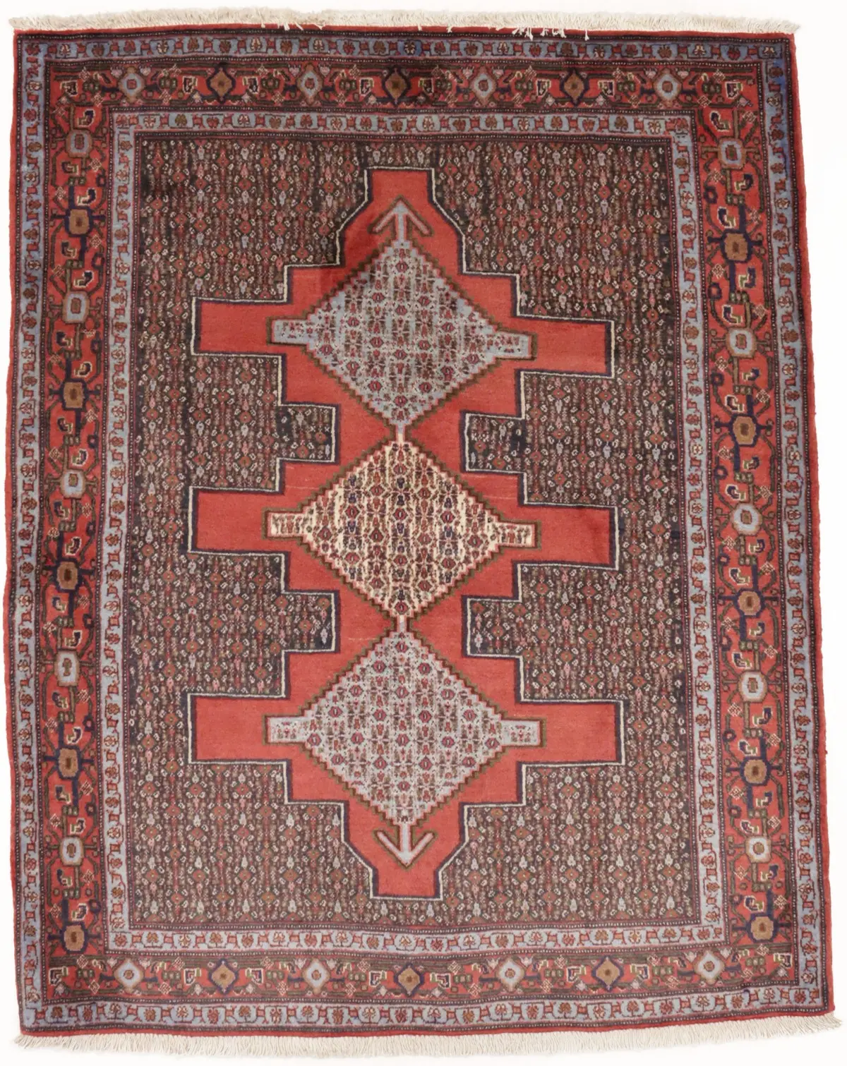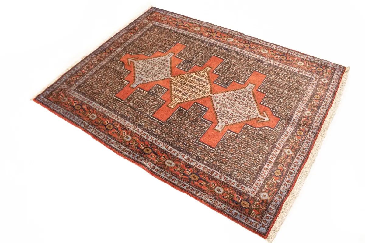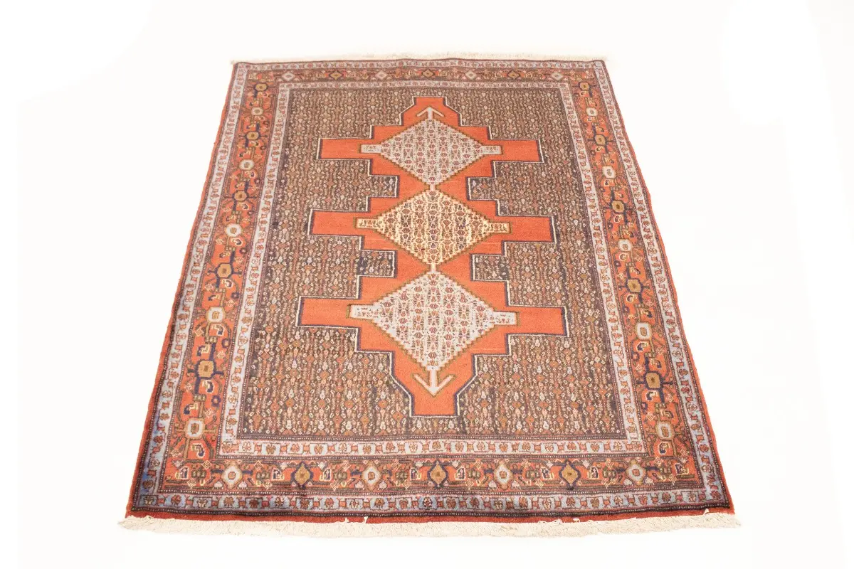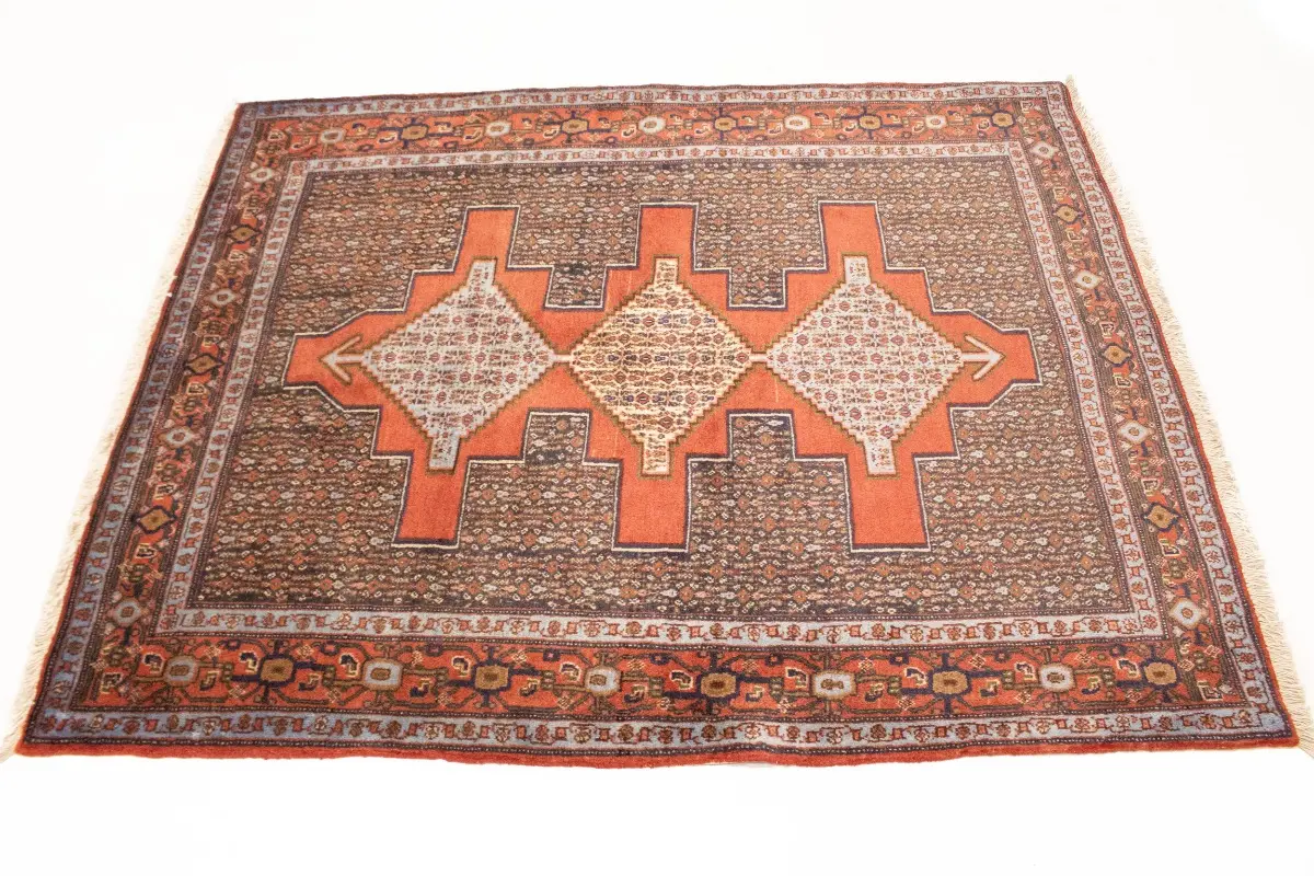 Vintage Orange Geometric 4X5 Bidjar Sanneh Persian Rug