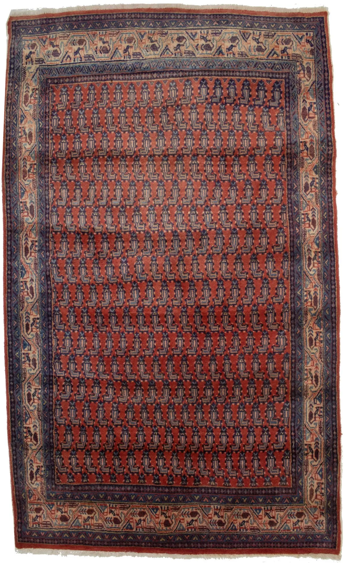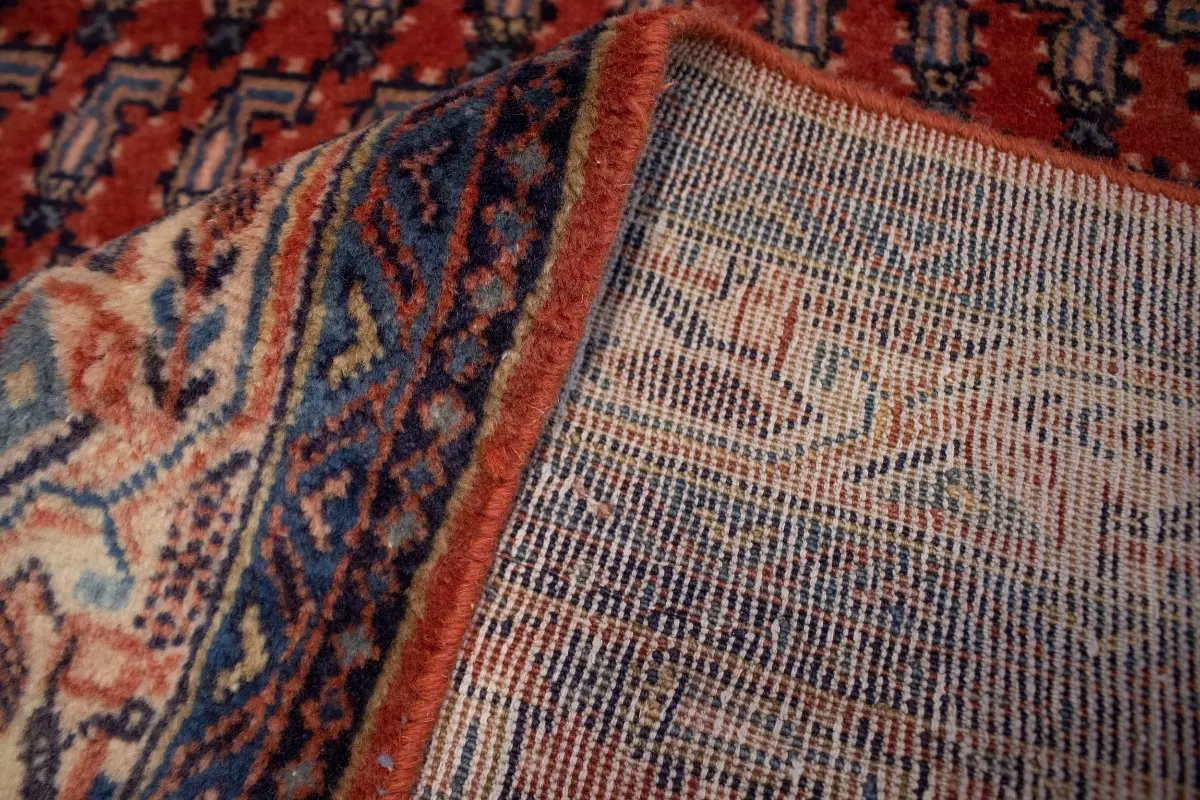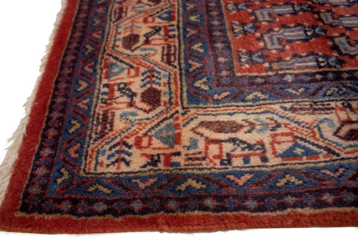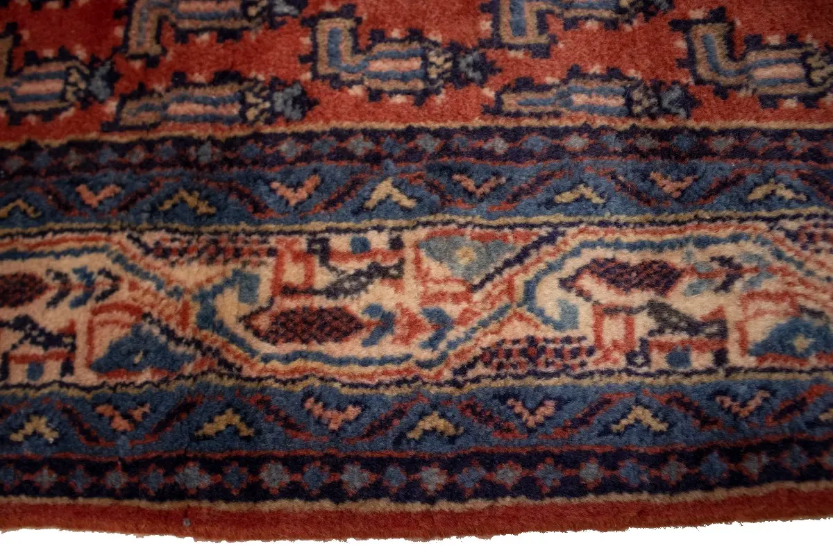 This authentic 4X7 orange-red vintage Persian rug was finely knotted by the hands of weavers influenced by a variety of amazing artistic designs, to recreate the aged look of the exceptional piece with a richness of color and embellished background field. What set this tribal Oriental area rug from the others are the material and dye used (wool pile and cotton foundation), knot count, antique designs, fantastic grades, and its regional historical connection: it has deep roots, from the story of the people who produced it to the meaning of the symbols and colors displayed across its canvas that have been praised for centuries. This home décor carpet will be completely cozy and inviting that never will go out of style! Also, this Oriental rug would be among your most valuable treasures, it is a great investment that increase in value over time, and it will last a lifetime because was woven with high-quality, all-natural wool; it won’t rip, tear, or shed. Eco-friendly, opulent yet affordable; this Persian rug will give you an extra pop of character to help define your home environment with luxury and warmth that will capture the eyes and attention of your audience (homeowners, designers, decorators, family and friends). RT-4002
