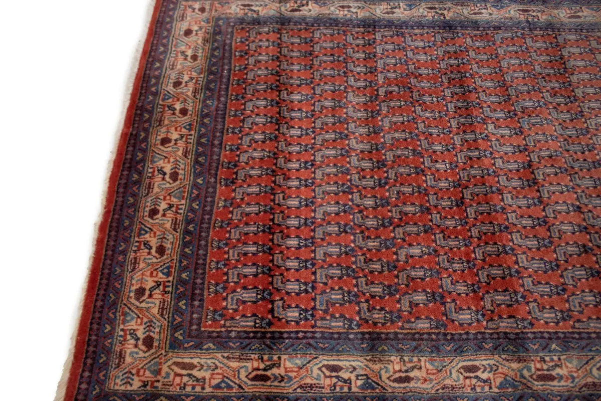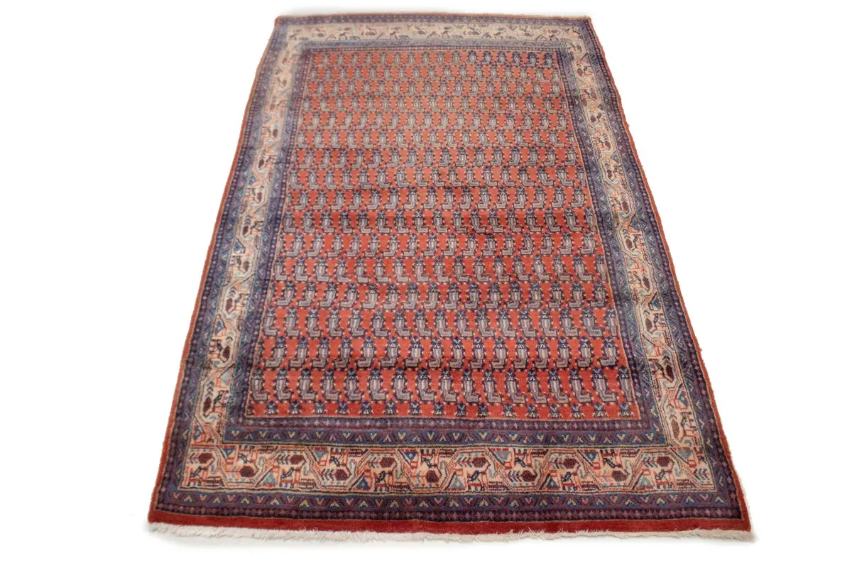 Handmade vintage 4X7 orange-red Persian rug made with natural dyes (fine wool pile and cotton foundation), superior knot count, and appealing ancient designs. This Oriental rug never will go out of style and would be among your most valuable treasures.