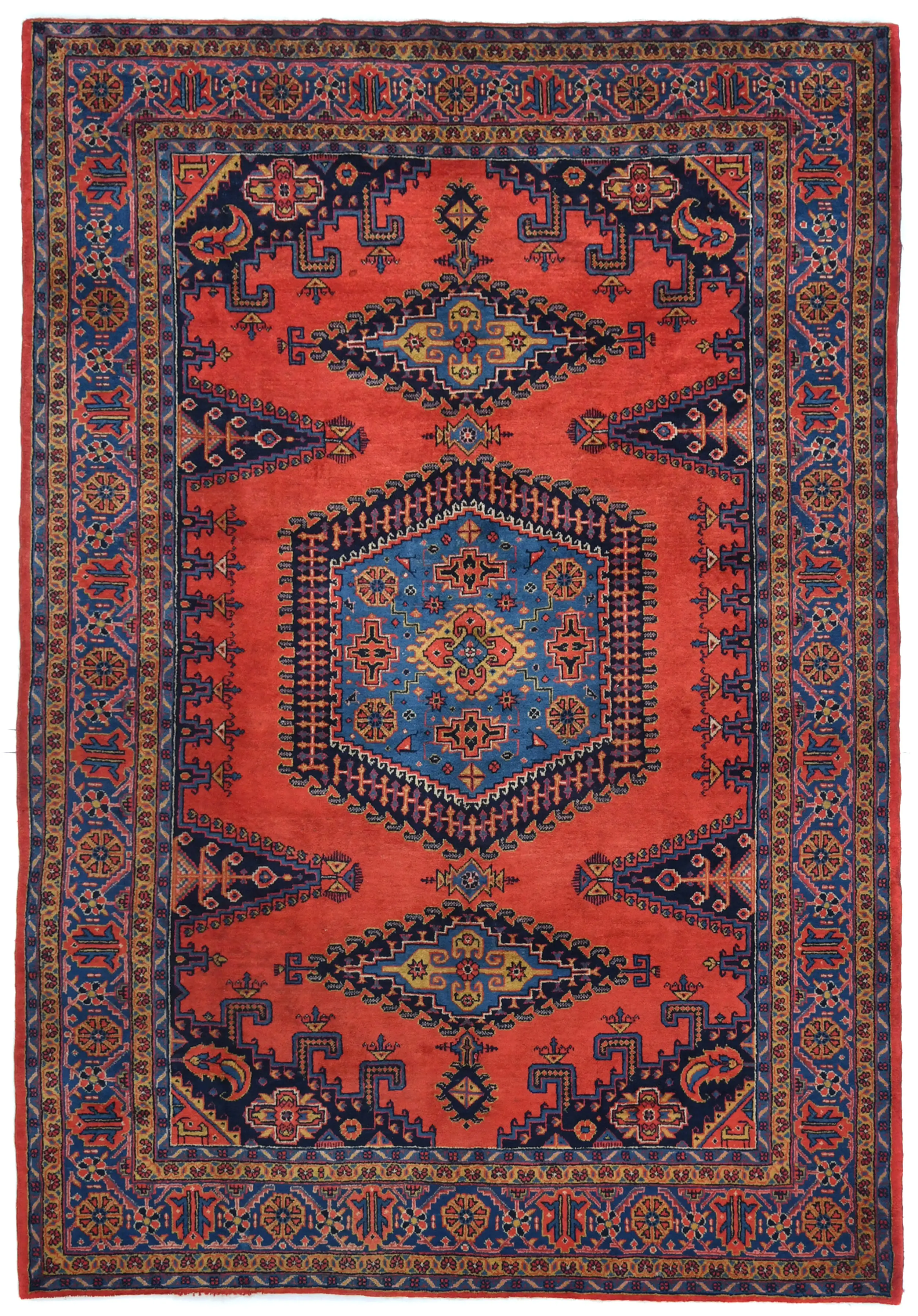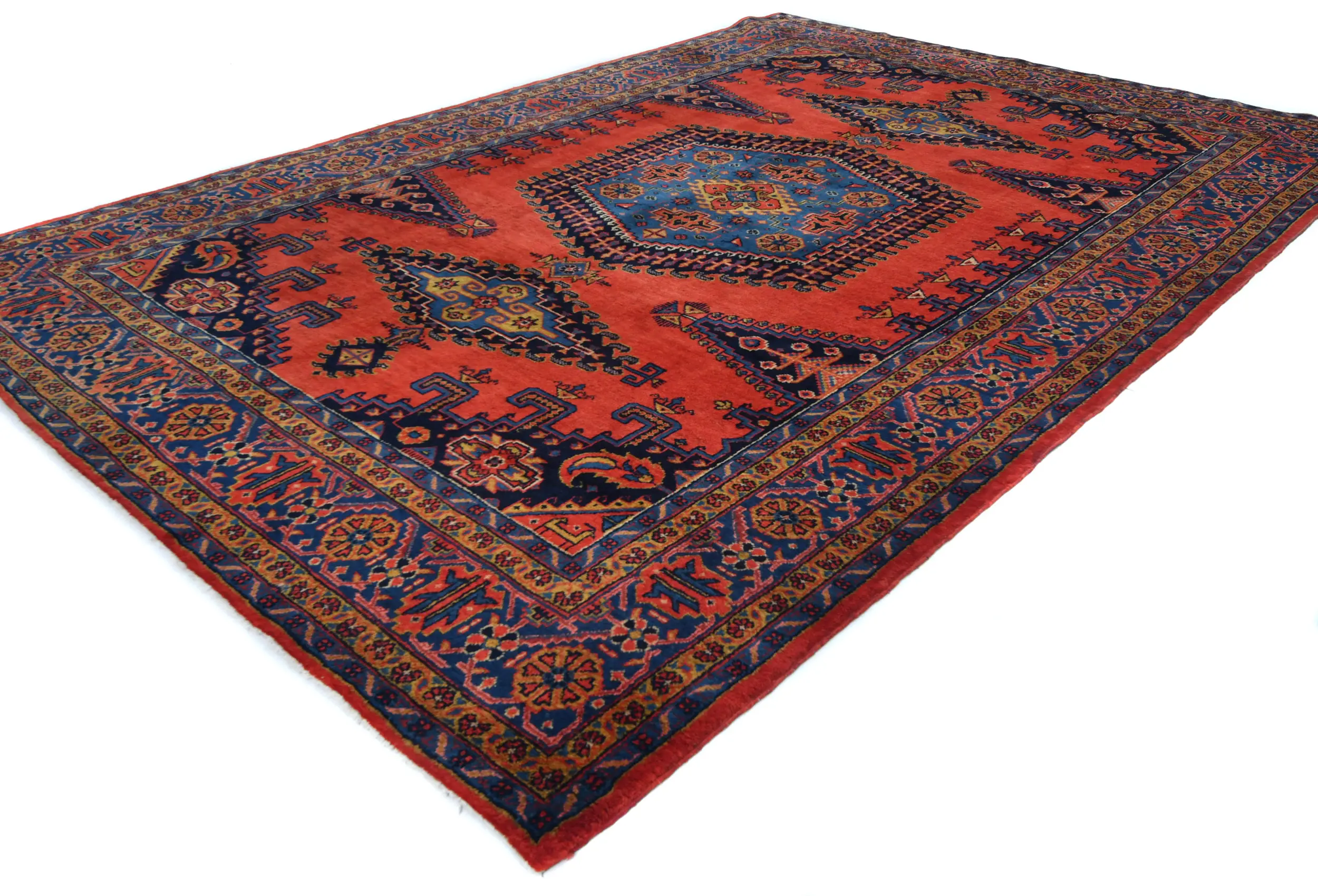 Vintage Orange-red Tribal Geometric 8X11 Viss Persian Rug