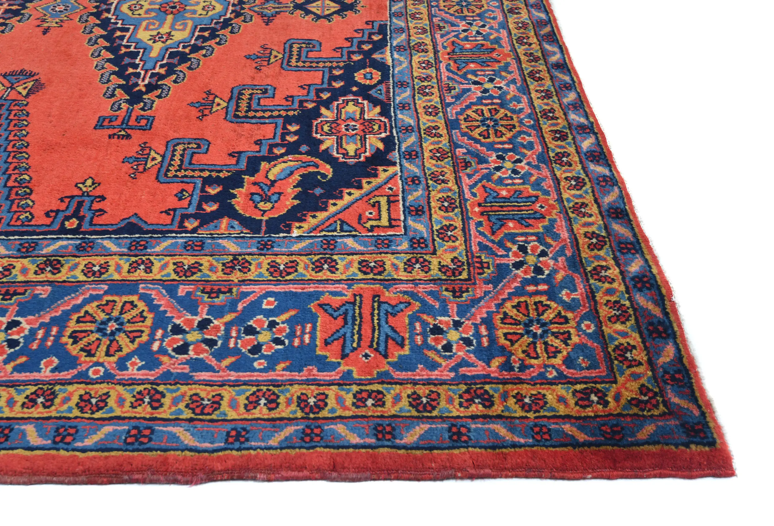This authentic 8X11 orange-red vintage Persian rug was finely knotted by the hands of weavers influenced by a variety of amazing artistic designs, to recreate the aged look of the exceptional piece with a richness of color and embellished floral background field. What set this traditional Oriental area rug from the others are the material and dye used (wool pile and cotton foundation), knot count, antique designs, fantastic grades, and its regional historical connection: it has deep roots, from the story of the people who produced it to the meaning of the symbols and colors displayed across its canvas that have been praised for centuries. This classic home décor carpet will be completely cozy and inviting that never will go out of style! Also, this Oriental rug would be among your most valuable treasures, it is a great investment that increase in value over time, and it will last a lifetime because was woven with high-quality, all-natural wool; it won’t rip, tear, or shed. Eco-friendly, opulent yet affordable; this Persian rug will give you an extra pop of character to help define your home environment with luxury and warmth that will capture the eyes and attention of your audience (homeowners, designers, decorators, family and friends). RT-7609