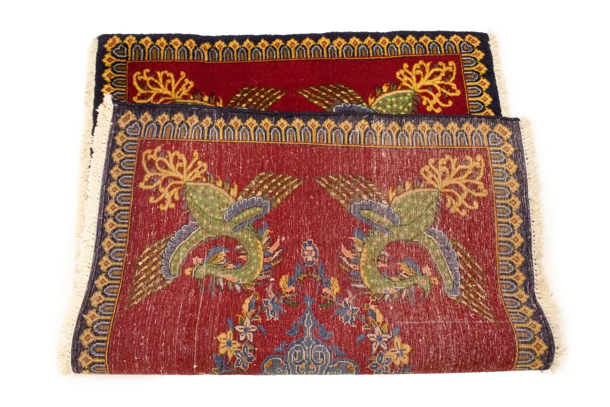 This genuine 2'5X3'8 red vintage Persian rug was made by the hands of gifted weavers inspired by a variety of spectacular artistic designs, to recreate the aged look of the original piece with a richness of color and ornately patterned floral background field. What set this traditional Oriental area rug from the others are the material and dye used (wool pile and cotton foundation), knot count, ancient designs, fantastic grades, and its regional historical connection: it has deep roots, from the story of the people who produced it to the meaning of the symbols and colors displayed across its canvas that have been praised for centuries. This classic home décor carpet will be completely cozy and inviting that never will go out of style! Also, this Oriental rug would be among your most valuable treasures, it is a great investment that accrues value over time, and it will last for generations because was woven with high-quality, all-natural wool; it won’t rip, tear, or shed. Environmentally friendly, opulent yet affordable; this Persian rug will give you a thorough amount of character to help define your living space with elegance and warmth that will capture the eyes and attention of your audience (homeowners, designers, decorators, family and friends). RT-8336