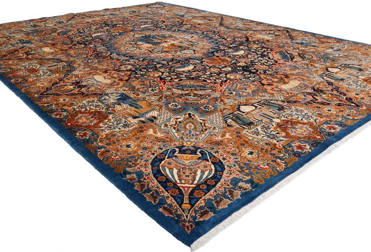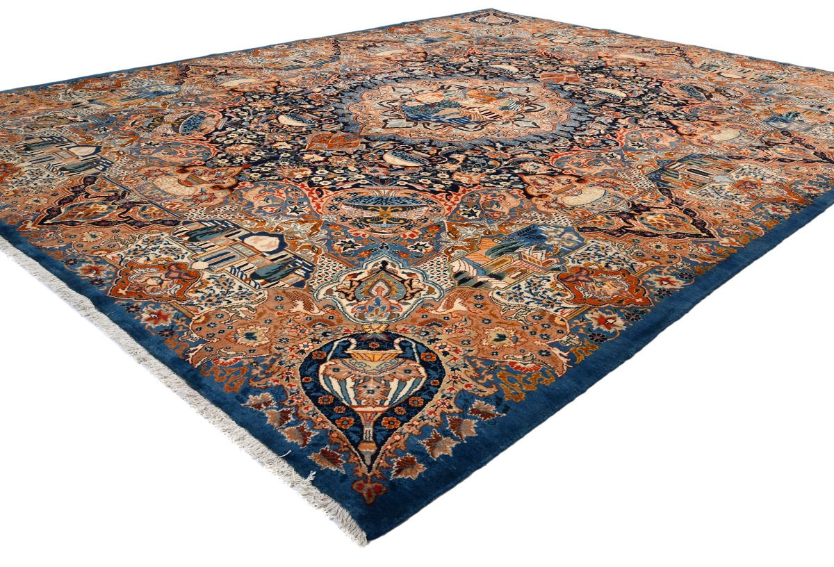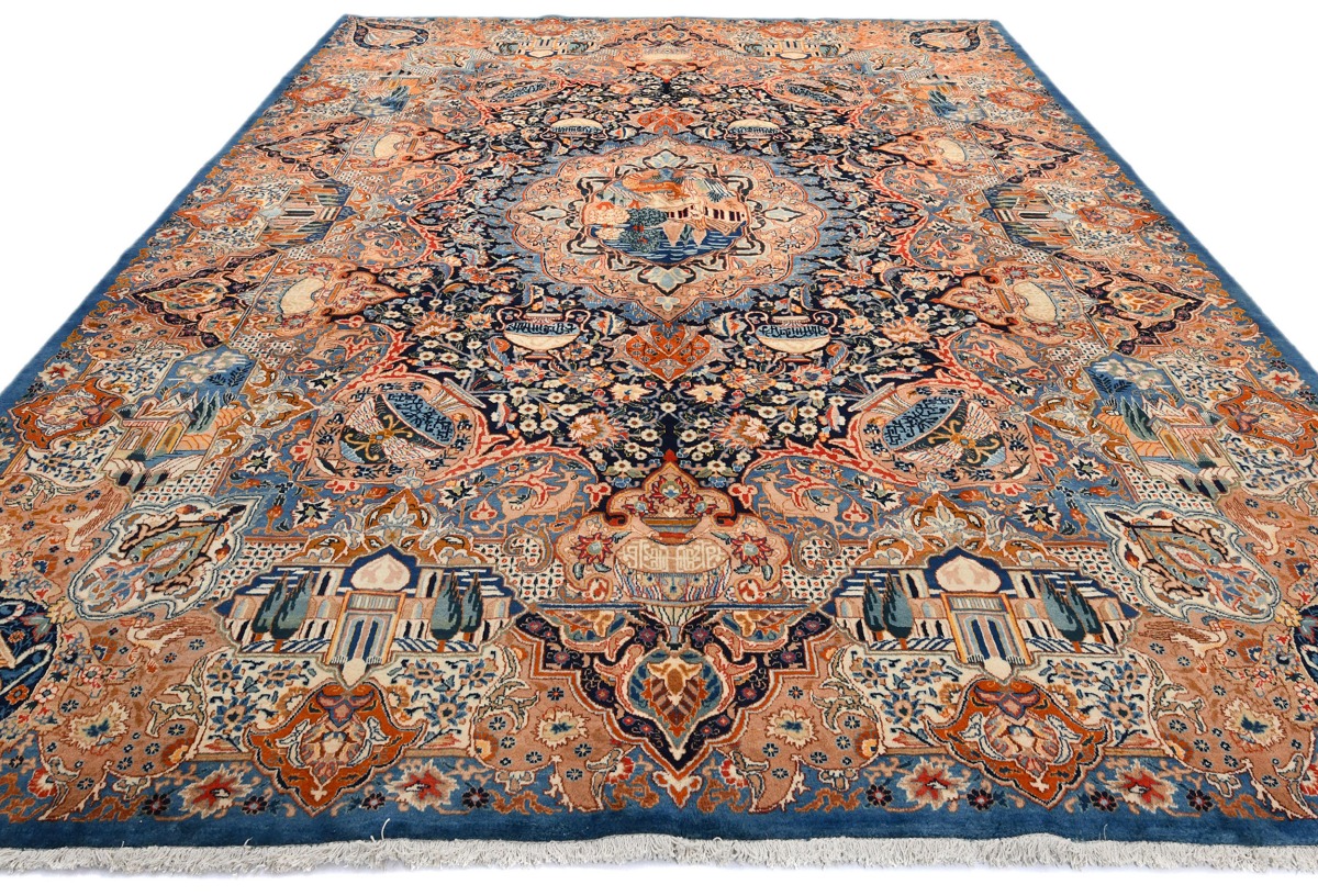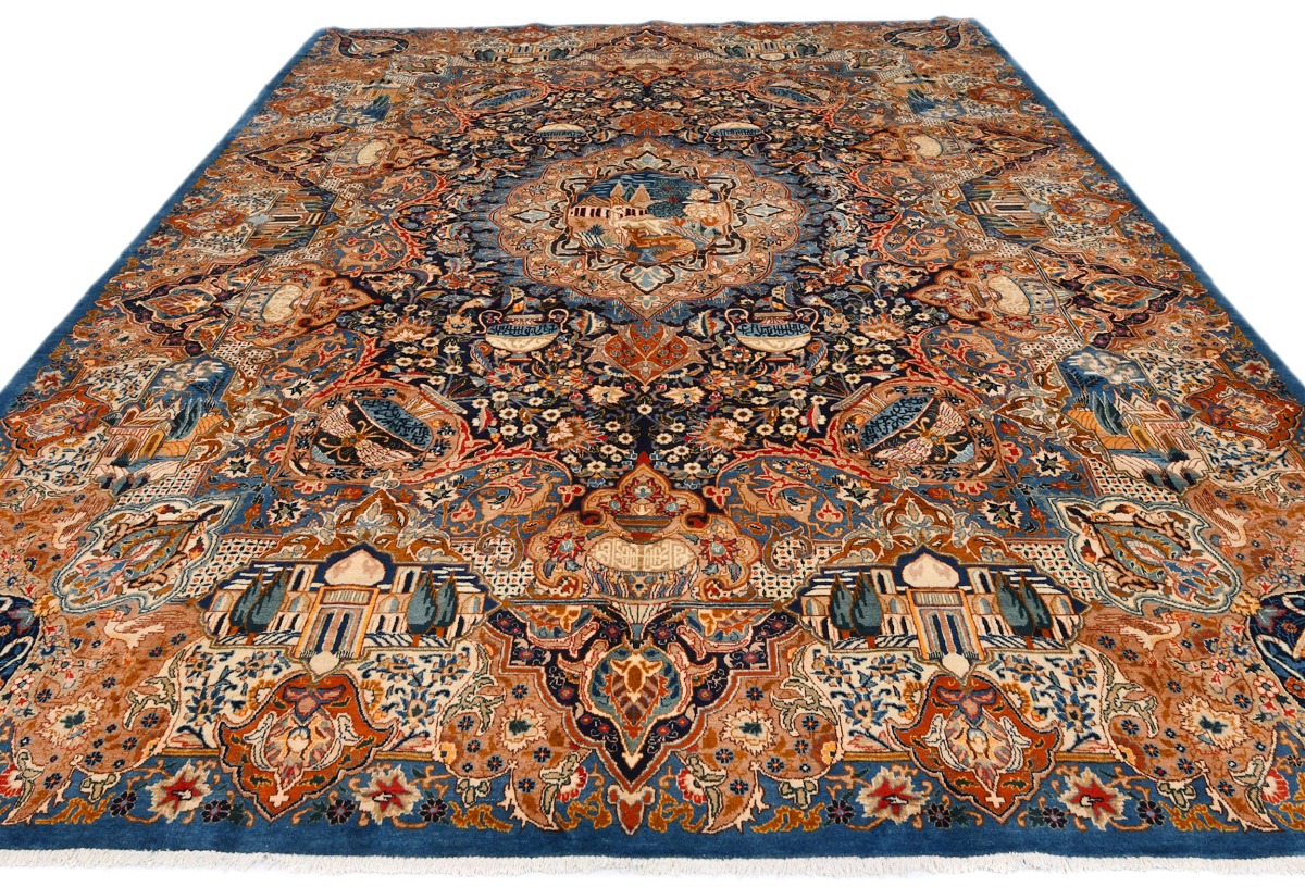 Vintage Pictorial Traditional 10X13 Kashmar Persian Rug