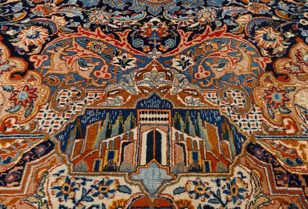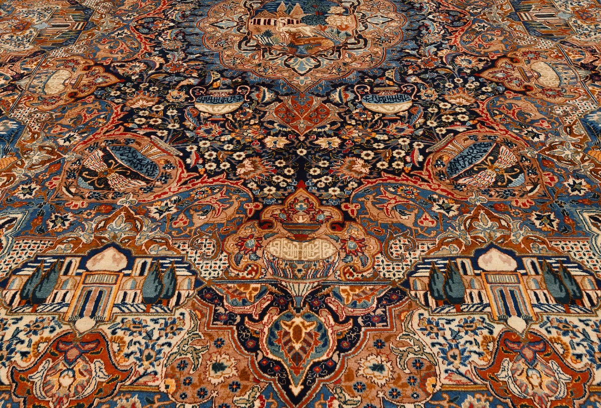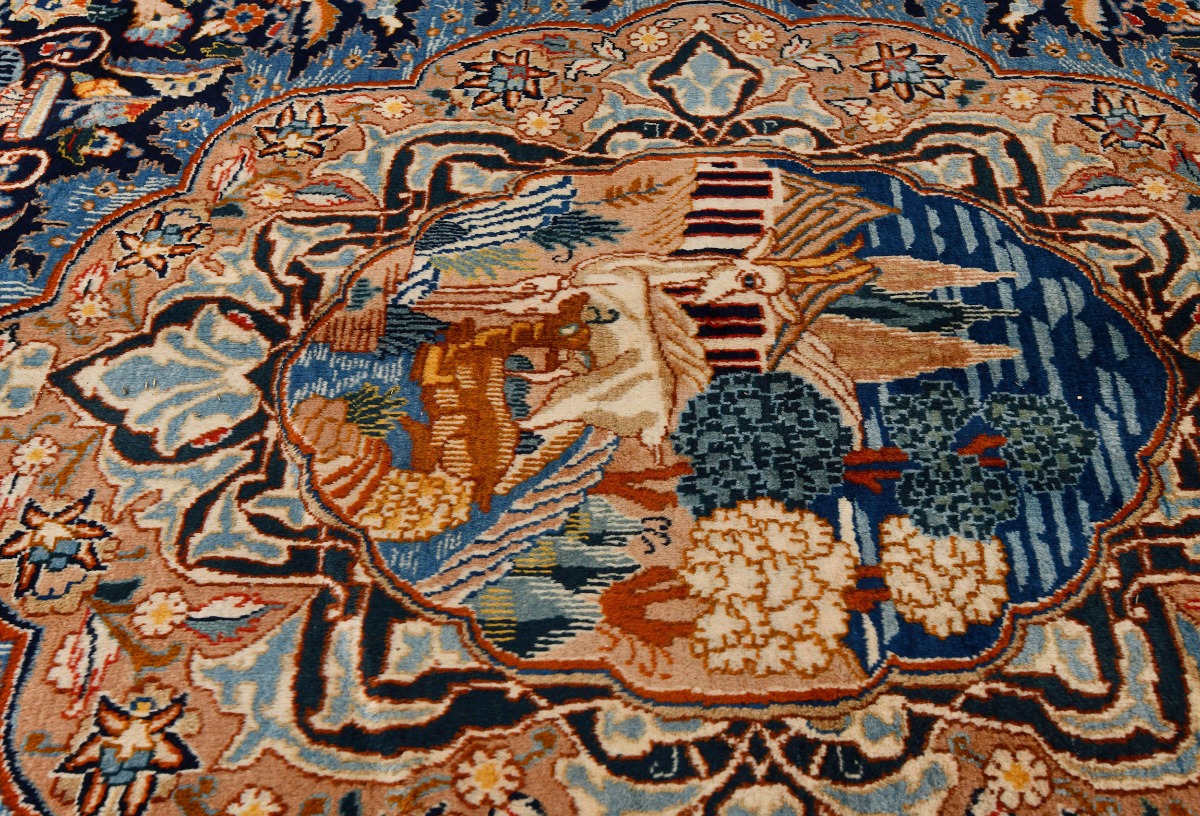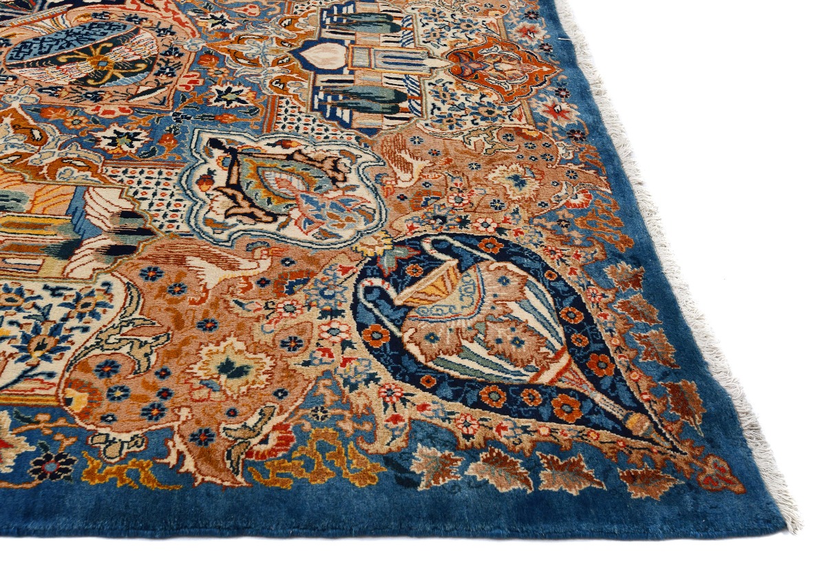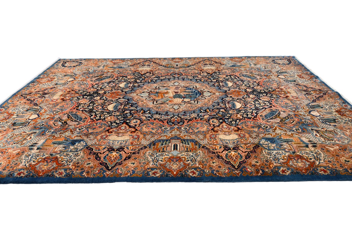 Vintage Pictorial Traditional 10X13 Kashmar Persian Rug