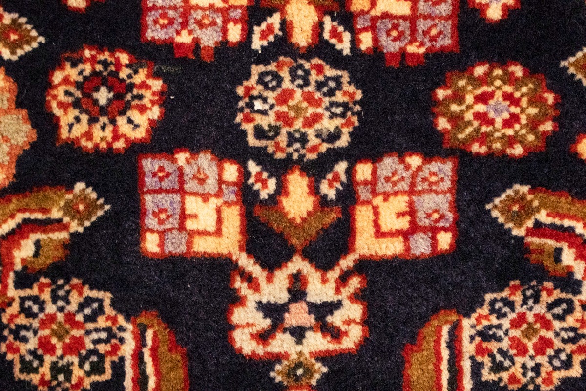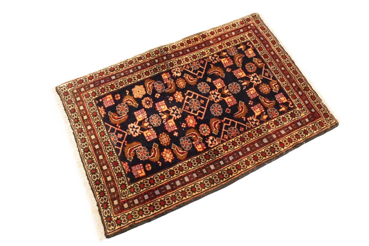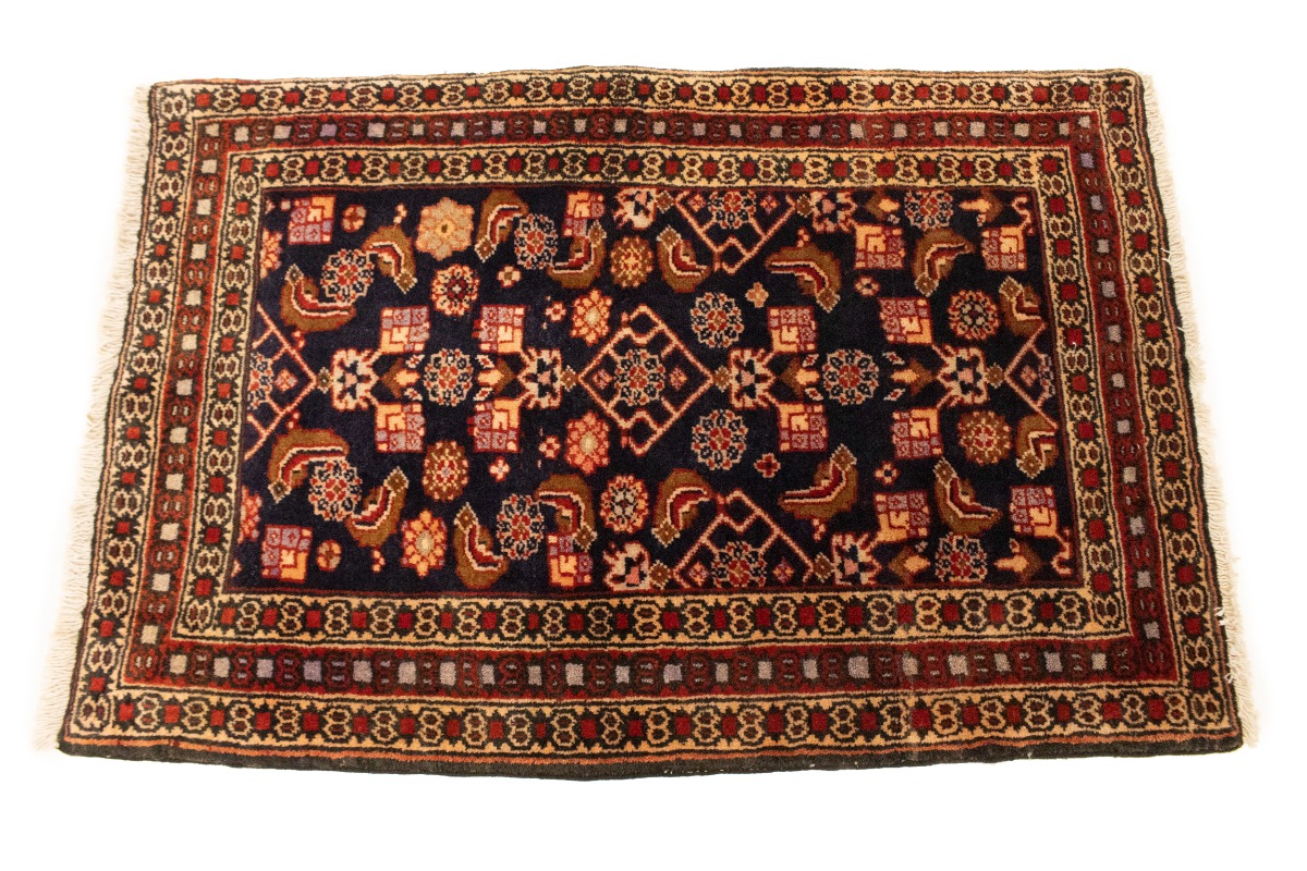 Hand Knotted vintage 2X3 plum Persian rug made with natural dyes (fine wool pile and cotton foundation), superior knot count, and appealing ancient designs. This Oriental rug never will go out of style and would be among your most valuable treasures.