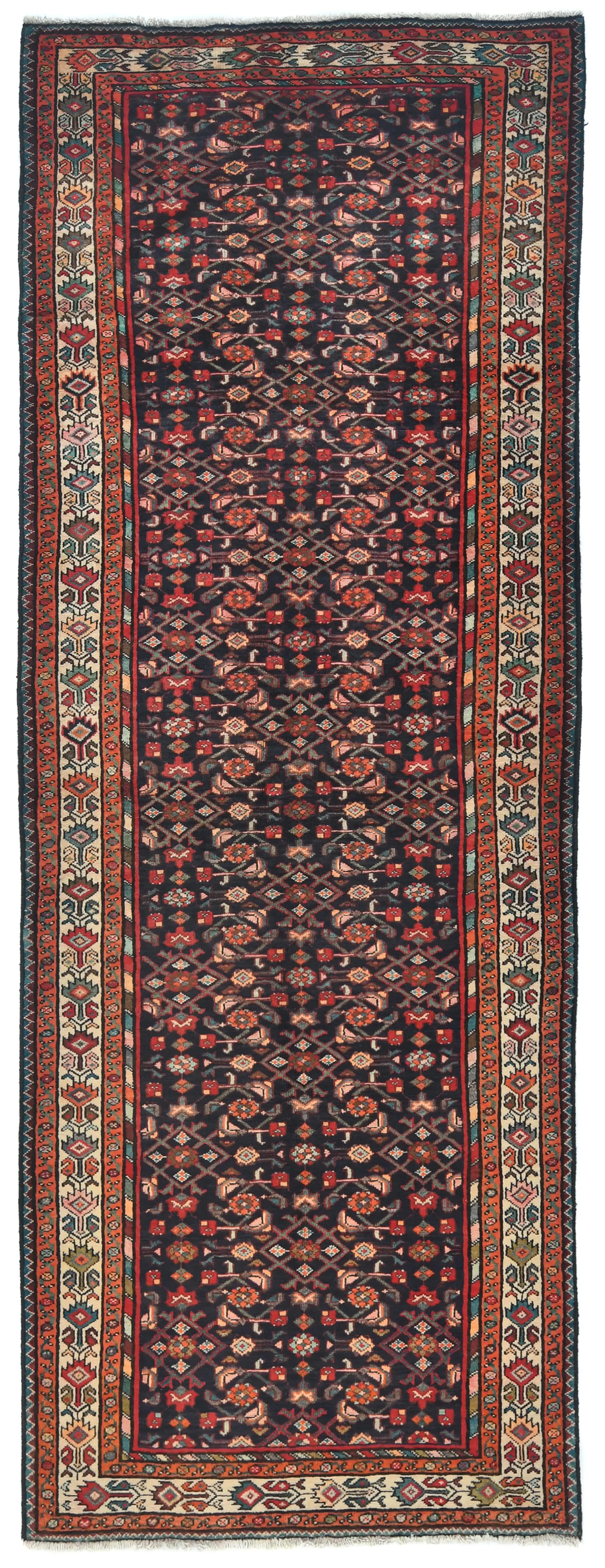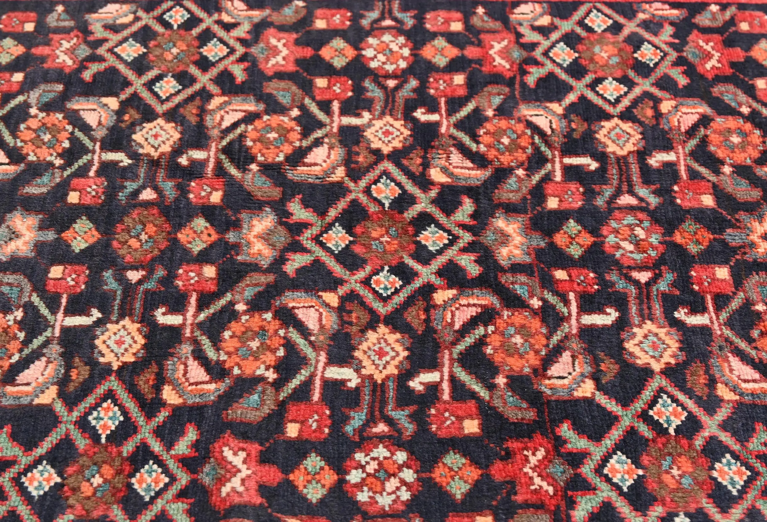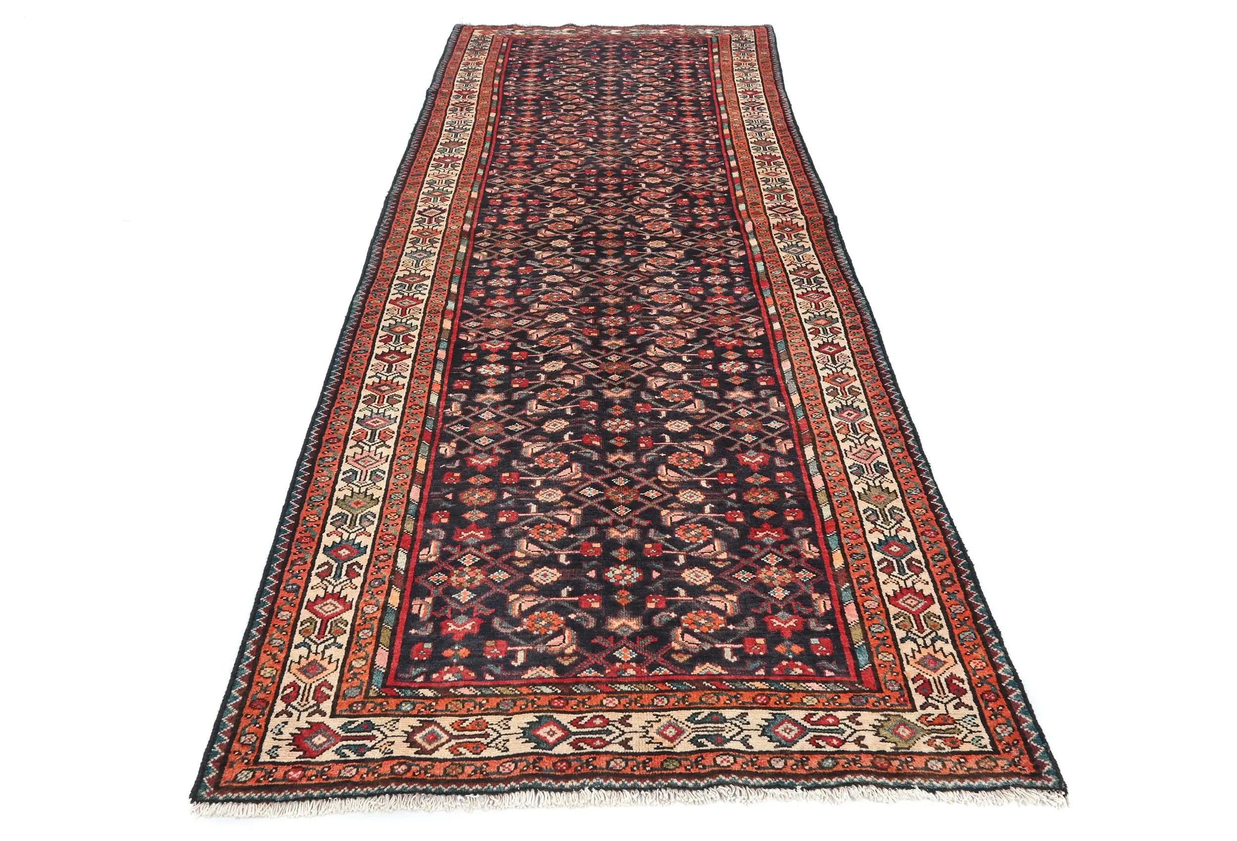 Handmade vintage 4X11 Plum Persian runner made with vegetable dyes (fine wool pile and cotton foundation), exceptional knot count, and appealing ancient designs. This Oriental runner never will go out of style and would be among your most valuable treasures.