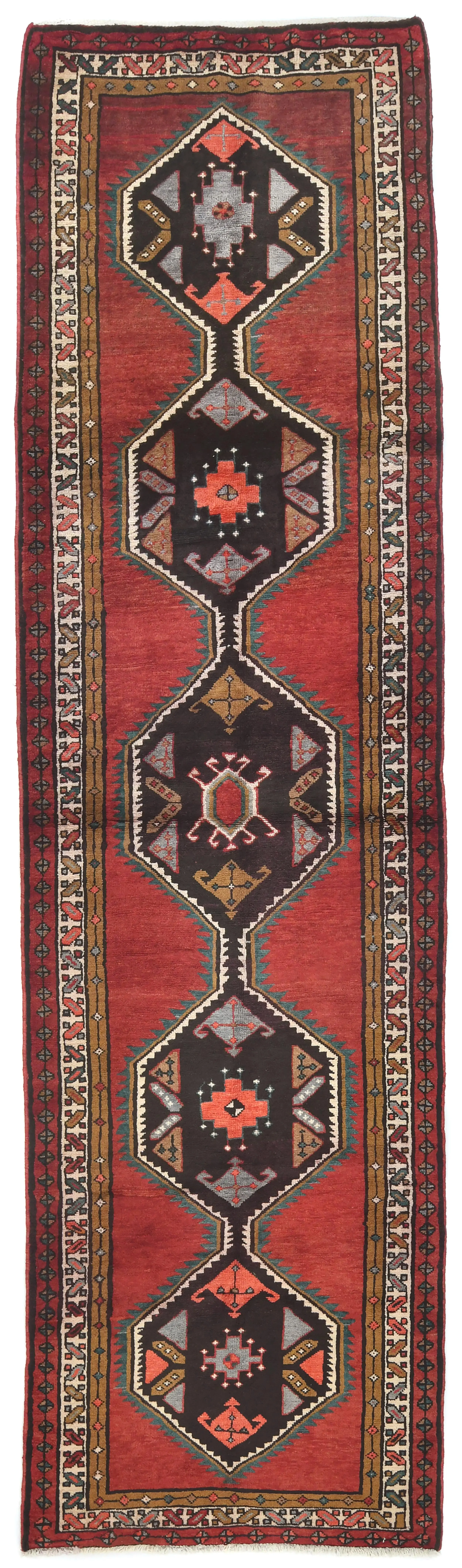 Vintage Plum Geometric Tribal 4X13 Hamedan Persian Runner Rug