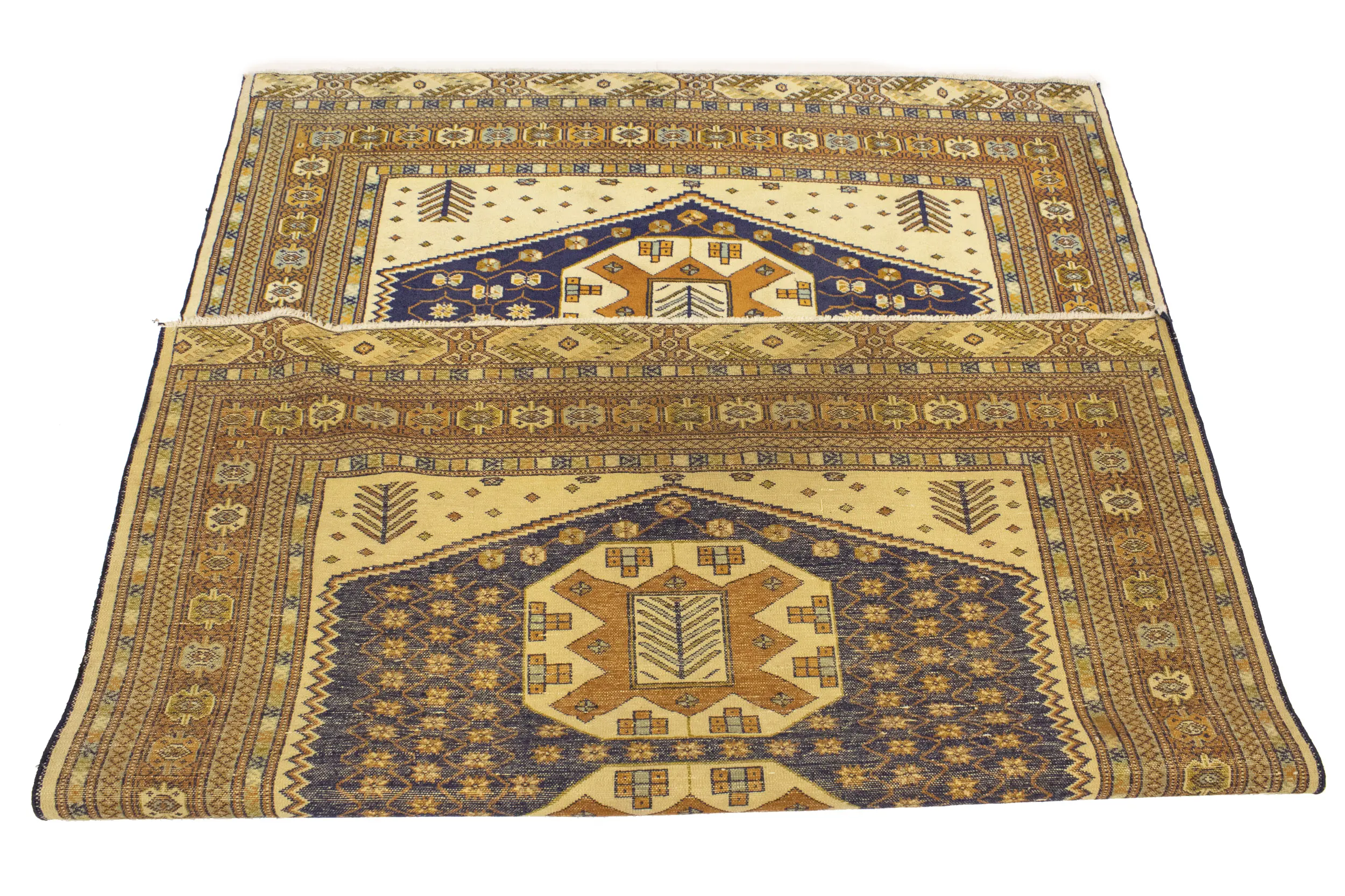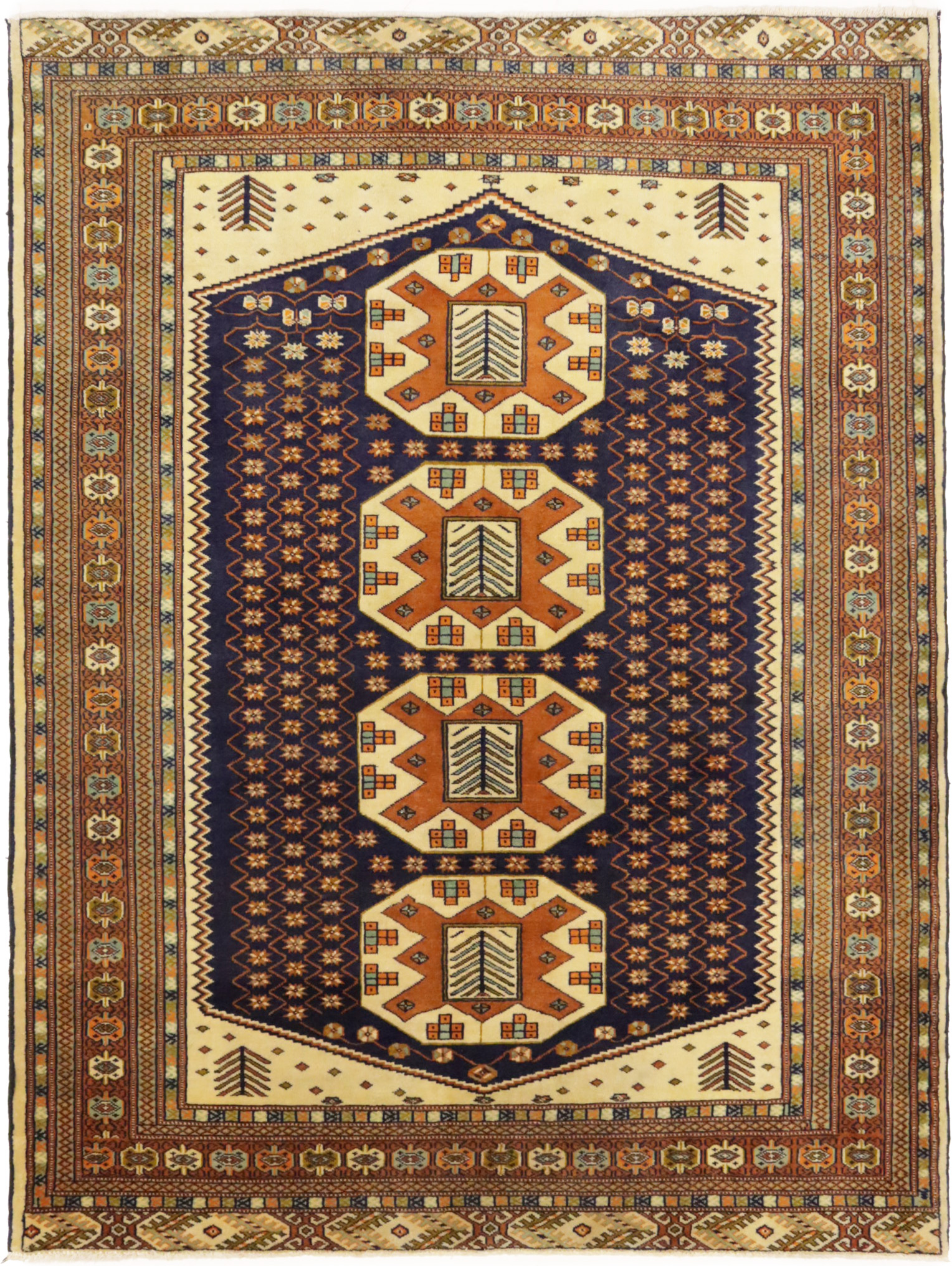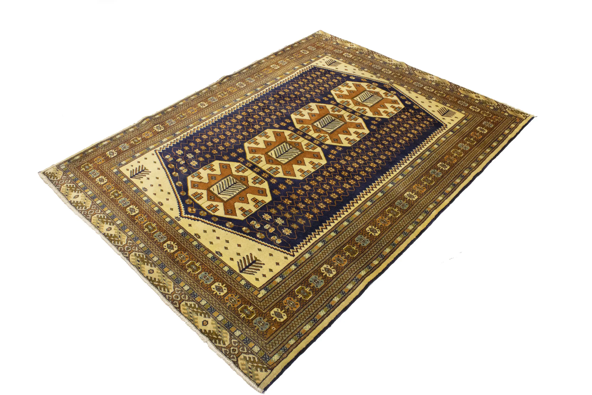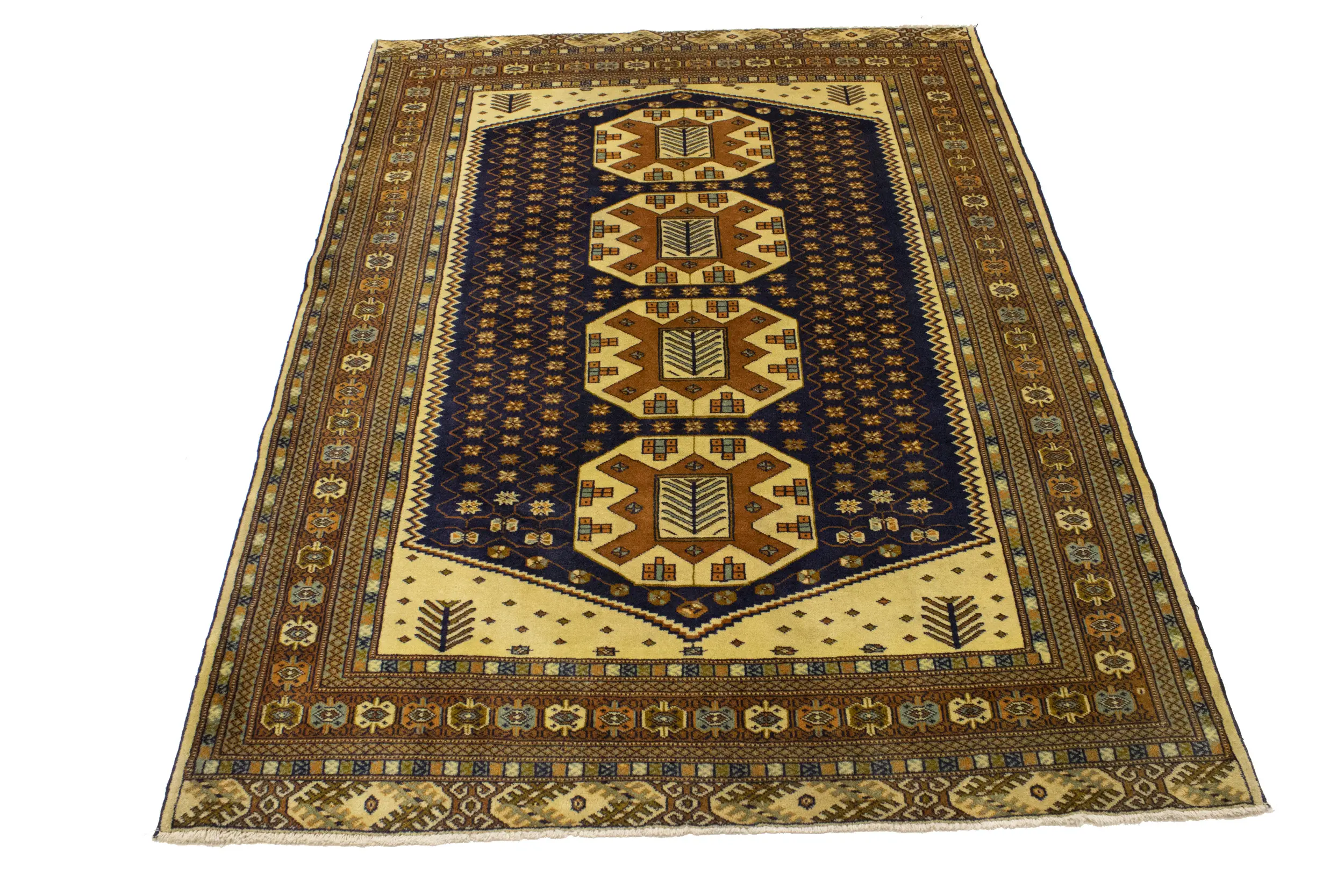 Vintage Plum & Ocher Tribal 5X6 Turkoman Persian Rug
