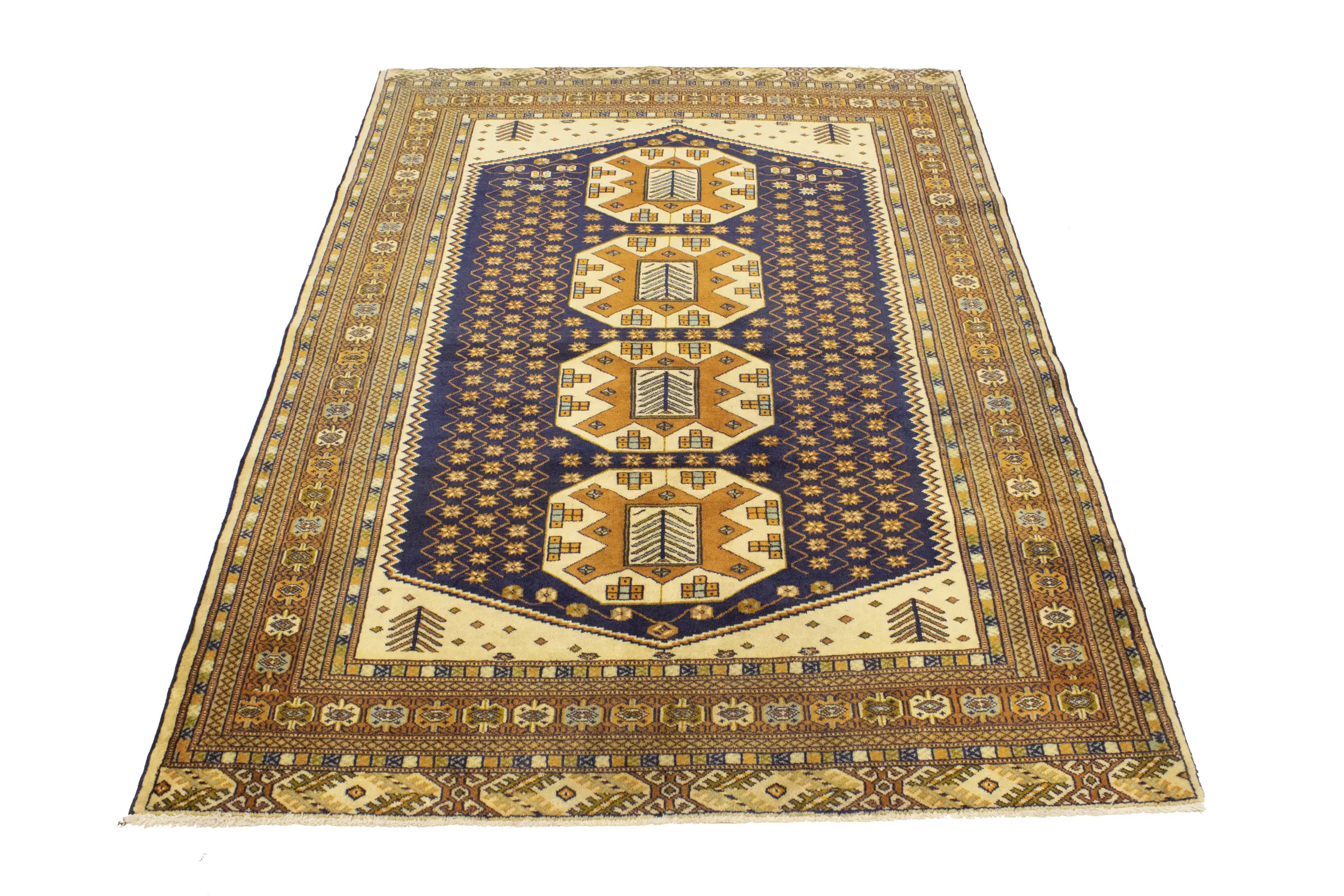 Vintage Plum & Ocher Tribal 5X6 Turkoman Persian Rug
