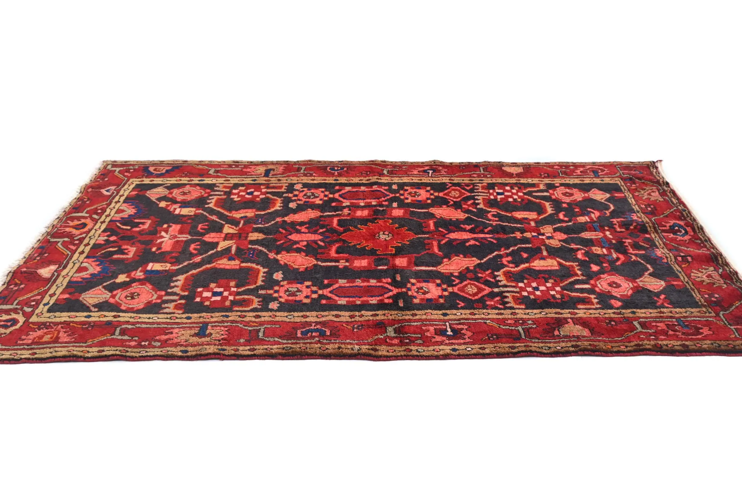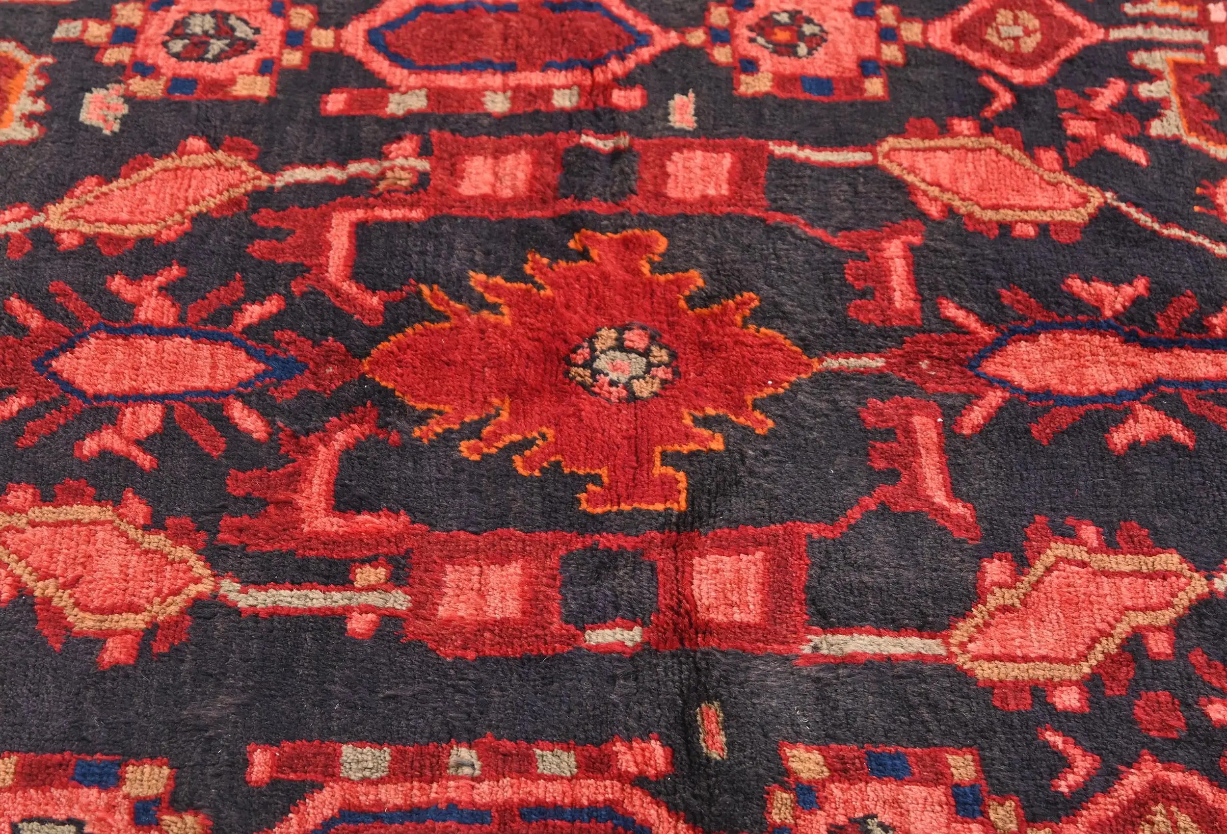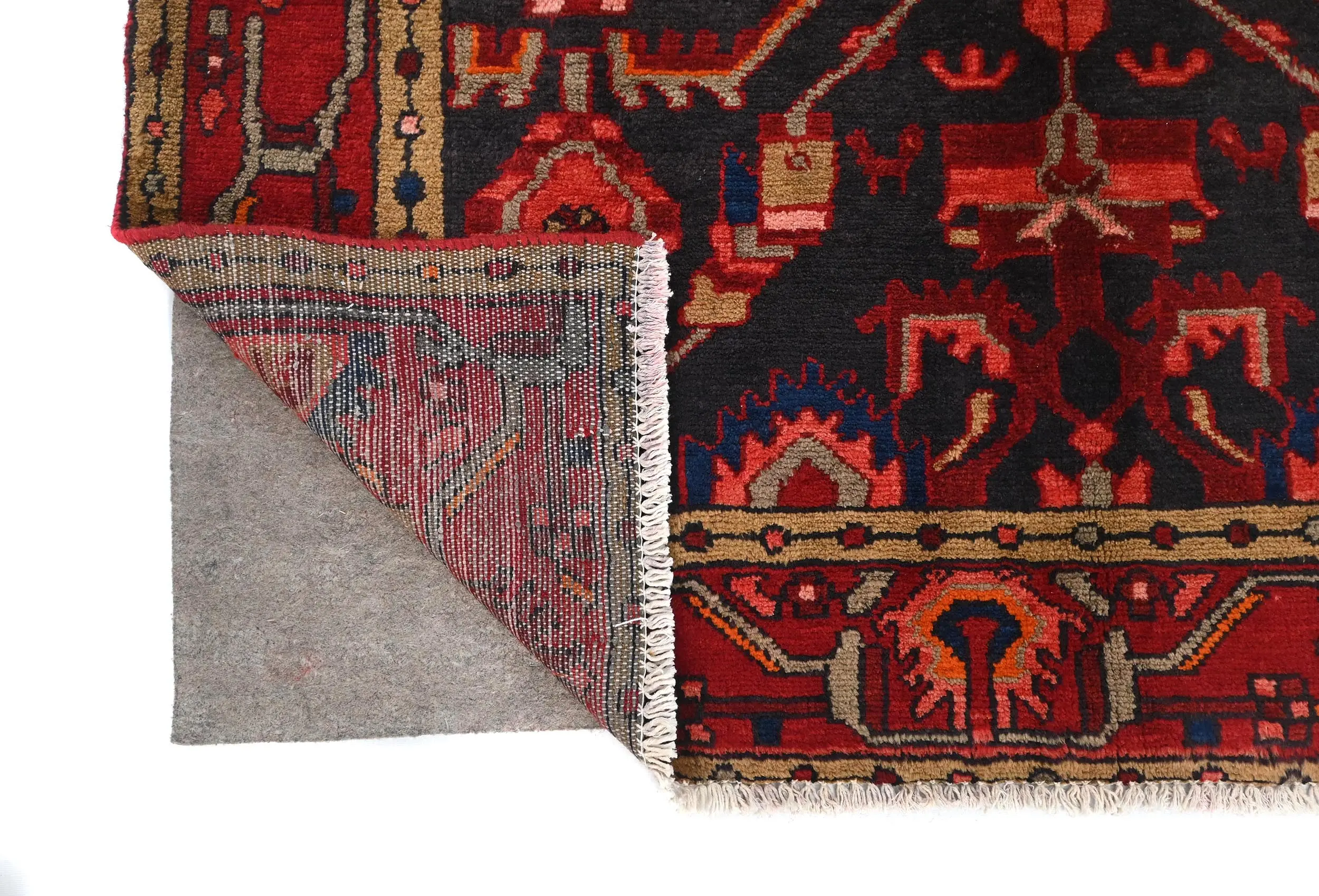 This original 4'6X7'3 red vintage Persian rug was crafted by the hands of skilled weavers enthused by a variety of lovely artistic designs, to recreate the aged look of the unique piece with a richness of color and beautifully elaborated background field. What set this tribal Oriental area rug from the others are the material and dye used (wool pile and cotton foundation), knot count, ancient designs, fantastic grades, and its regional historical connection: it has deep roots, from the story of the people who produced it to the meaning of the symbols and colors displayed across its canvas that have been praised for centuries. This home décor carpet will be completely cozy and inviting that never will go out of style! Also, this Oriental rug would be among your most valuable treasures, it is a great investment that increase in value over time, and it will last for generations because was woven with high-quality, all-natural wool; it won’t rip, tear, or shed. Environmentally friendly, opulent yet affordable; this Persian rug will give you a thorough amount of character to help define your living space with sophistication and warmth that will capture the eyes and attention of your audience (homeowners, designers, decorators, family and friends). RT-7185