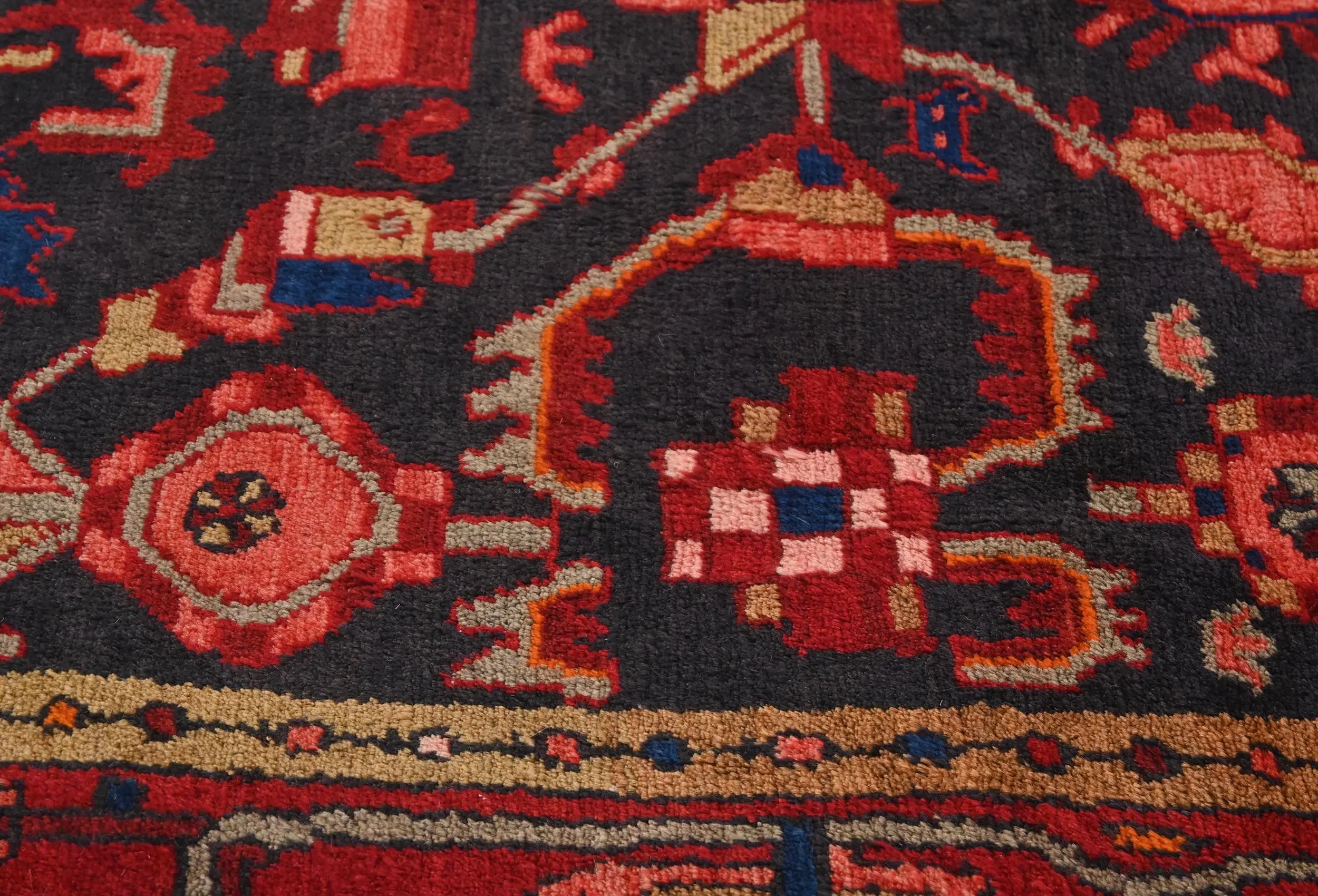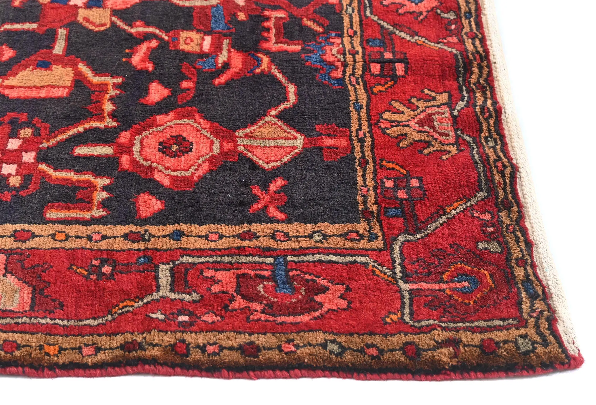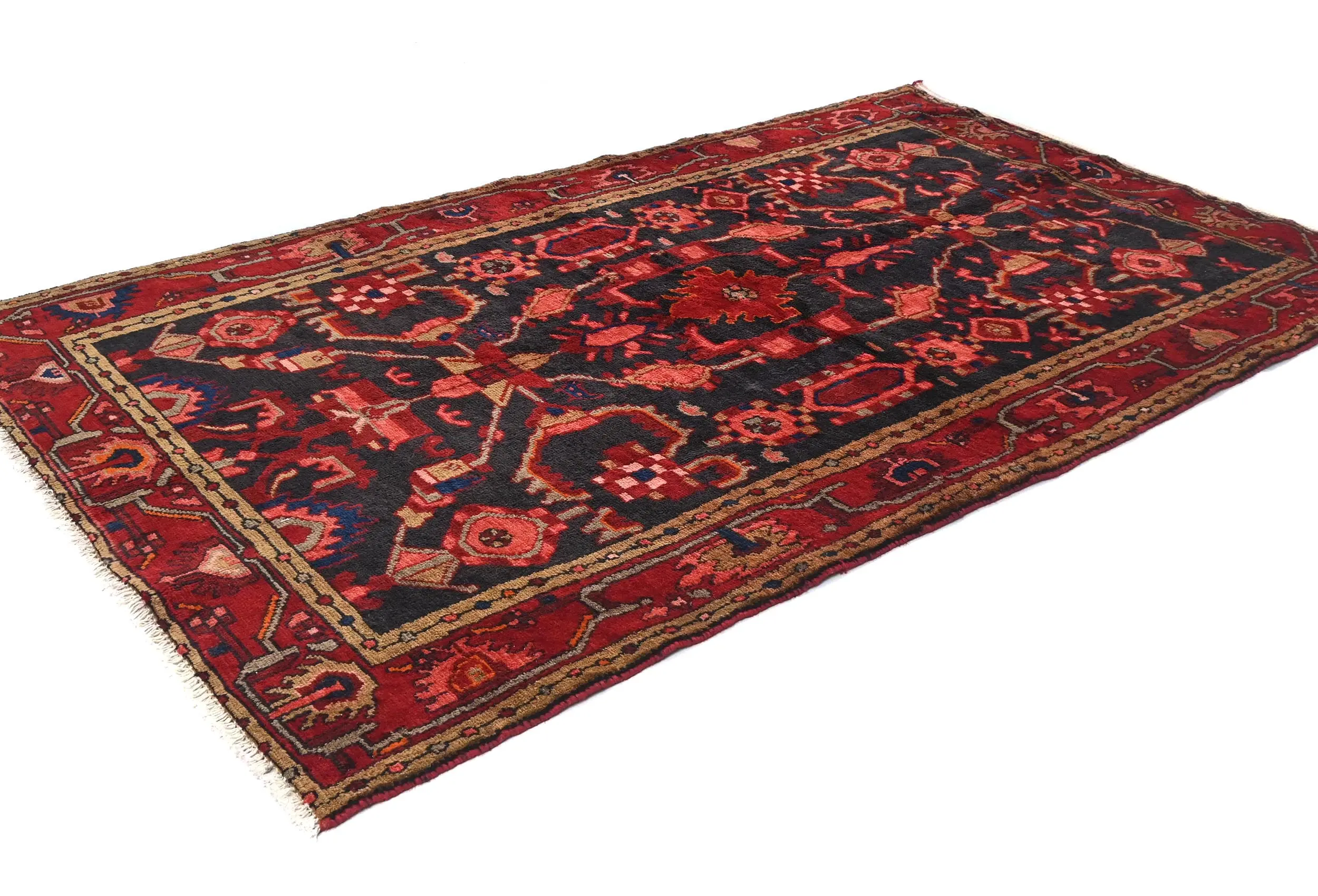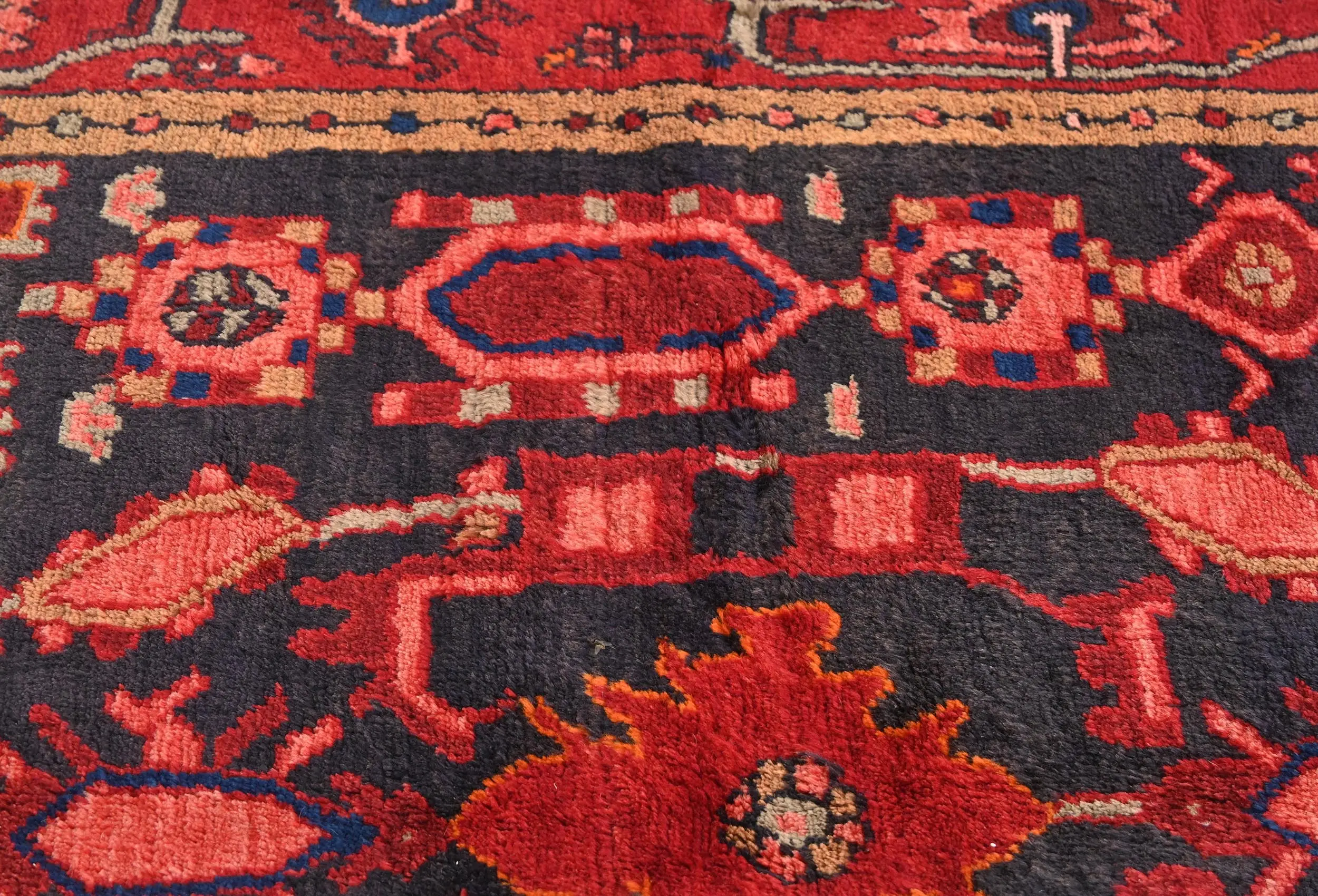 This original 4'6X7'3 red vintage Persian rug was crafted by the hands of skilled weavers enthused by a variety of lovely artistic designs, to recreate the aged look of the unique piece with a richness of color and beautifully elaborated background field. What set this tribal Oriental area rug from the others are the material and dye used (wool pile and cotton foundation), knot count, ancient designs, fantastic grades, and its regional historical connection: it has deep roots, from the story of the people who produced it to the meaning of the symbols and colors displayed across its canvas that have been praised for centuries. This home décor carpet will be completely cozy and inviting that never will go out of style! Also, this Oriental rug would be among your most valuable treasures, it is a great investment that increase in value over time, and it will last for generations because was woven with high-quality, all-natural wool; it won’t rip, tear, or shed. Environmentally friendly, opulent yet affordable; this Persian rug will give you a thorough amount of character to help define your living space with sophistication and warmth that will capture the eyes and attention of your audience (homeowners, designers, decorators, family and friends). RT-7185