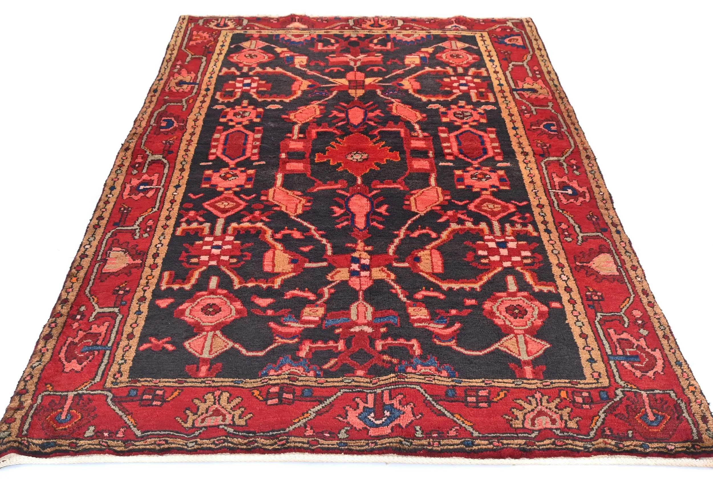Vintage Purple Floral Tribal 4'6X7'3 Hamedan Persian Rug