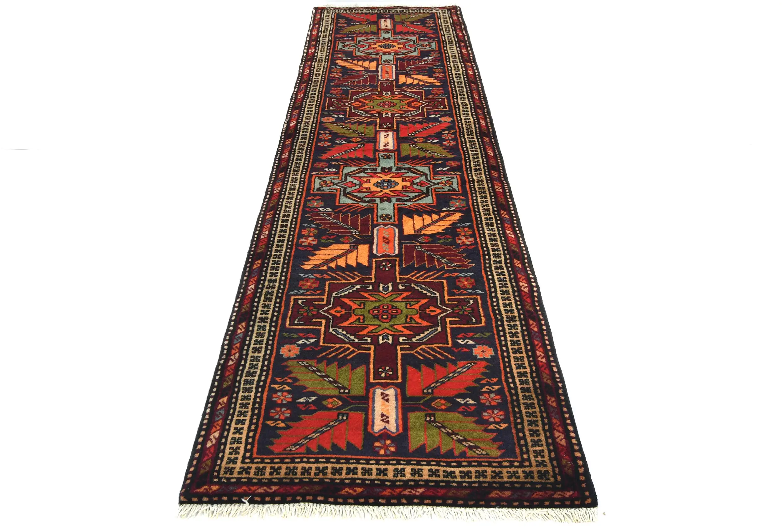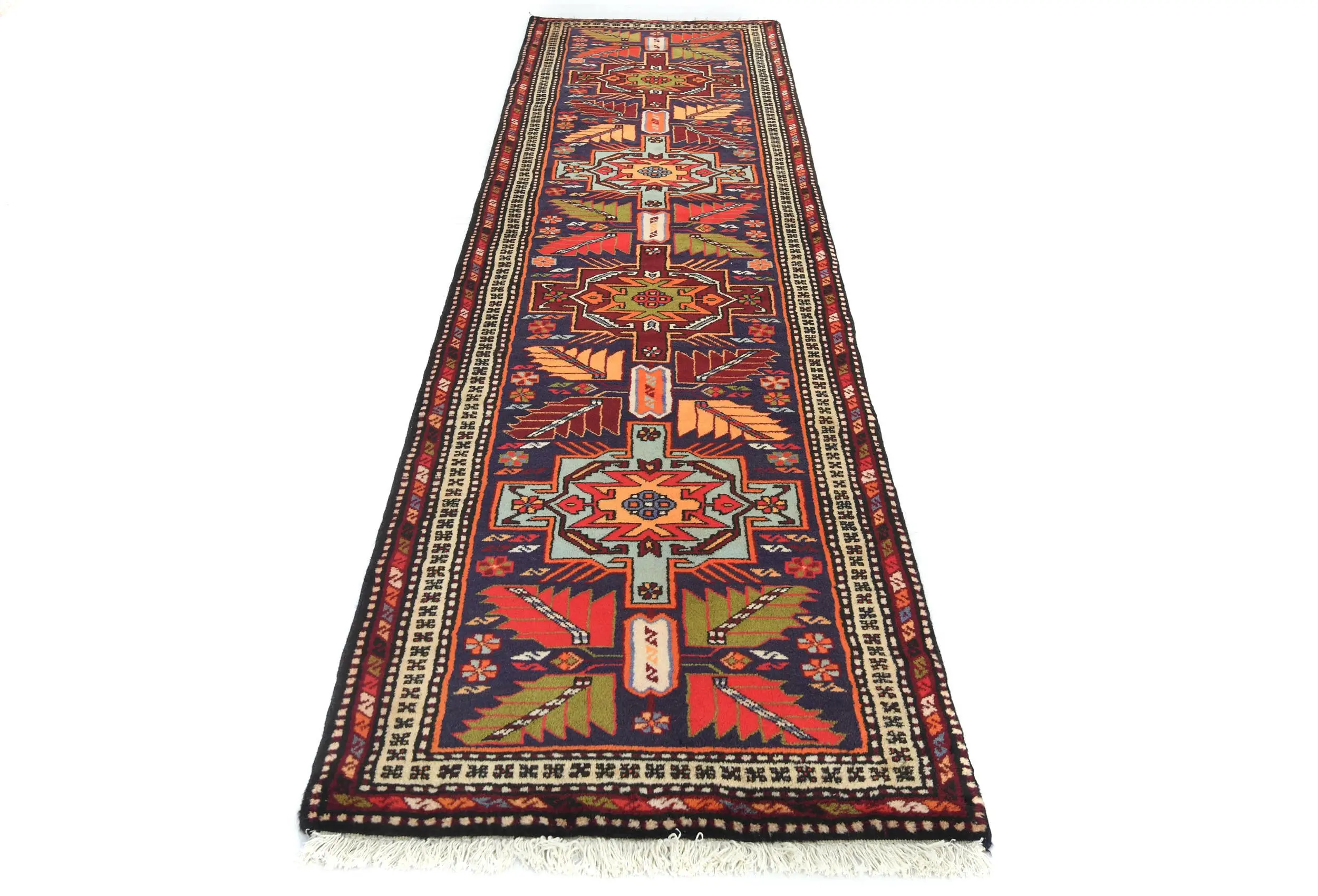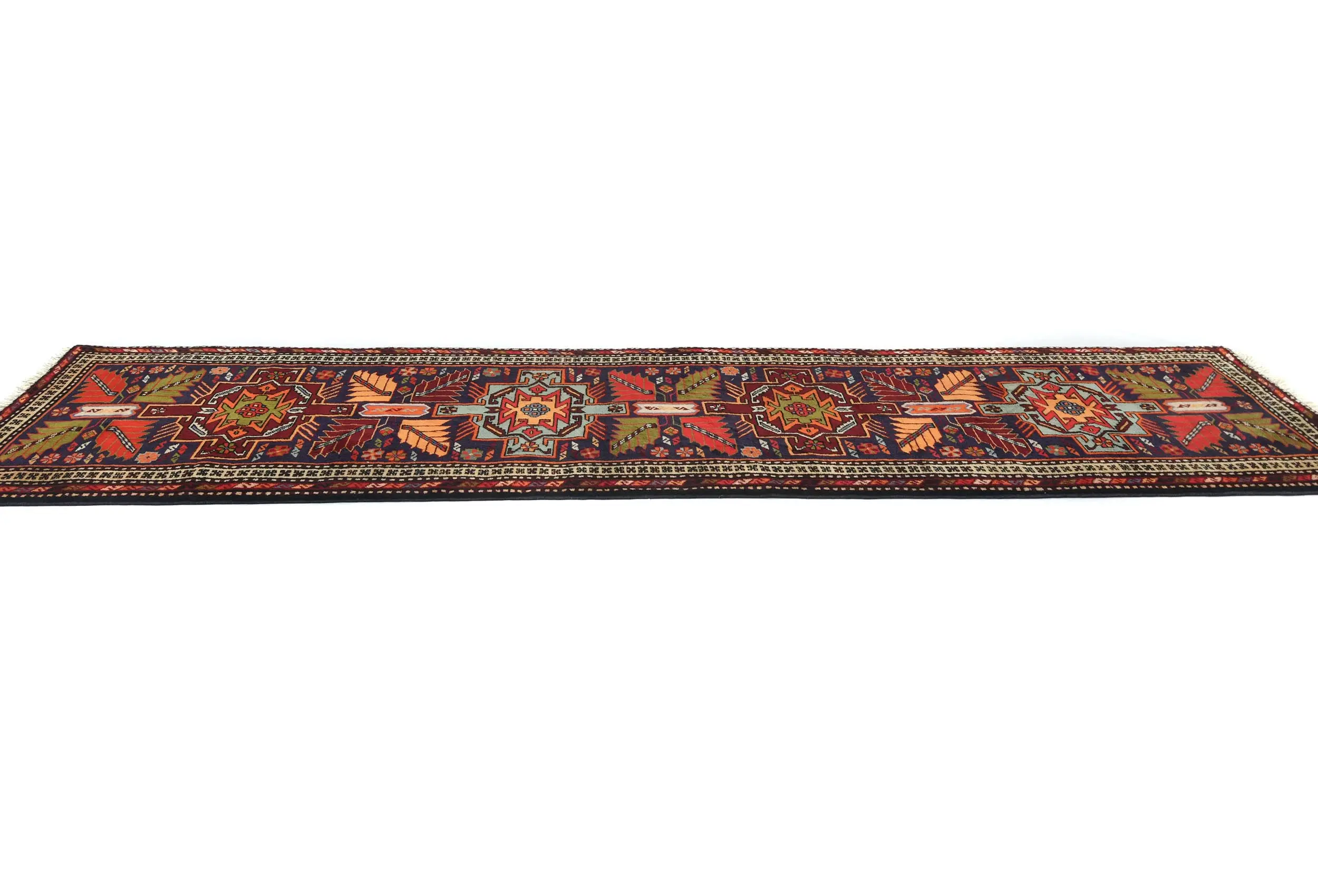 Handmade Vintage 2'6X9'7 purple Persian Runner rug made with vegetable dyes (fine wool pile and cotton foundation), superior knot count, and appealing ancient designs. This Oriental rug never will go out of style and would be among your most valuable treasures.