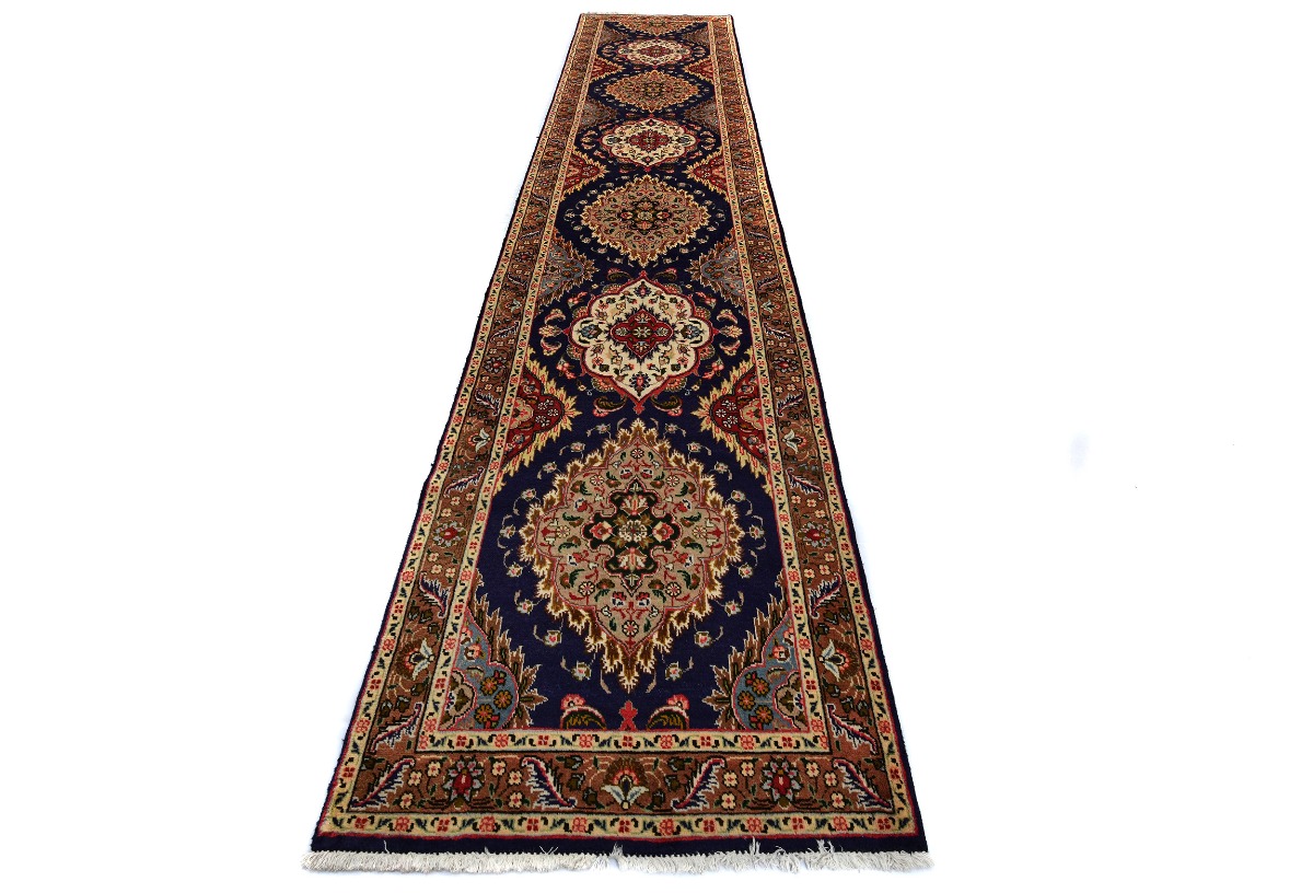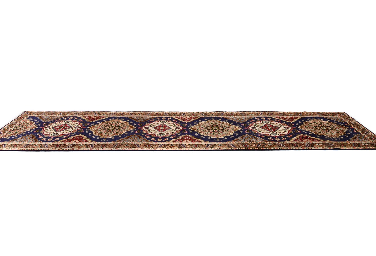 This authentic 3X16 purple-navy vintage Persian runner was finely knotted by the hands of weavers influenced by a variety of amazing artistic designs, to recreate the aged look of the exceptional piece with a richness of color and embellished floral background field. What set this traditional Oriental area runner from the others are the material and dye used (wool pile and cotton foundation), knot count, antique designs, fantastic grades, and its regional historical connection: it has deep roots, from the story of the people who produced it to the meaning of the symbols and colors displayed across its canvas that have been praised for centuries. This classic home décor carpet will be completely cozy and inviting that never will go out of style! Also, this Oriental runner would be among your most valuable treasures, it is a great investment that increase in value over time, and it will last a lifetime because was woven with high-quality, all-natural wool; it won’t rip, tear, or shed. Eco-friendly, opulent yet affordable; this Persian rug will give you an extra pop of character to help define your home environment with luxury and warmth that will capture the eyes and attention of your audience (homeowners, designers, decorators, family and friends). RT-5913