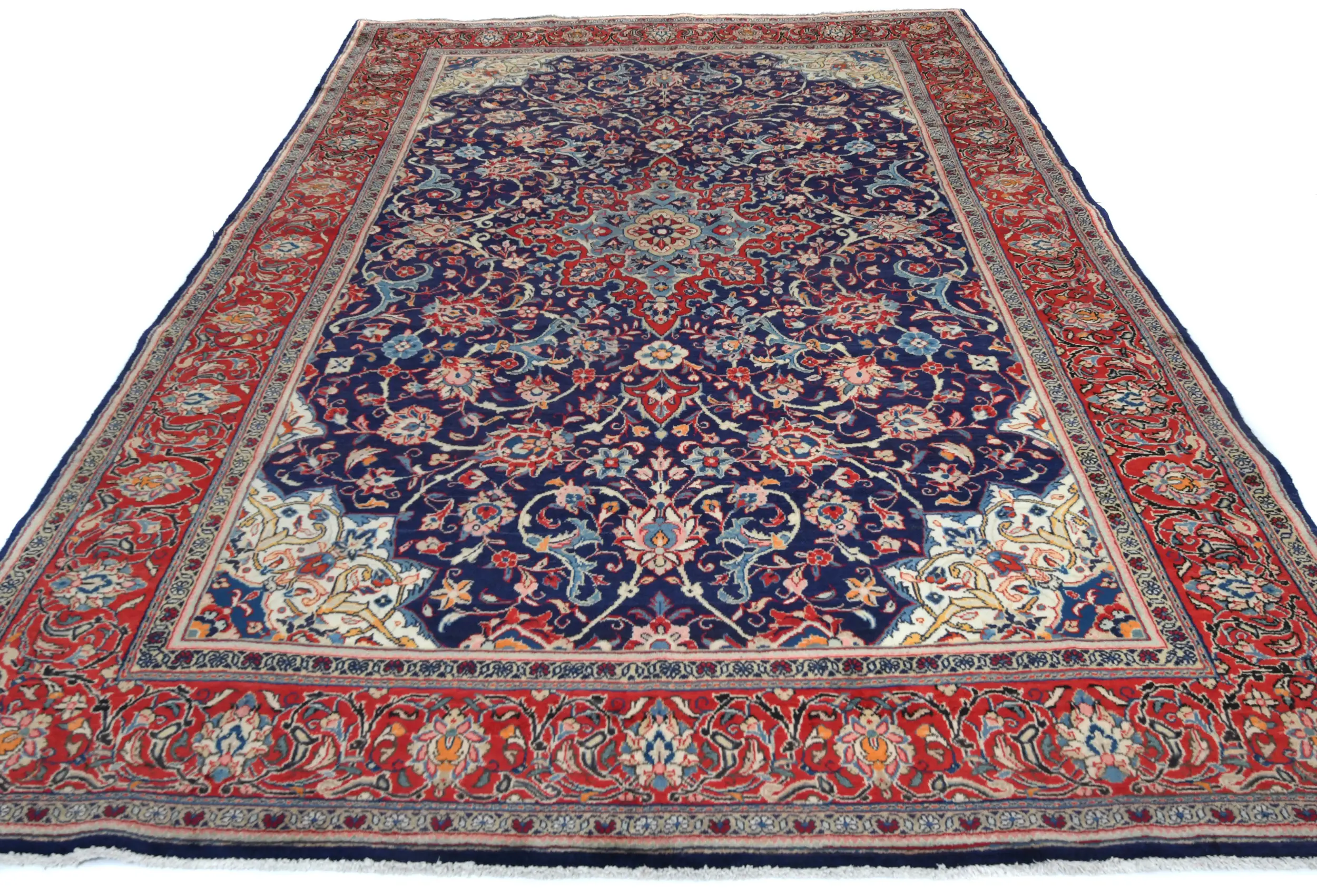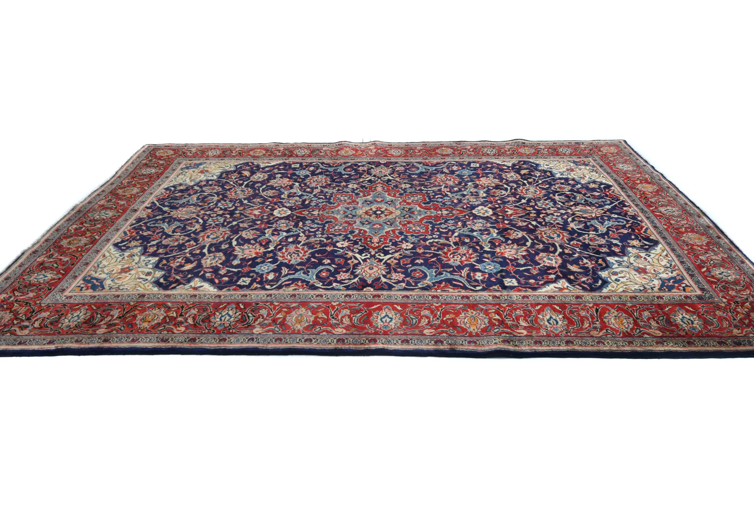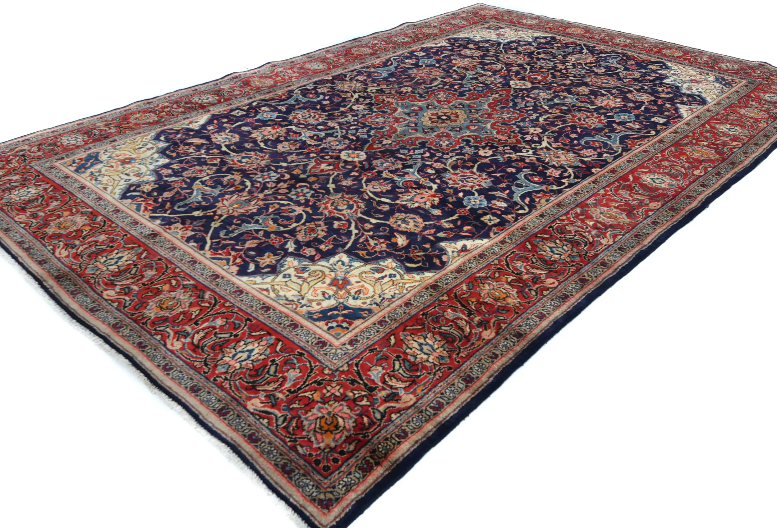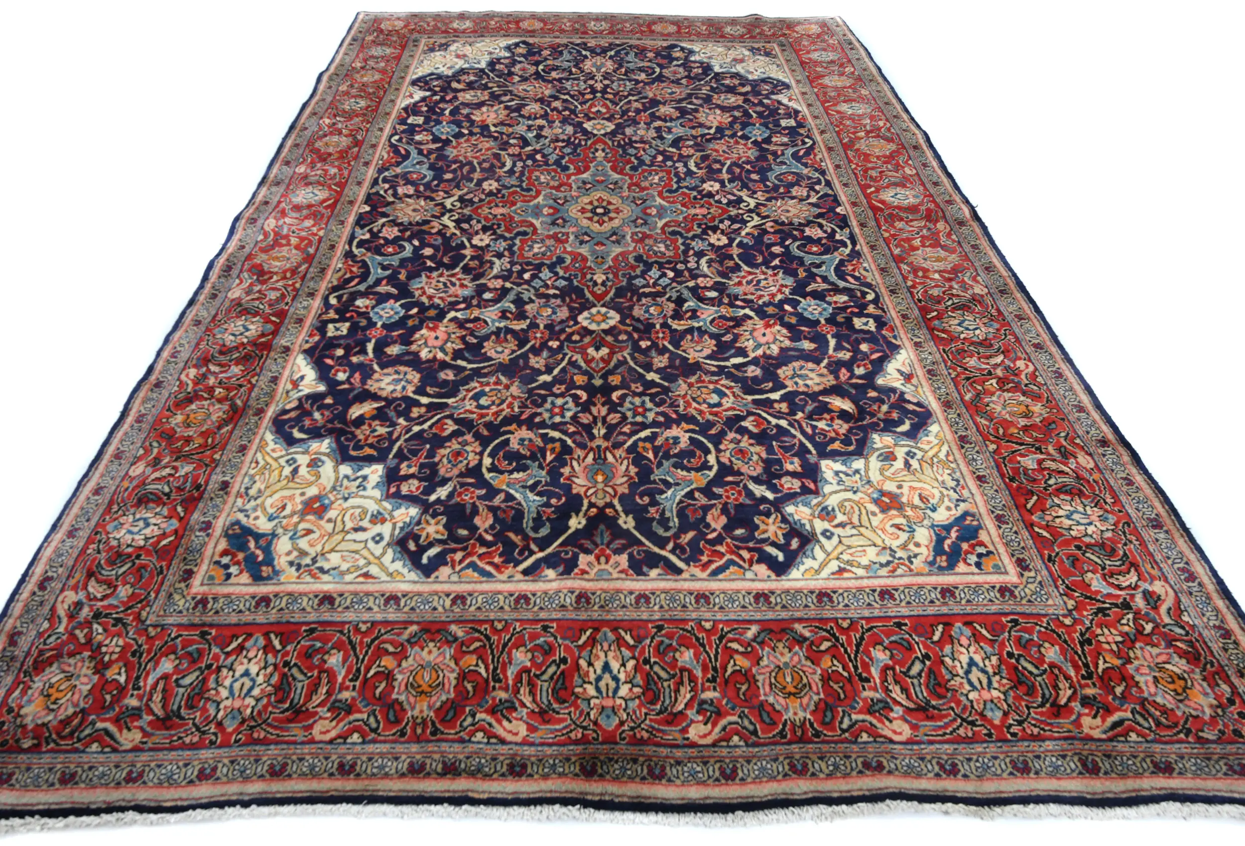 This authentic 7X11 purple-navy vintage Persian rug was masterly knotted by the hands of weavers inspired by a variety of wonderful artistic designs, to recreate the aged look of the original piece with a richness of color and intricate patterned floral background field. What set this traditional Oriental area rug from the others are the material and dye used (wool pile and cotton foundation), knot count, antique designs, fantastic grades, and its regional historical connection: it has deep roots, from the story of the people who produced it to the meaning of the symbols and colors displayed across its canvas that have been praised for centuries. This classic home décor carpet will be completely cozy and inviting that never will go out of style! Also, this Oriental rug would be among your most valuable treasures, it is a great investment that accrues value over time, and it will last for generations because was woven with high-quality, all-natural wool; it won’t rip, tear, or shed. Environmentally friendly, opulent yet affordable; this Persian rug will give you a thorough amount of character to help define your living space with luxury and will capture the eyes and attention of your audience (homeowners, designers, decorators, family and friends). RT-7906