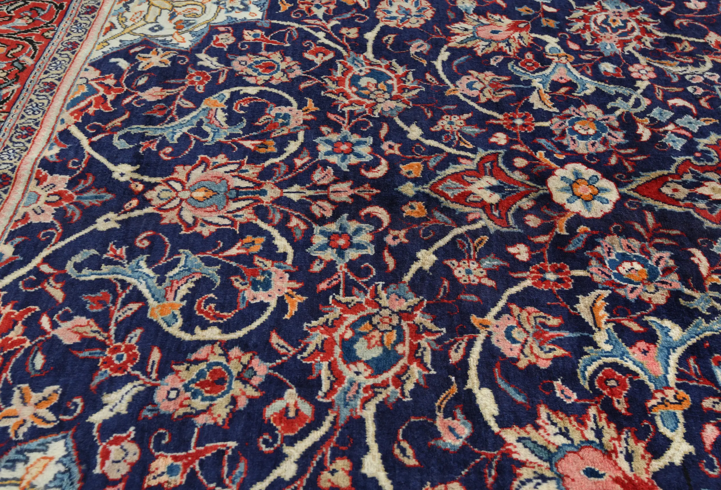 Handmade vintage 7X11 purple-navy Persian rug made with vegetable dyes (fine wool pile and cotton foundation), exceptional knot count, and appealing ancient designs. This Oriental rug never will go out of style and would be among your most valuable treasures.