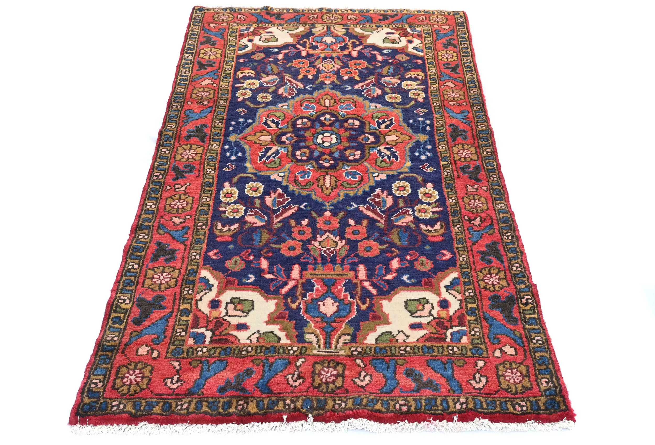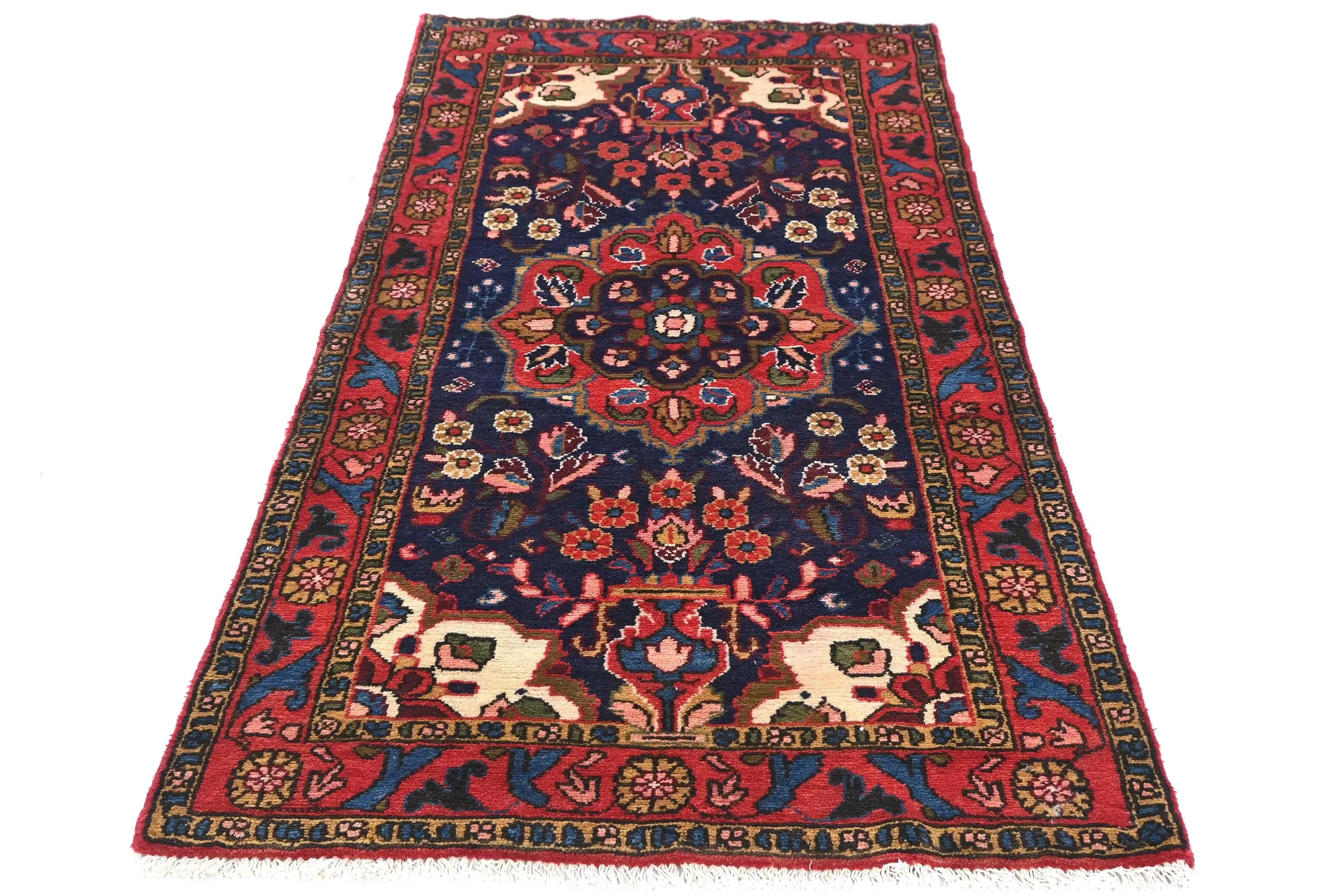 Vintage Purple-navy Floral Tribal 3X6 Hamedan Persian Rug