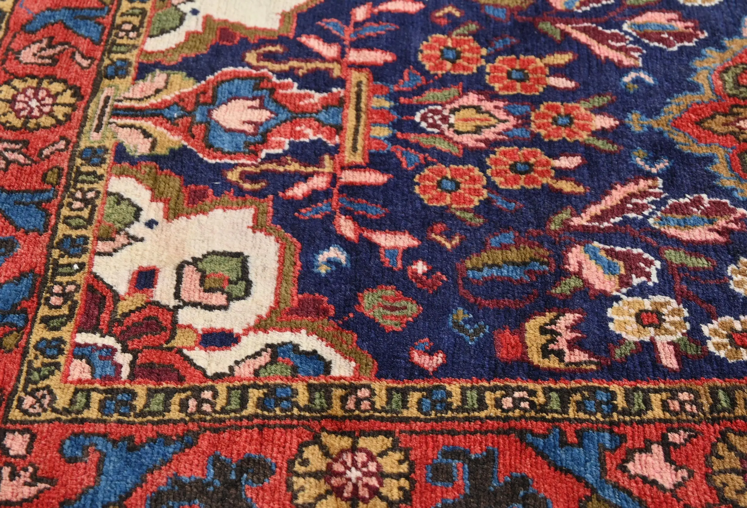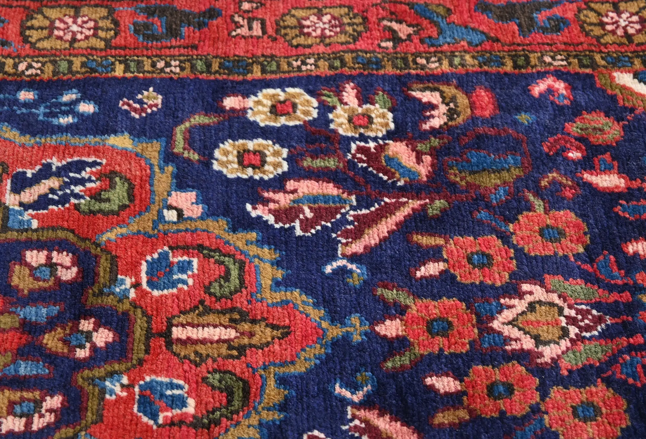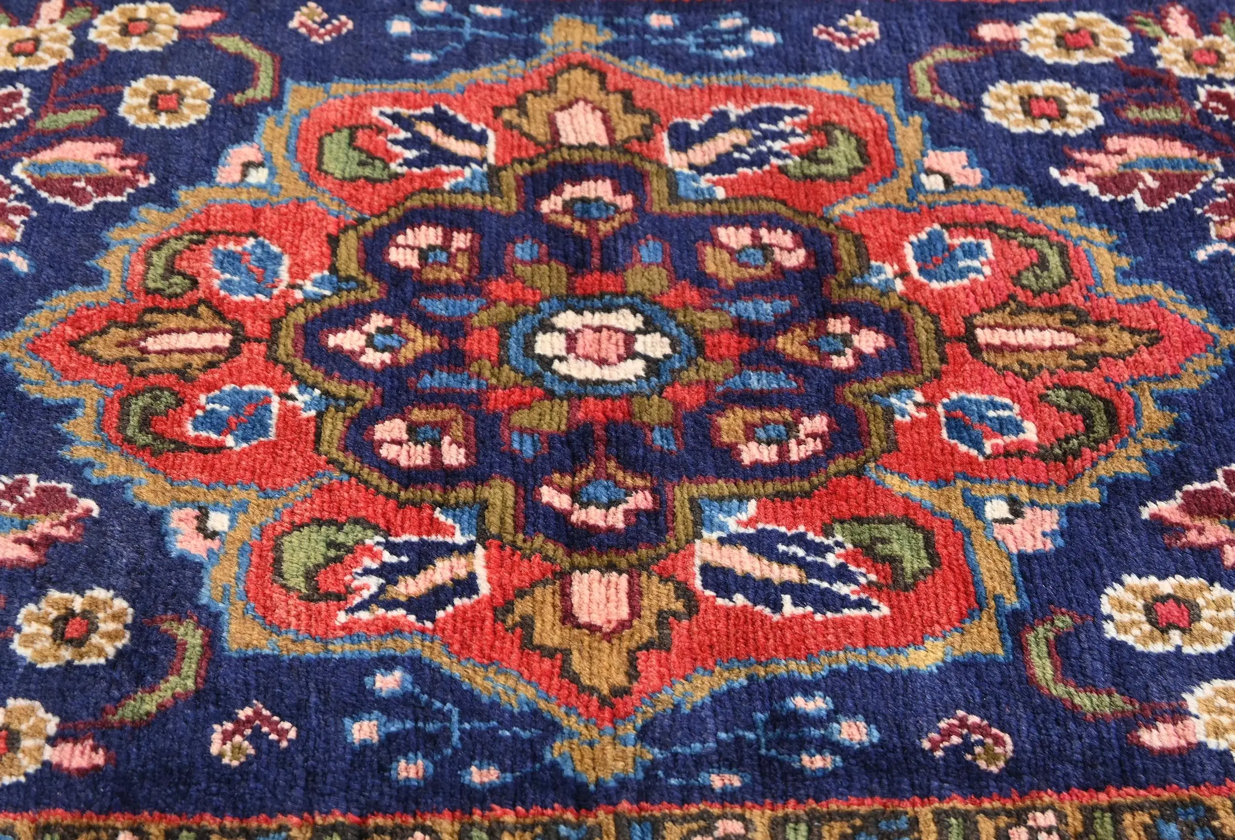Handmade vintage 3X6 purple-navy Persian rug made with vegetable dyes (fine wool pile and cotton foundation), exceptional knot count, and appealing ancient designs. This Oriental rug never will go out of style and would be among your most valuable treasures.