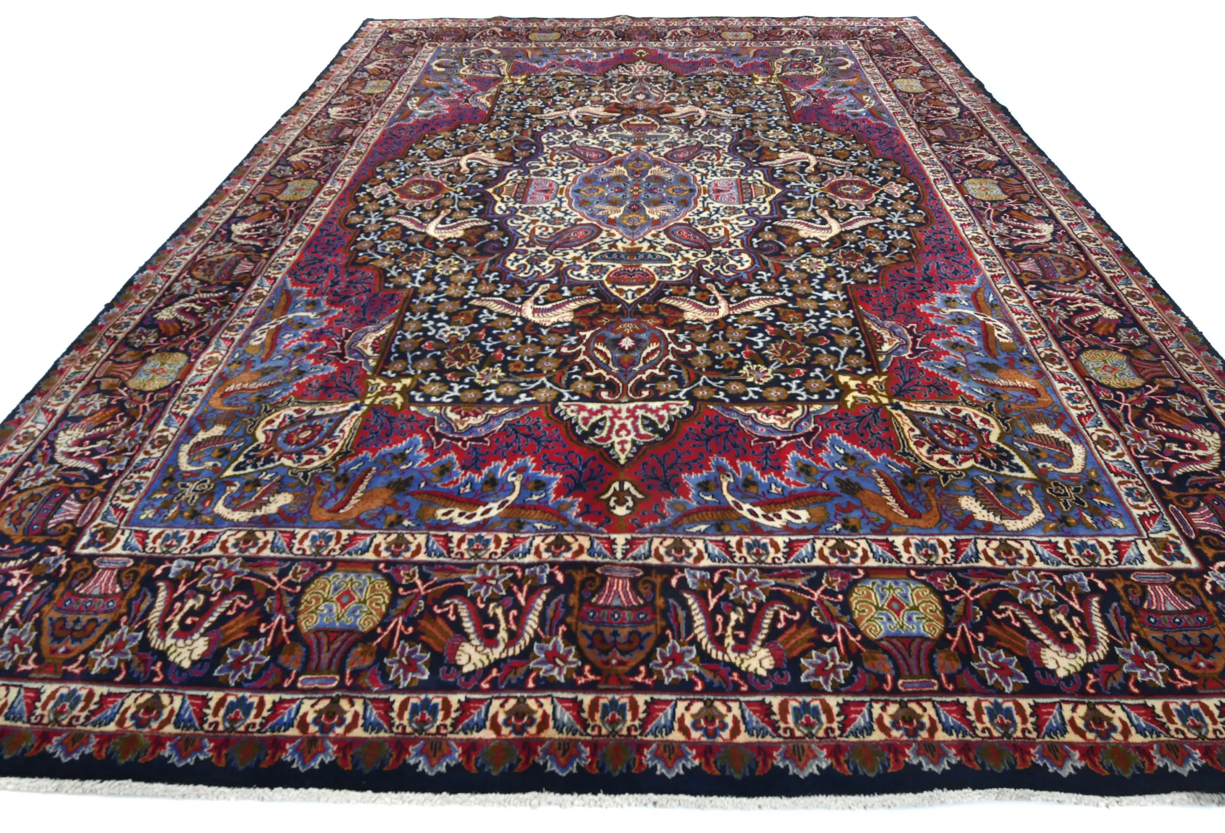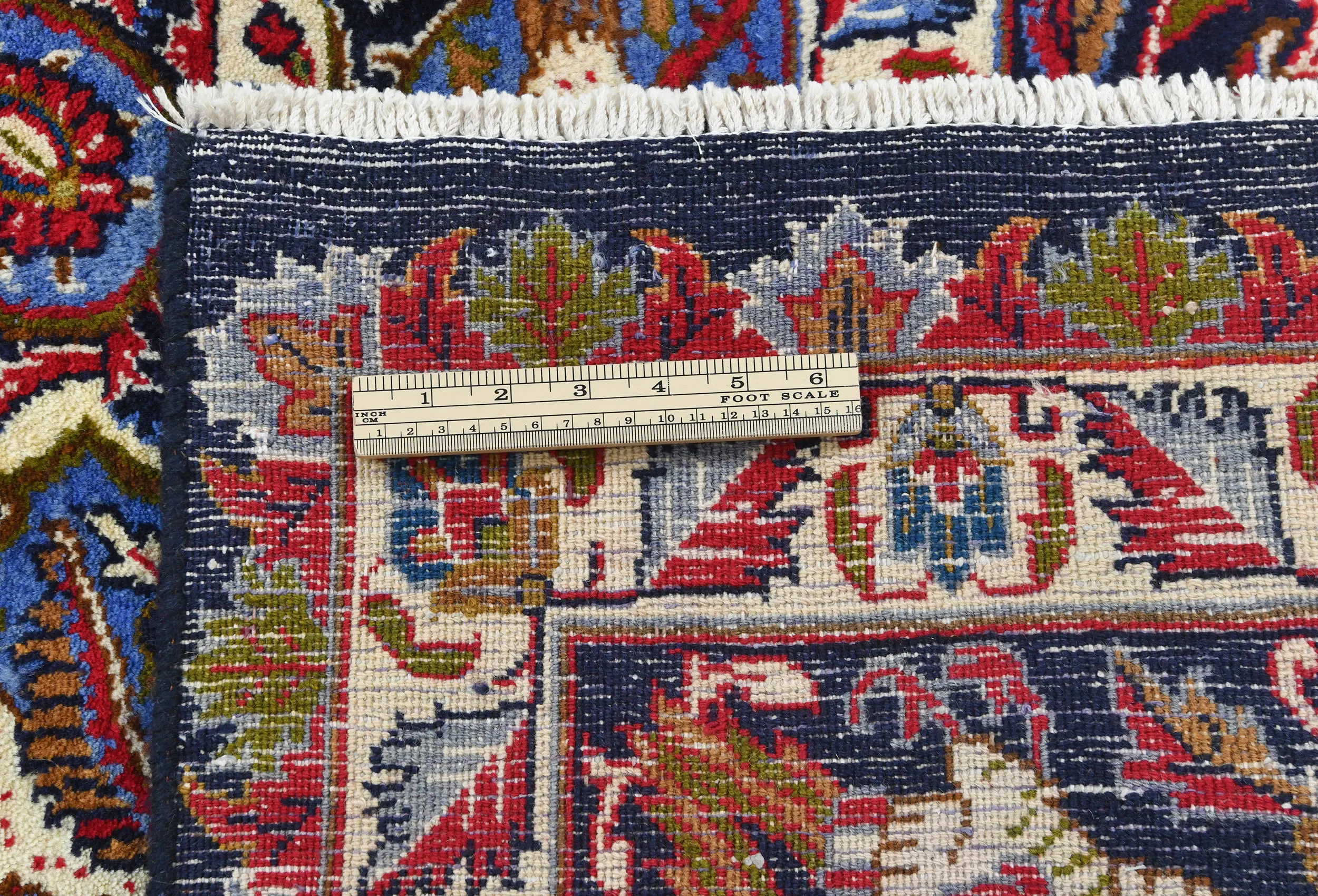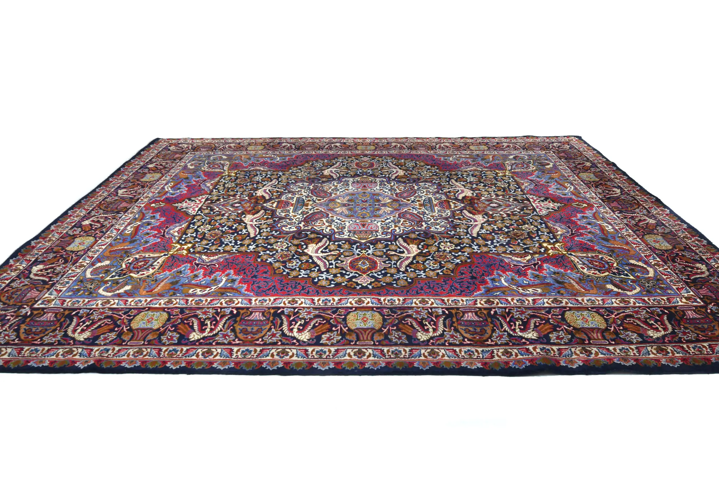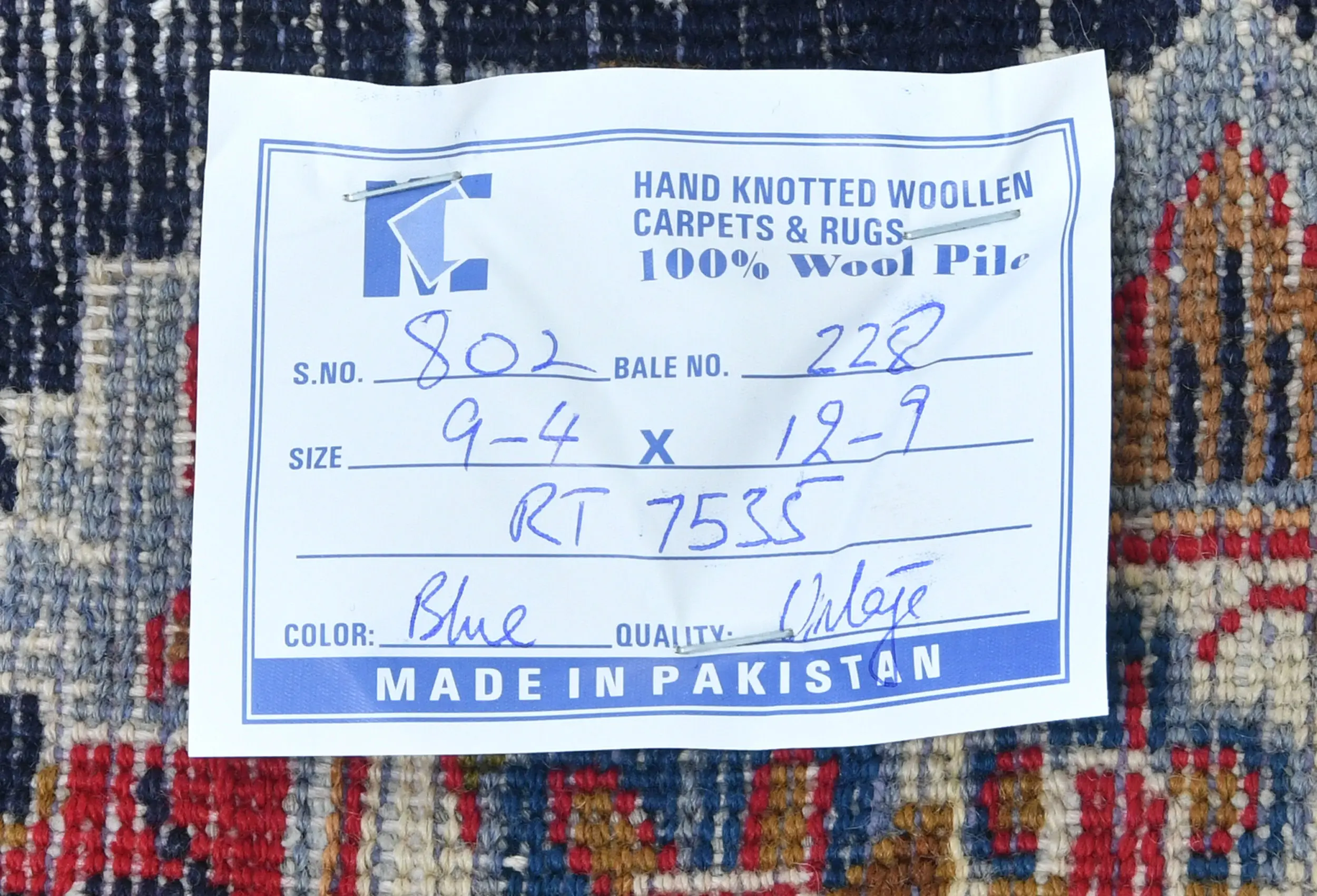 Handmade vintage 10X13 purple-navy Persian rug made with vegetable dyes (fine wool pile and cotton foundation), exceptional knot count, and appealing ancient designs. This Oriental rug never will go out of style and would be among your most valuable treasures.