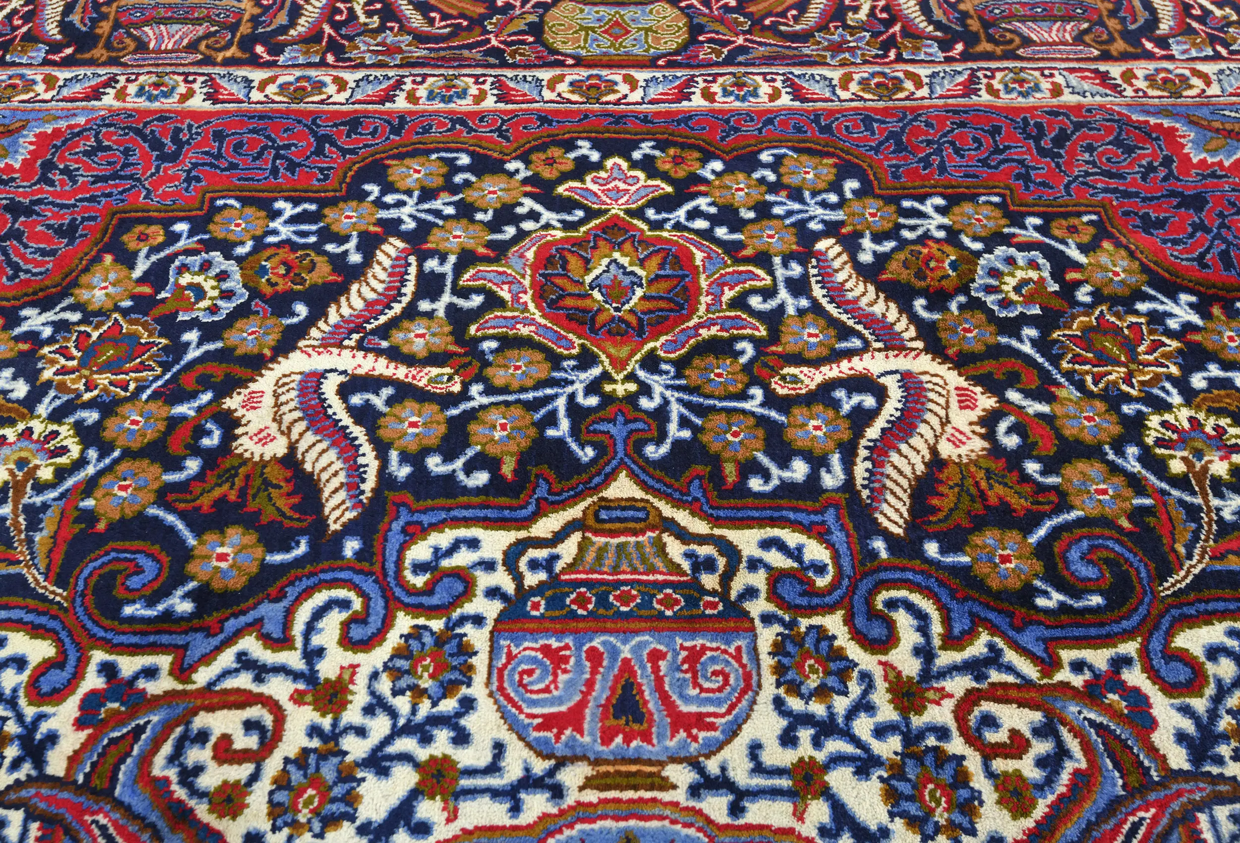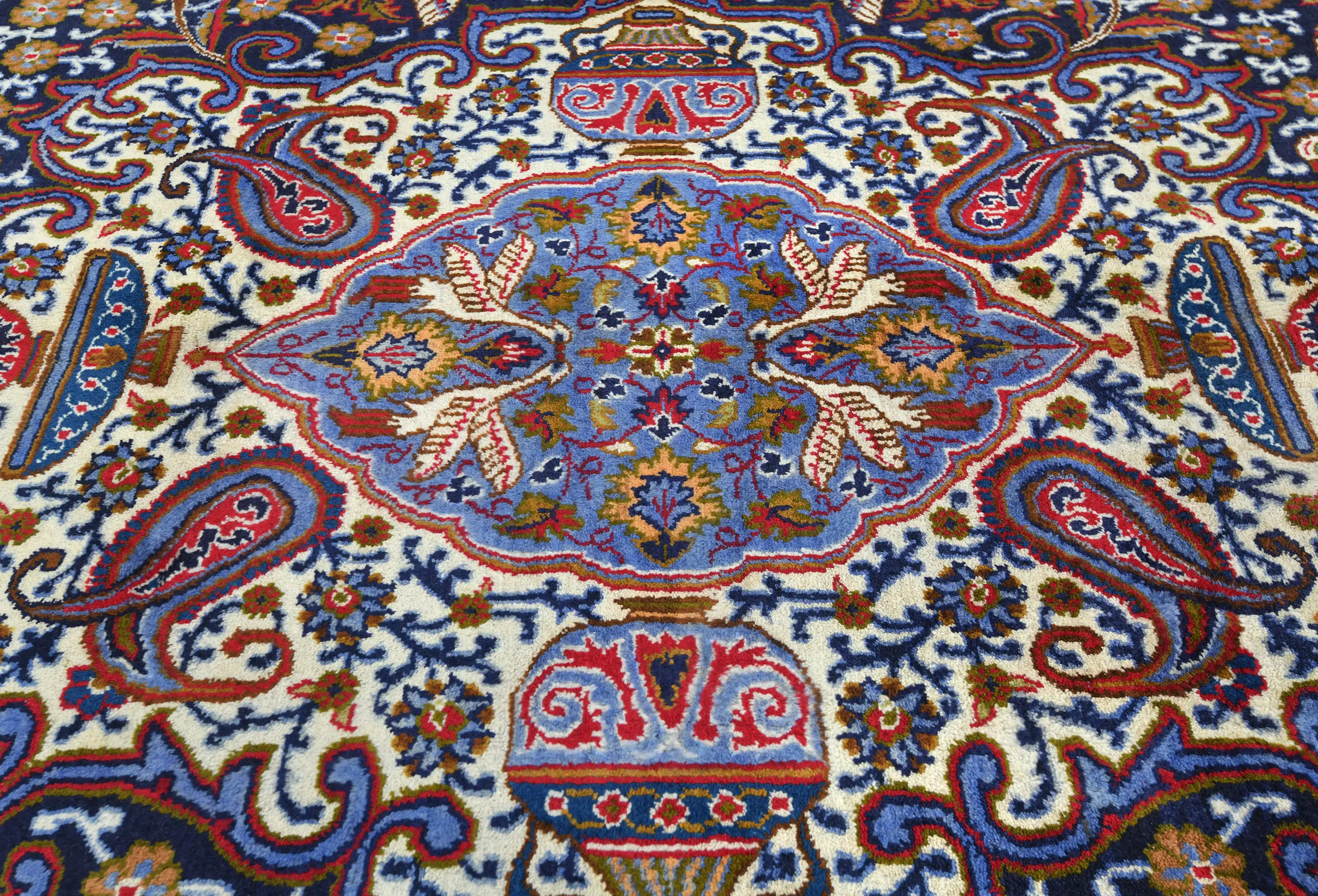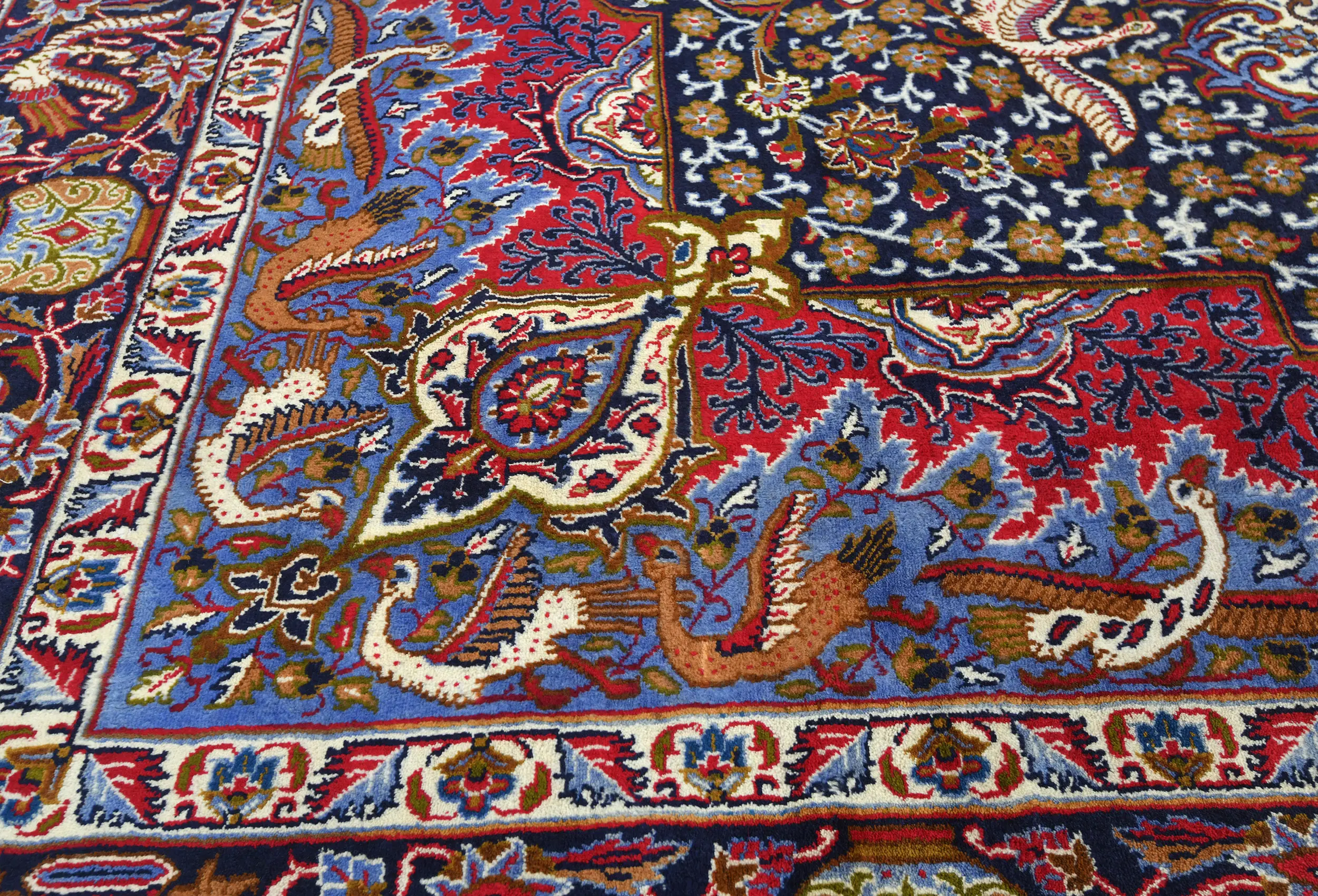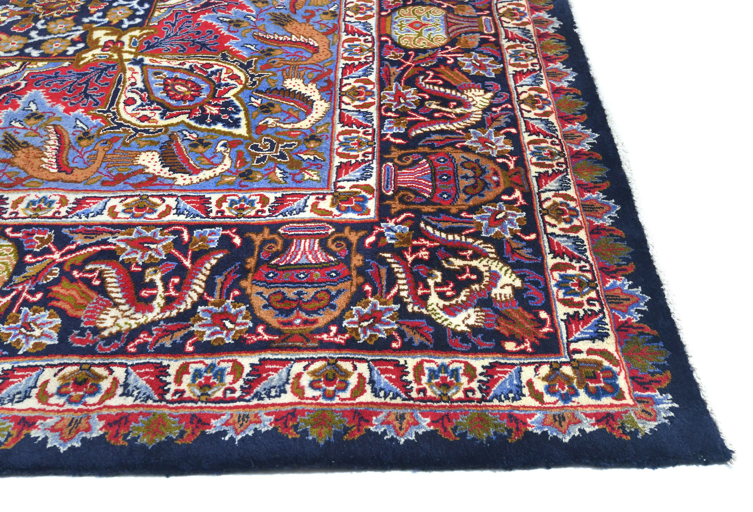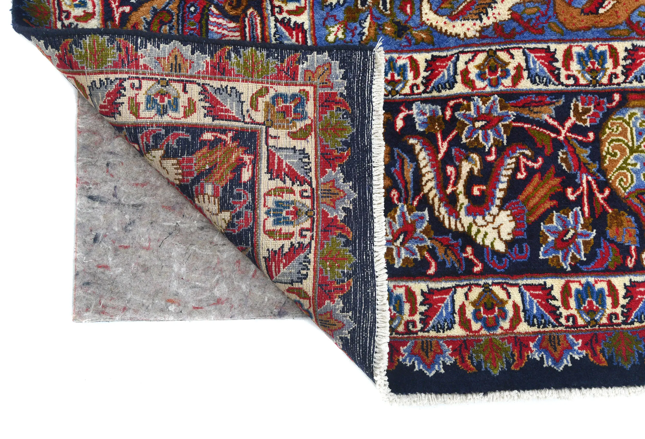 Handmade vintage 10X13 purple-navy Persian rug made with vegetable dyes (fine wool pile and cotton foundation), exceptional knot count, and appealing ancient designs. This Oriental rug never will go out of style and would be among your most valuable treasures.