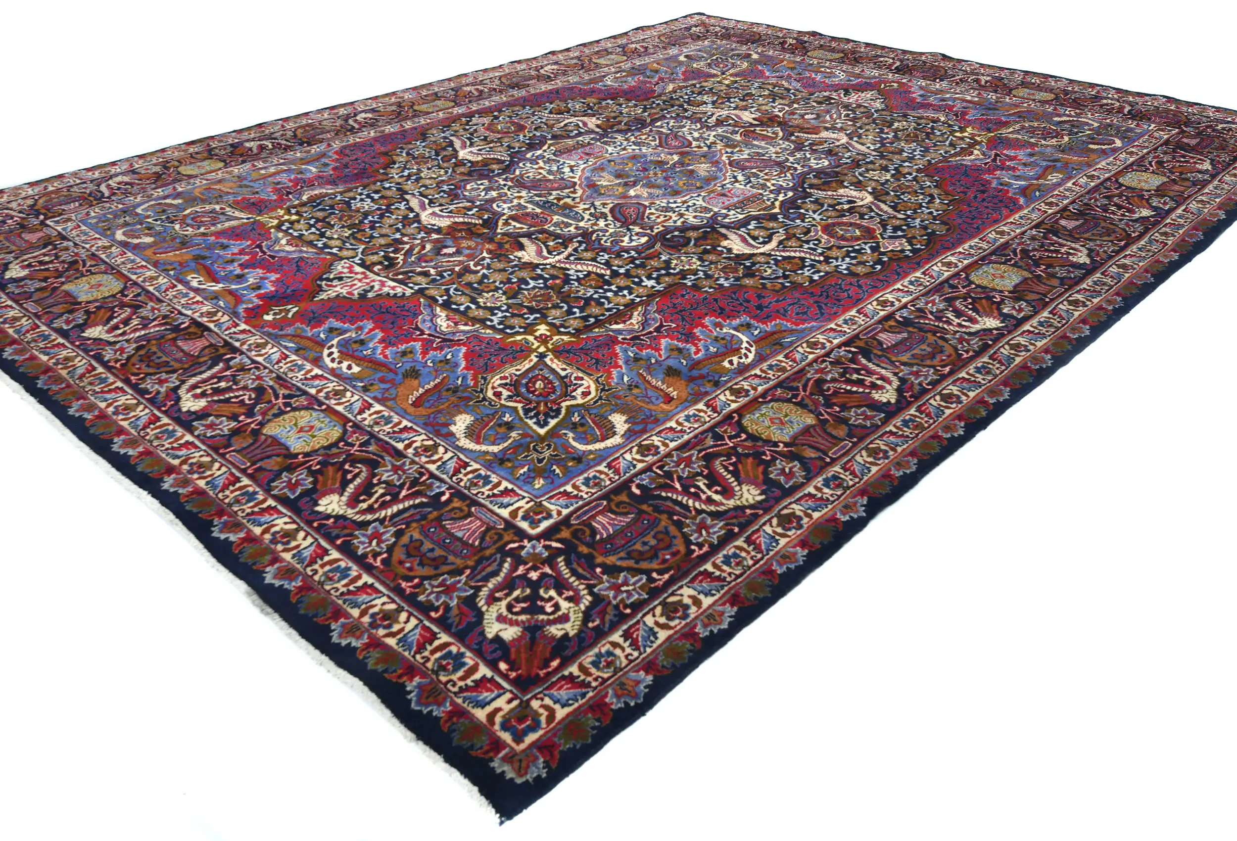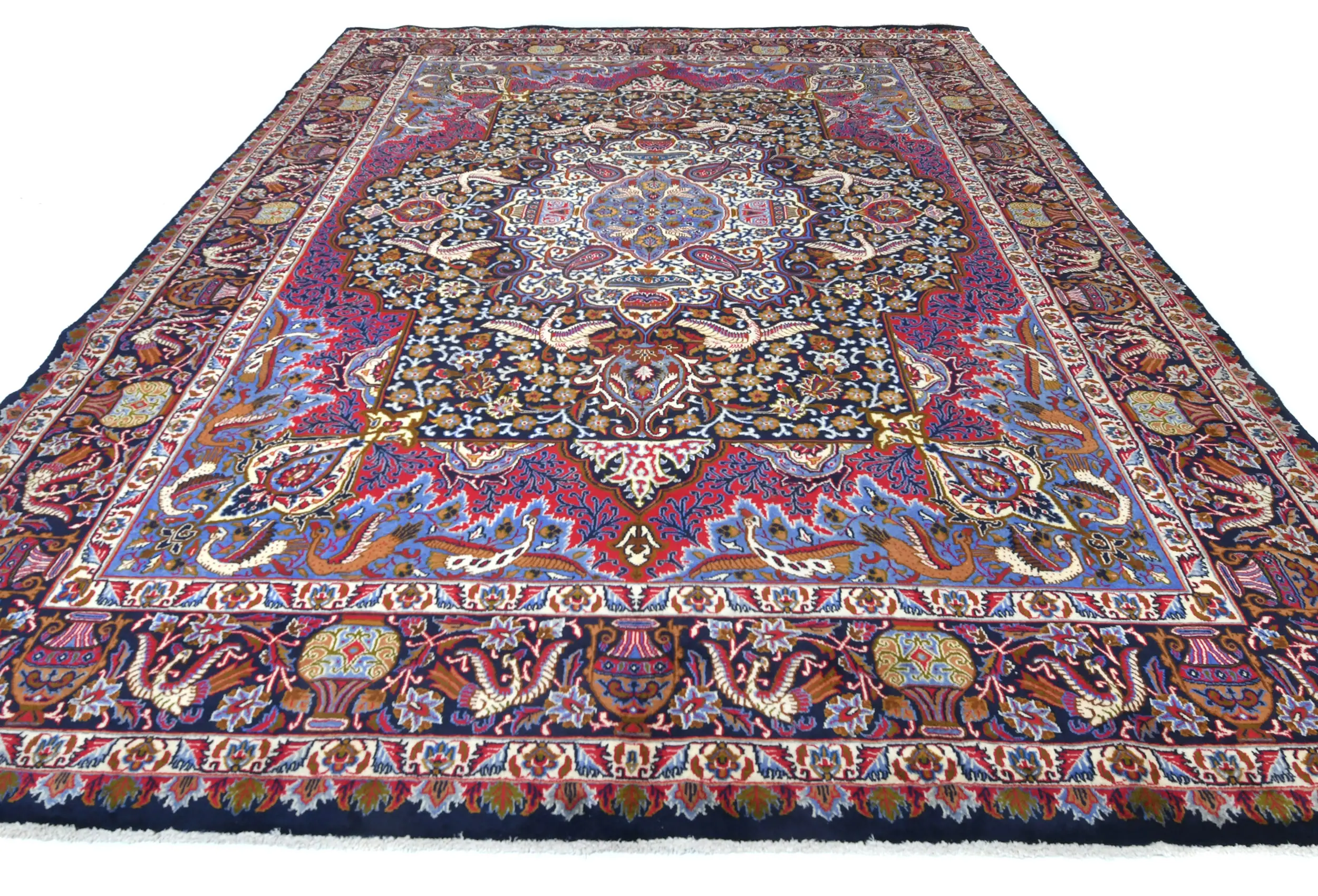 Vintage Purple-navy Pictorial Traditional 10X13 Kashmar Persian Rug