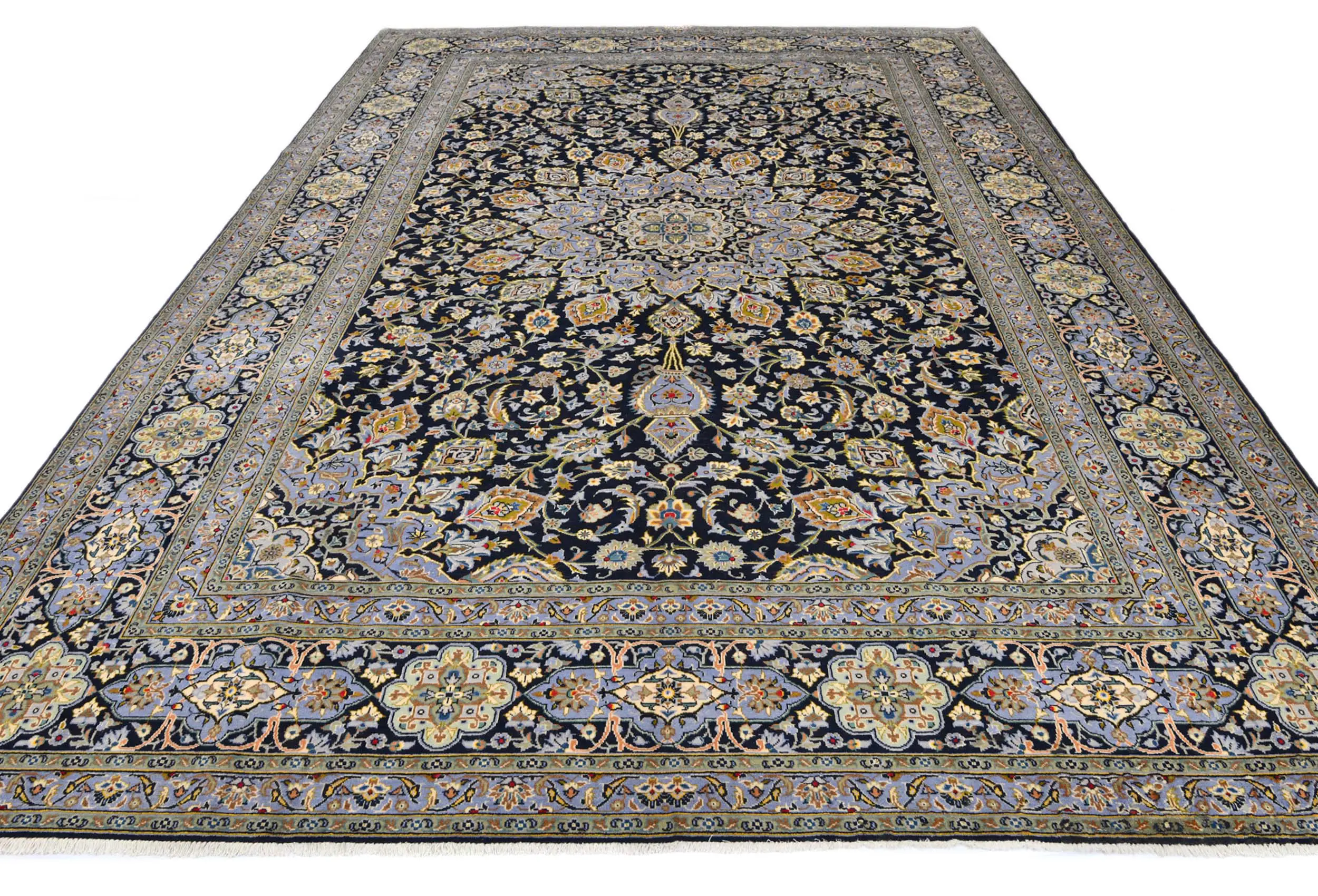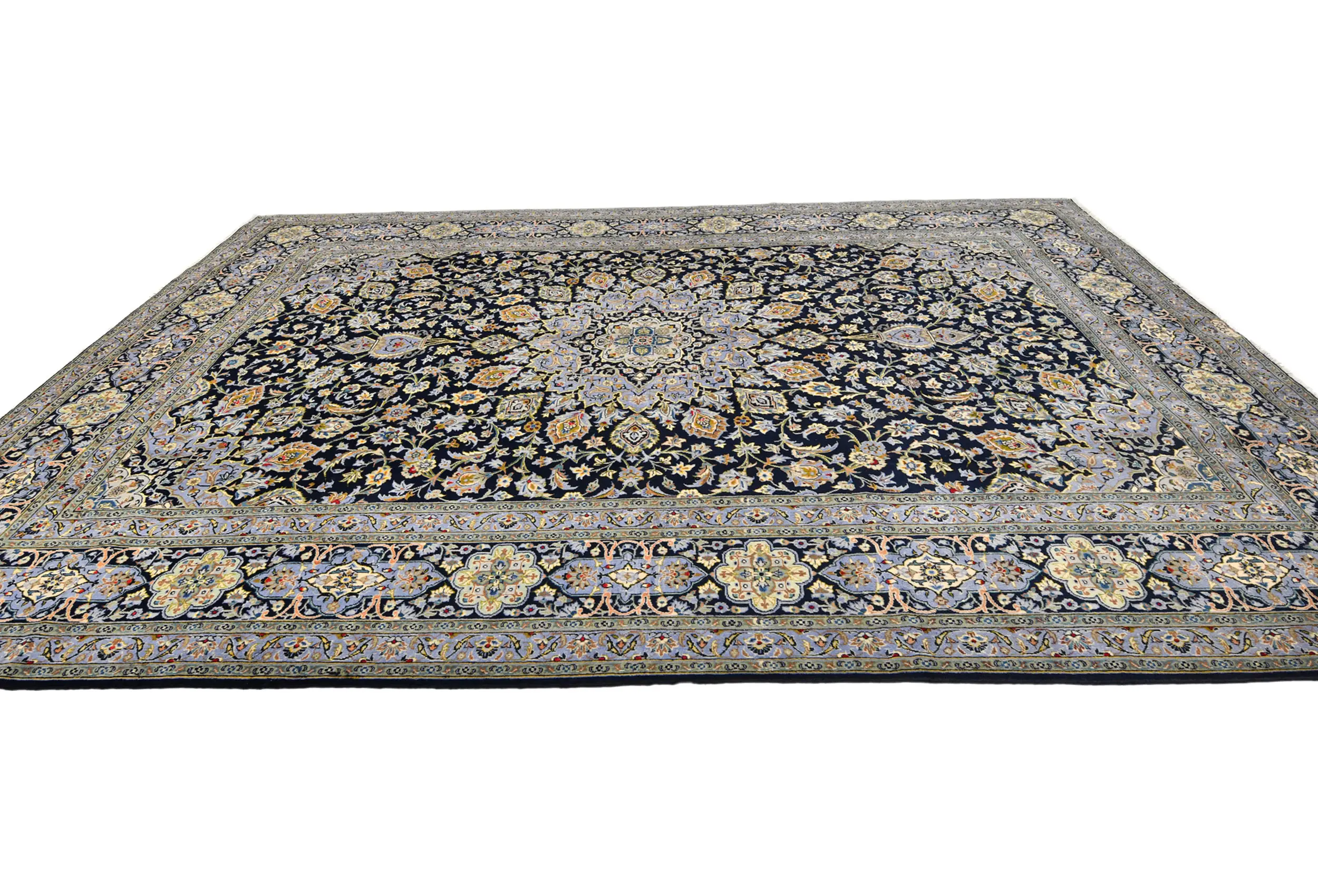 Vintage Purple-navy Traditional 10X13 Kashan Persian Rug