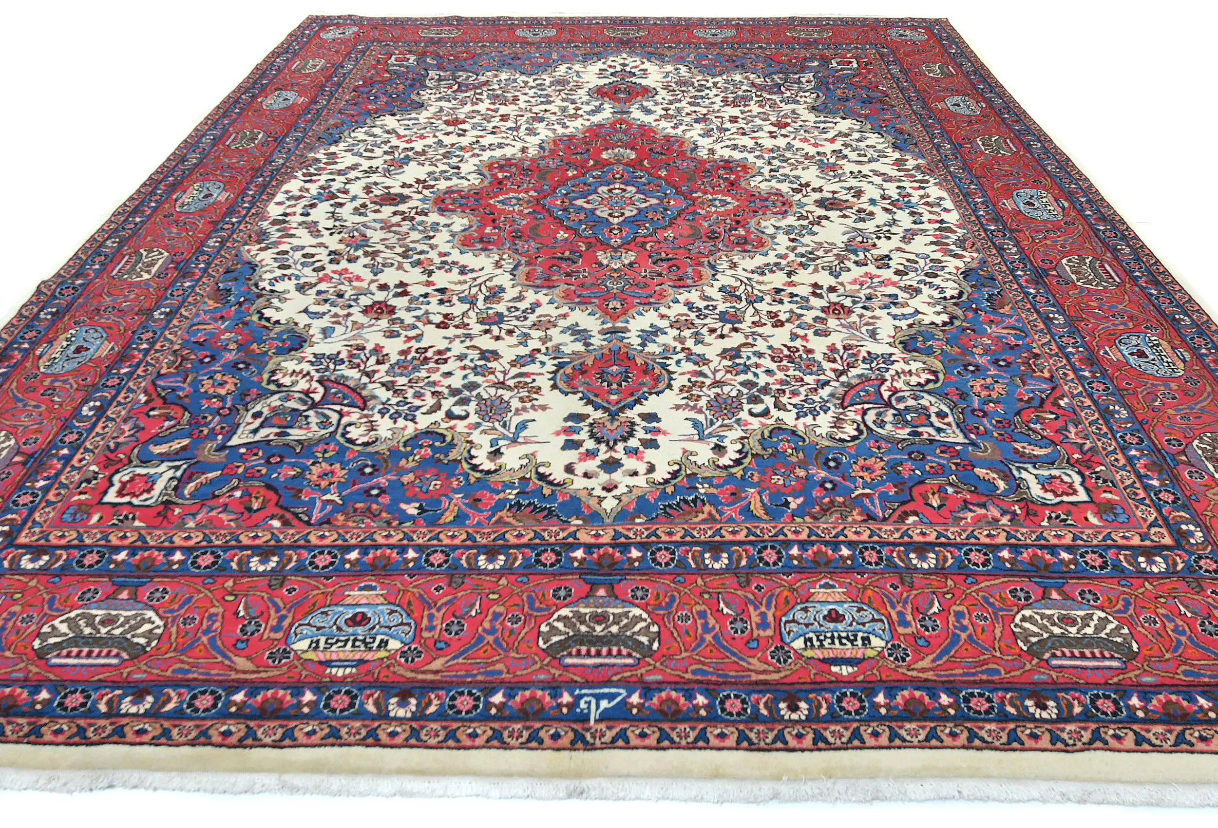 This authentic 10X13 purple-navy vintage Persian rug was finely knotted by the hands of weavers influenced by a variety of amazing artistic designs, to recreate the aged look of the exceptional piece with a richness of color and embellished floral background field. What set this traditional Oriental area rug from the others are the material and dye used (wool pile and cotton foundation), knot count, antique designs, fantastic grades, and its regional historical connection: it has deep roots, from the story of the people who produced it to the meaning of the symbols and colors displayed across its canvas that have been praised for centuries. This classic home décor carpet will be completely cozy and inviting that never will go out of style! Also, this Oriental rug would be among your most valuable treasures, it is a great investment that increase in value over time, and it will last a lifetime because was woven with high-quality, all-natural wool; it won’t rip, tear, or shed. Eco-friendly, opulent yet affordable; this Persian rug will give you an extra pop of character to help define your home environment with luxury and warmth that will capture the eyes and attention of your audience (homeowners, designers, decorators, family and friends). RT-7401
