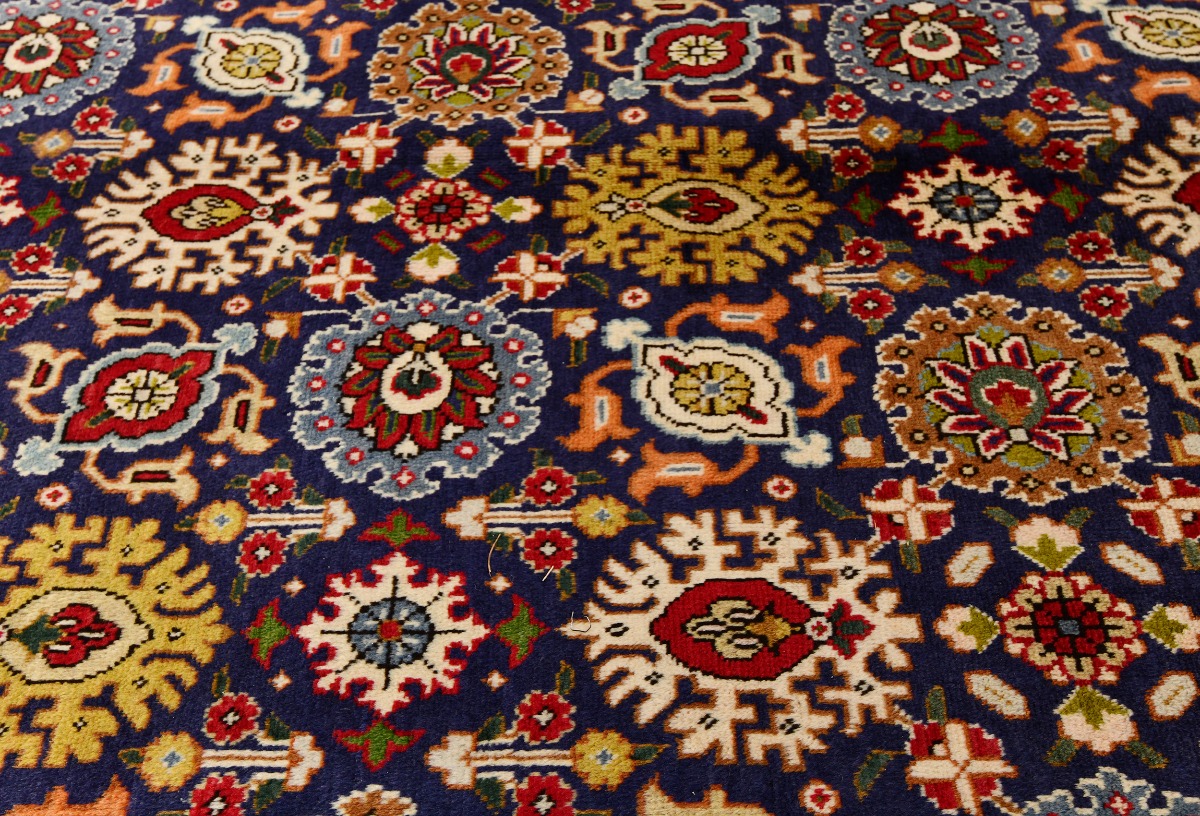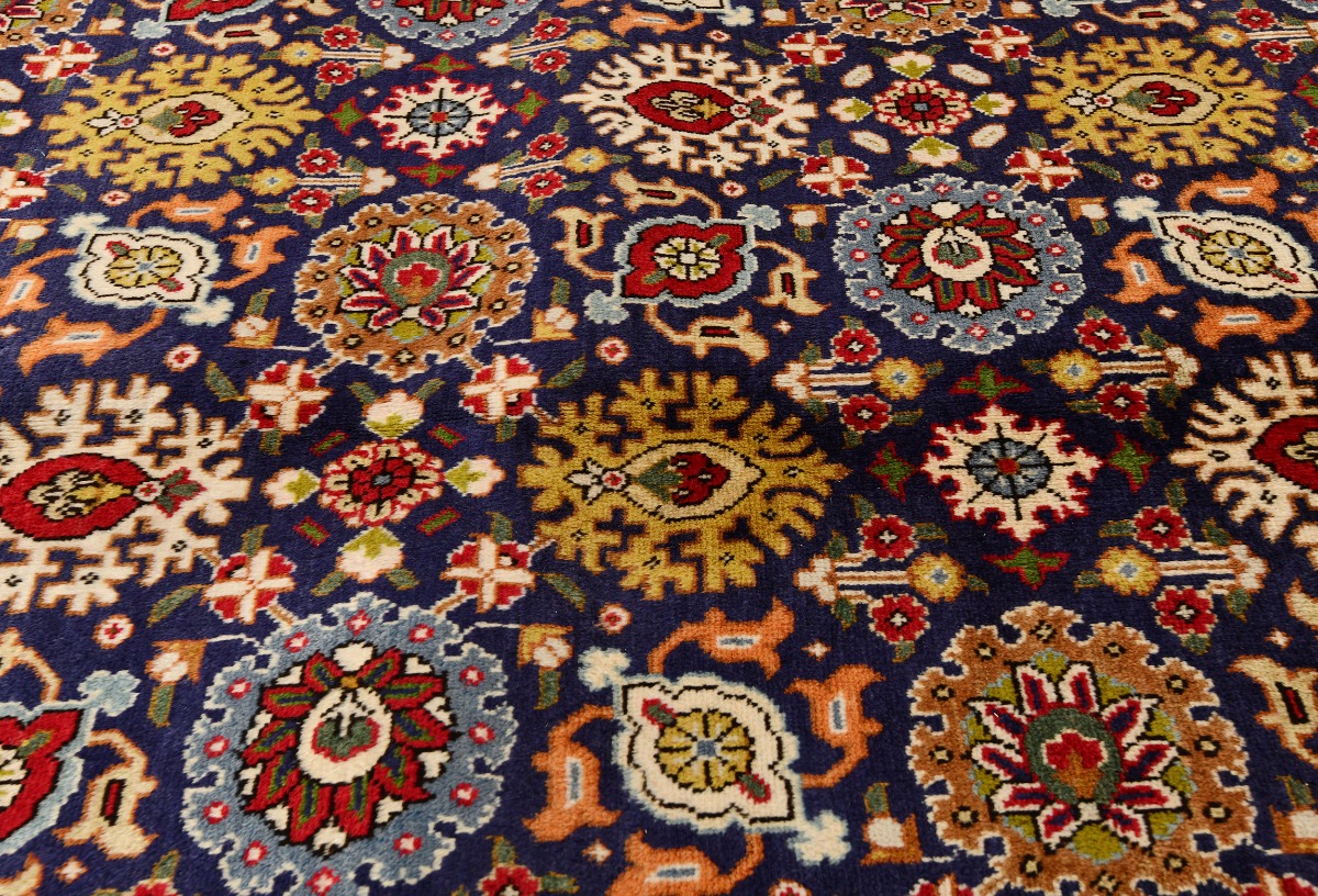 Handmade vintage 10X13 purple-navy Persian rug made with vegetable dyes (fine wool pile and cotton foundation), superior knot count, and alluring ancient designs. This Oriental rug never will go out of style and would be among your most valuable treasures.