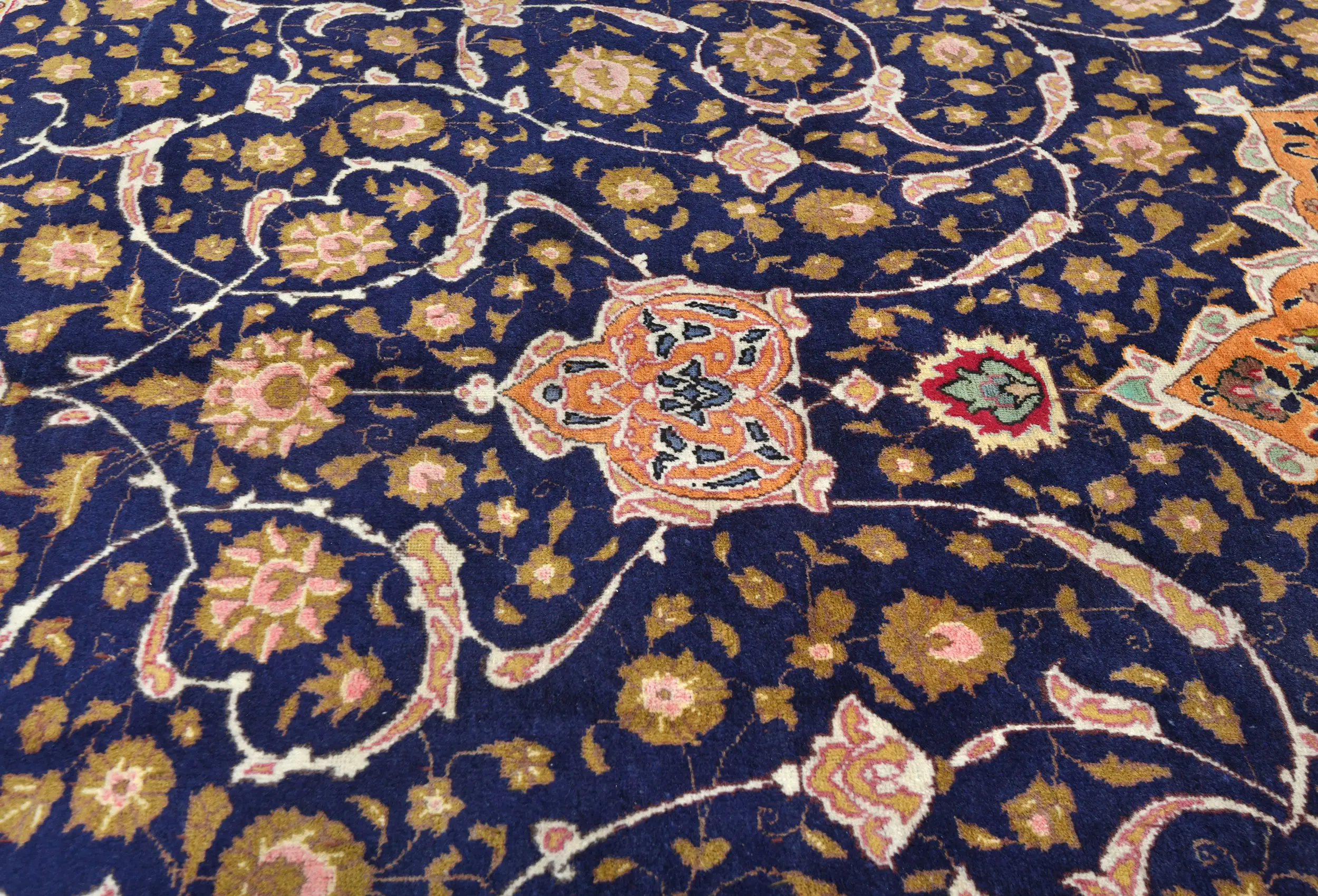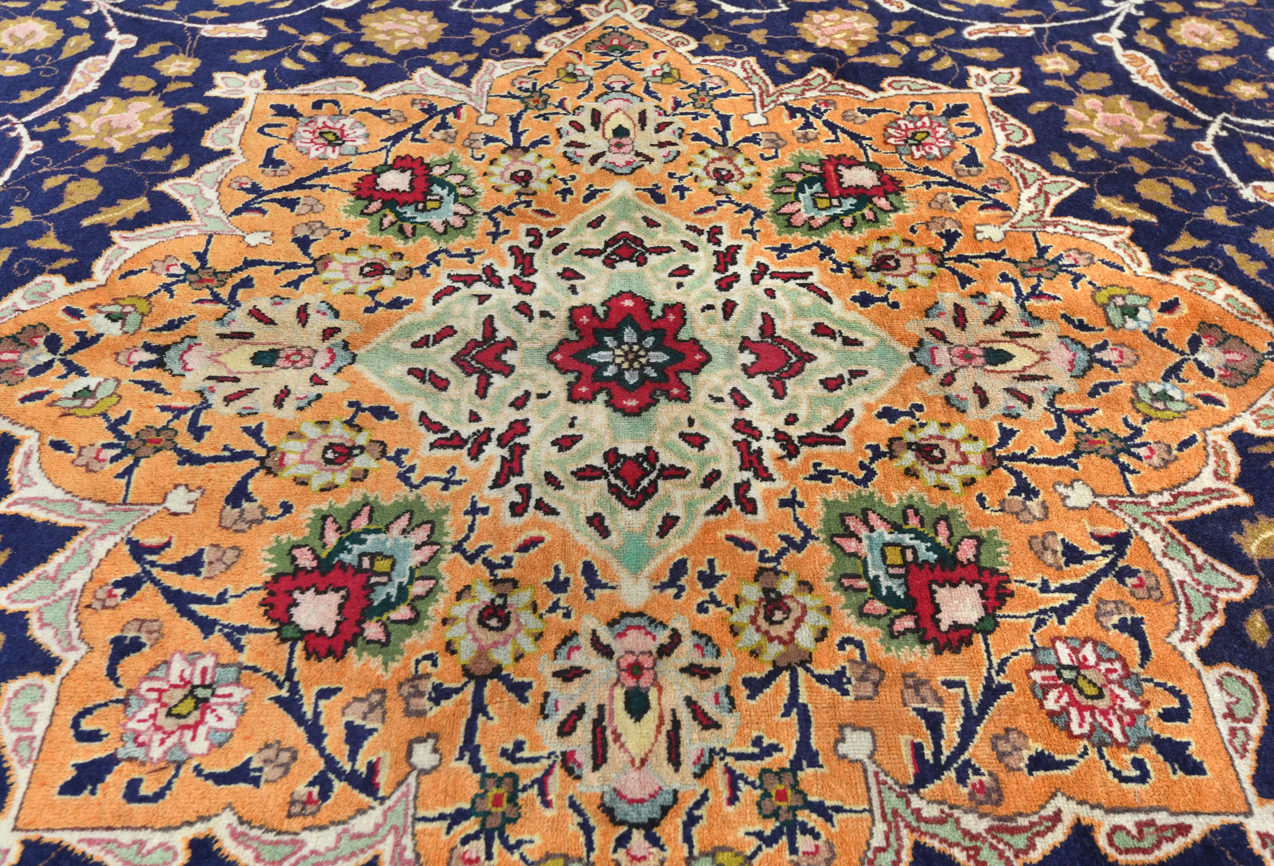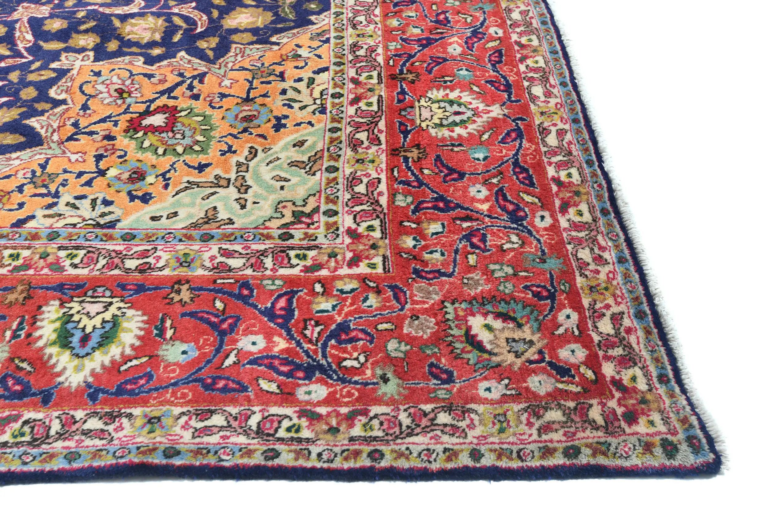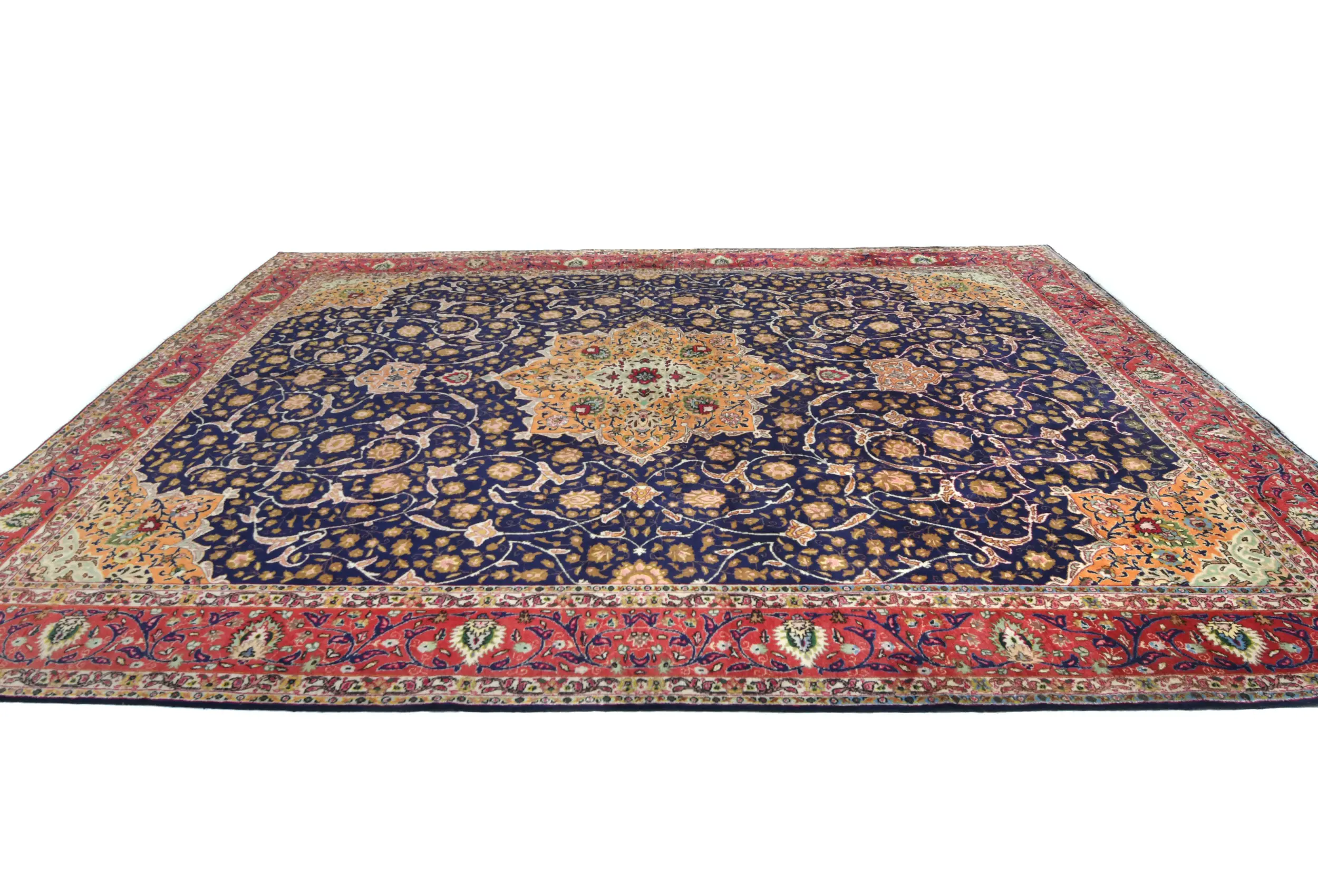 This authentic 10X13 purple-navy vintage Persian rug was finely knotted by the hands of weavers influenced by a variety of amazing artistic designs, to recreate the aged look of the exceptional piece with a richness of color and embellished floral background field. What set this traditional Oriental area rug from the others are the material and dye used (wool pile and cotton foundation), knot count, antique designs, fantastic grades, and its regional historical connection: it has deep roots, from the story of the people who produced it to the meaning of the symbols and colors displayed across its canvas that have been praised for centuries. This classic home décor carpet will be completely cozy and inviting that never will go out of style! Also, this Oriental rug would be among your most valuable treasures, it is a great investment that increase in value over time, and it will last a lifetime because was woven with high-quality, all-natural wool; it won’t rip, tear, or shed. Eco-friendly, opulent yet affordable; this Persian rug will give you an extra pop of character to help define your home environment with luxury and warmth that will capture the eyes and attention of your audience (homeowners, designers, decorators, family and friends). RT-7538