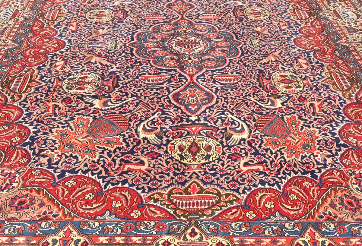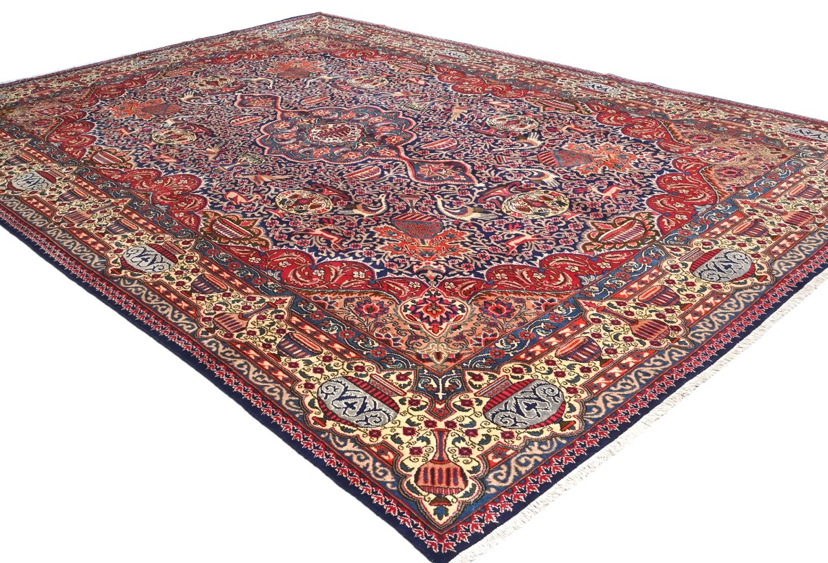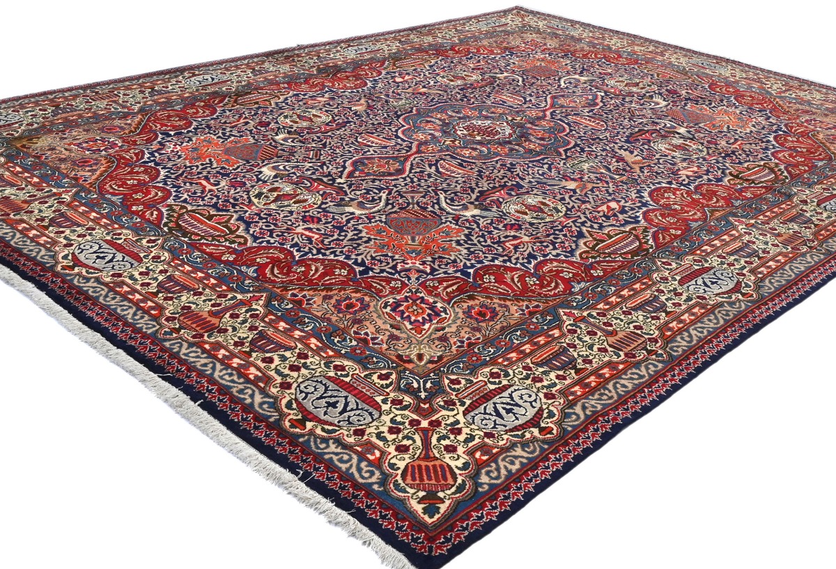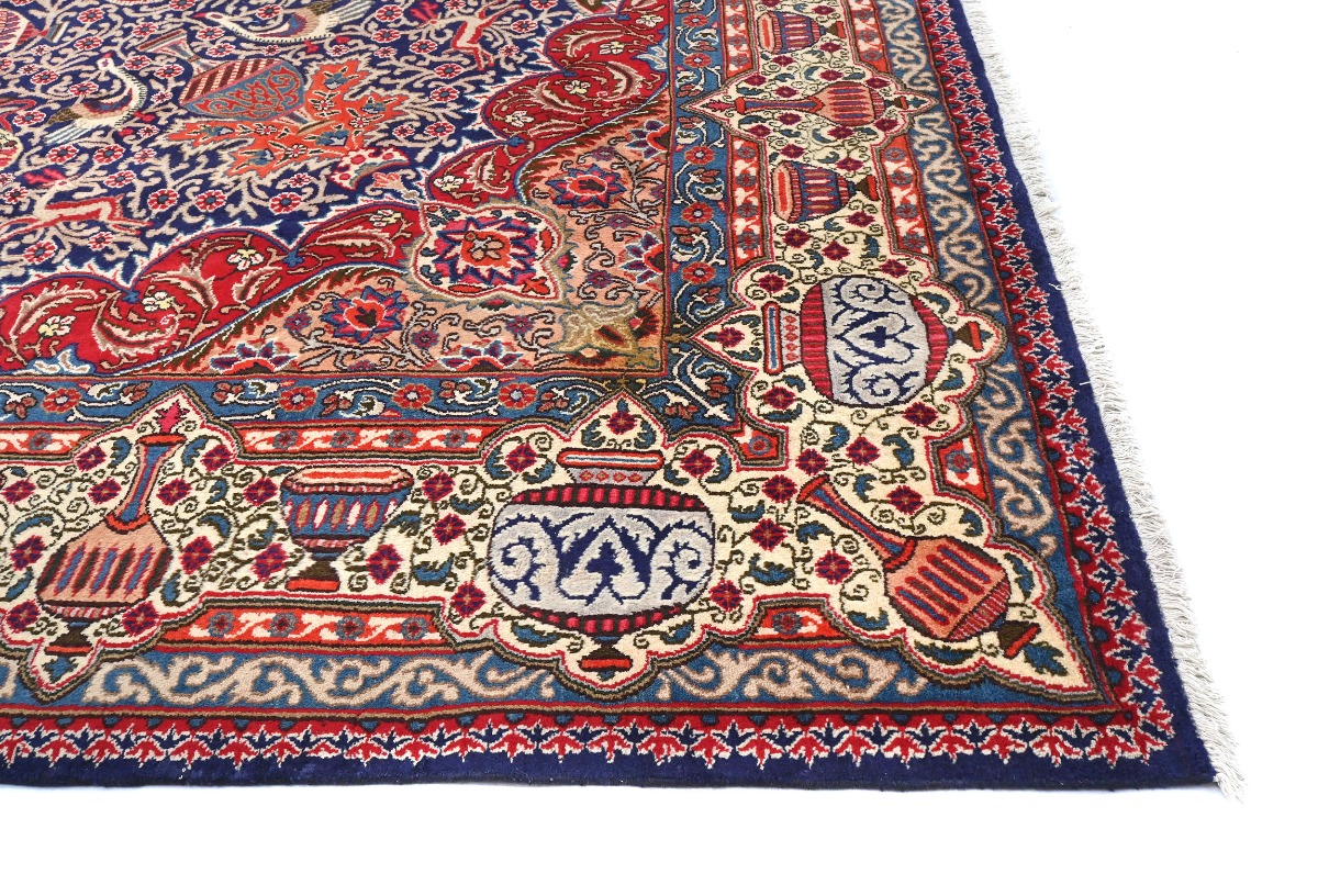 This authentic 9X13 purple-navy vintage Persian rug was finely knotted by the hands of weavers influenced by a variety of amazing artistic designs, to recreate the aged look of the exceptional piece with a richness of color and embellished floral background field. What set this traditional Oriental area rug from the others are the material and dye used (wool pile and cotton foundation), knot count, antique designs, fantastic grades, and its regional historical connection: it has deep roots, from the story of the people who produced it to the meaning of the symbols and colors displayed across its canvas that have been praised for centuries. This classic home décor carpet will be completely cozy and inviting that never will go out of style! Also, this Oriental rug would be among your most valuable treasures, it is a great investment that increase in value over time, and it will last a lifetime because was woven with high-quality, all-natural wool; it won’t rip, tear, or shed. Eco-friendly, opulent yet affordable; this Persian rug will give you an extra pop of character to help define your home environment with luxury and warmth that will capture the eyes and attention of your audience (homeowners, designers, decorators, family and friends). RT-5642